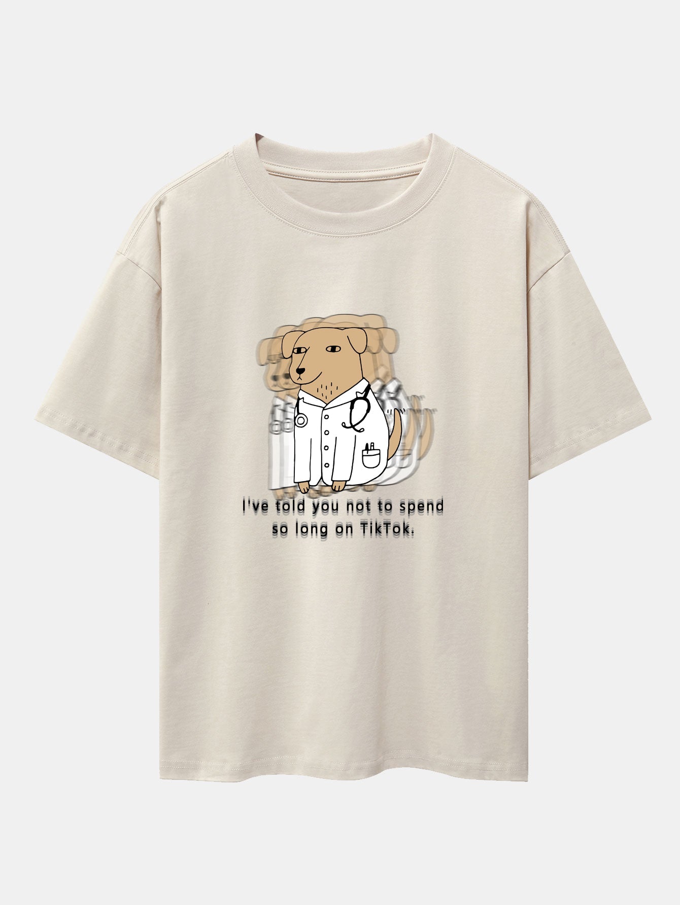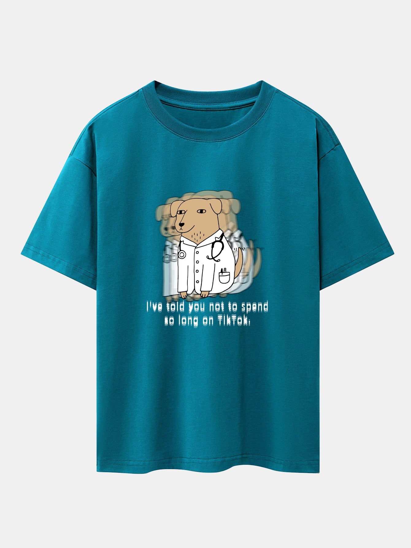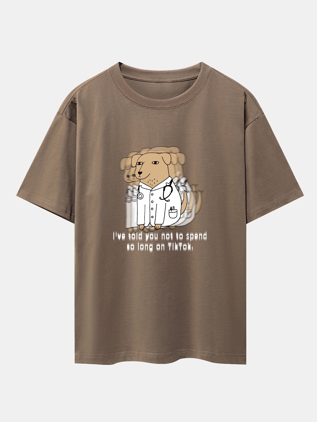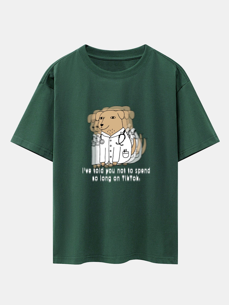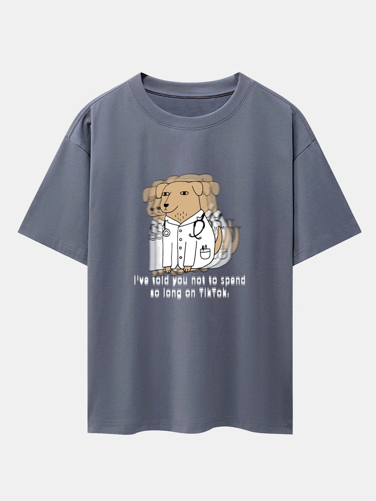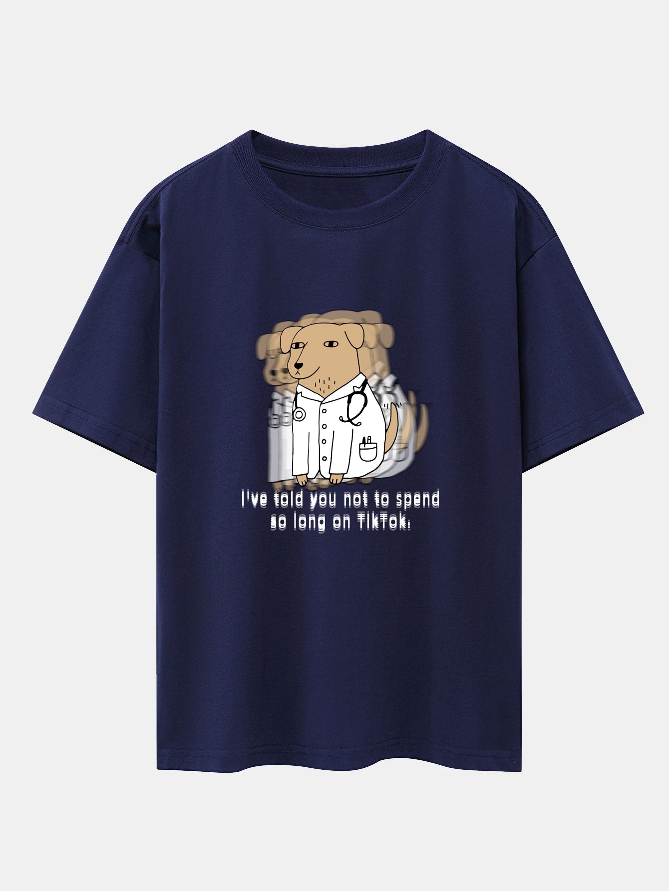 Funny Doctor Dog Print Drop Shoulder Oversize T-Shirt