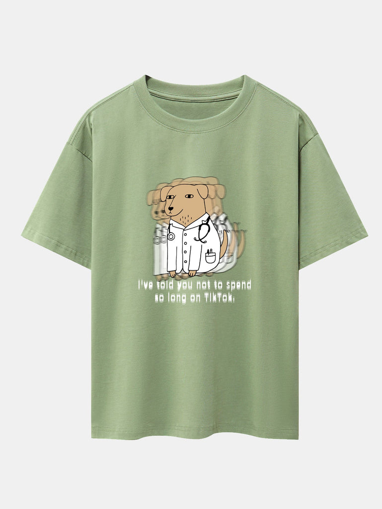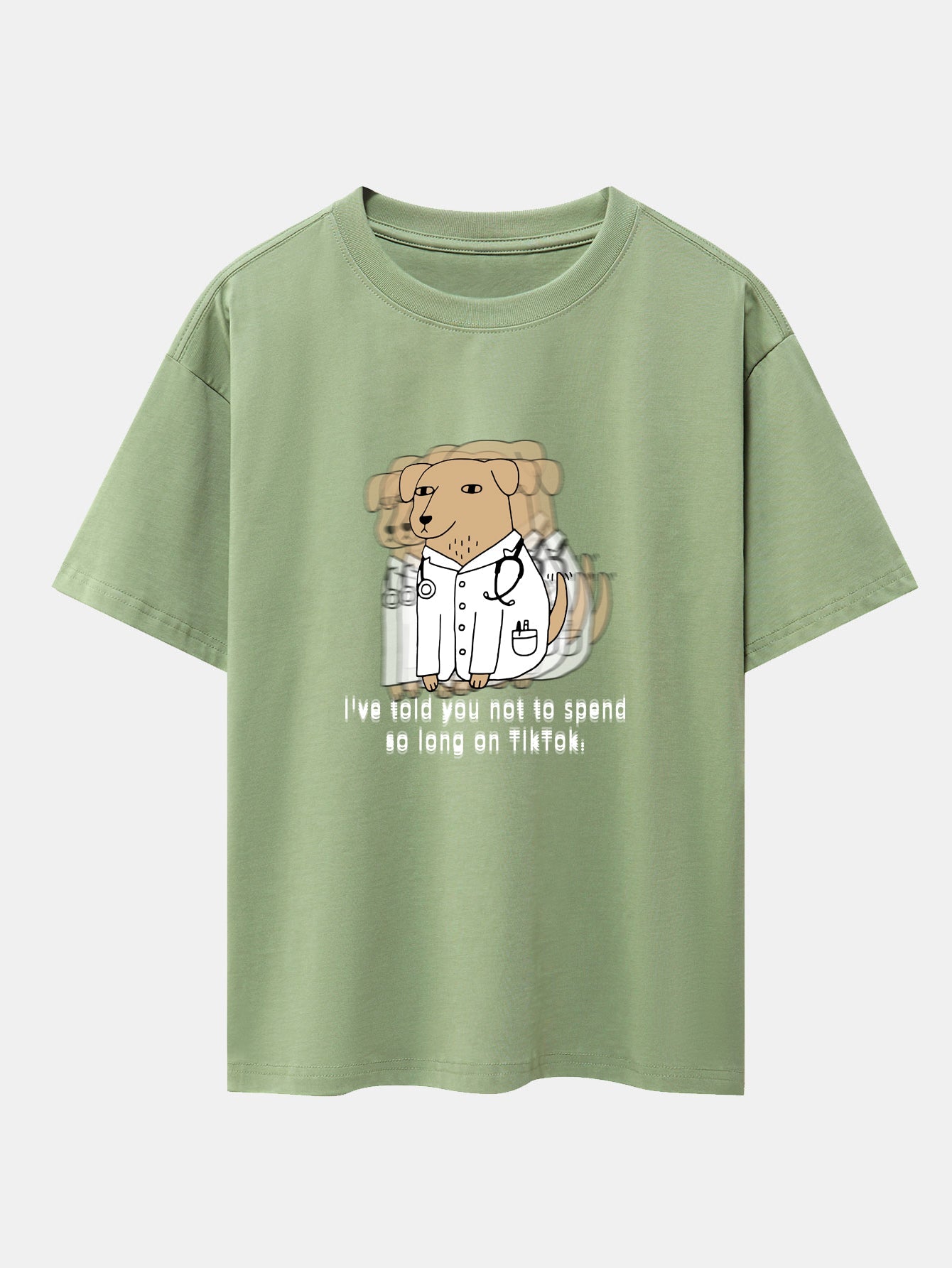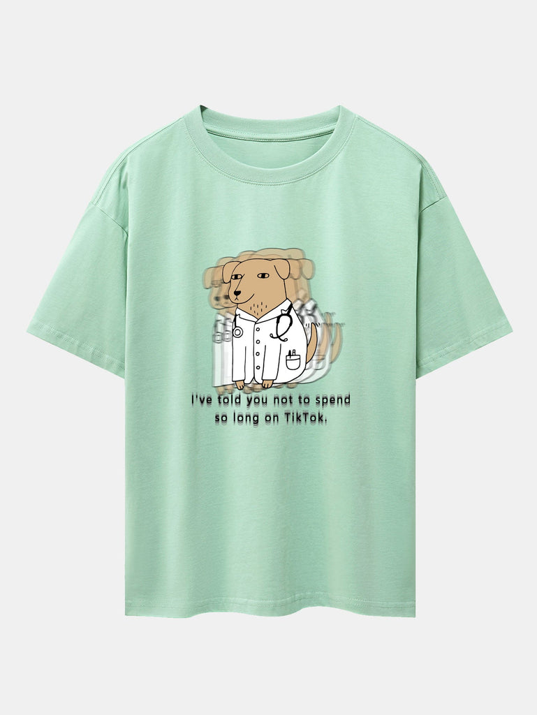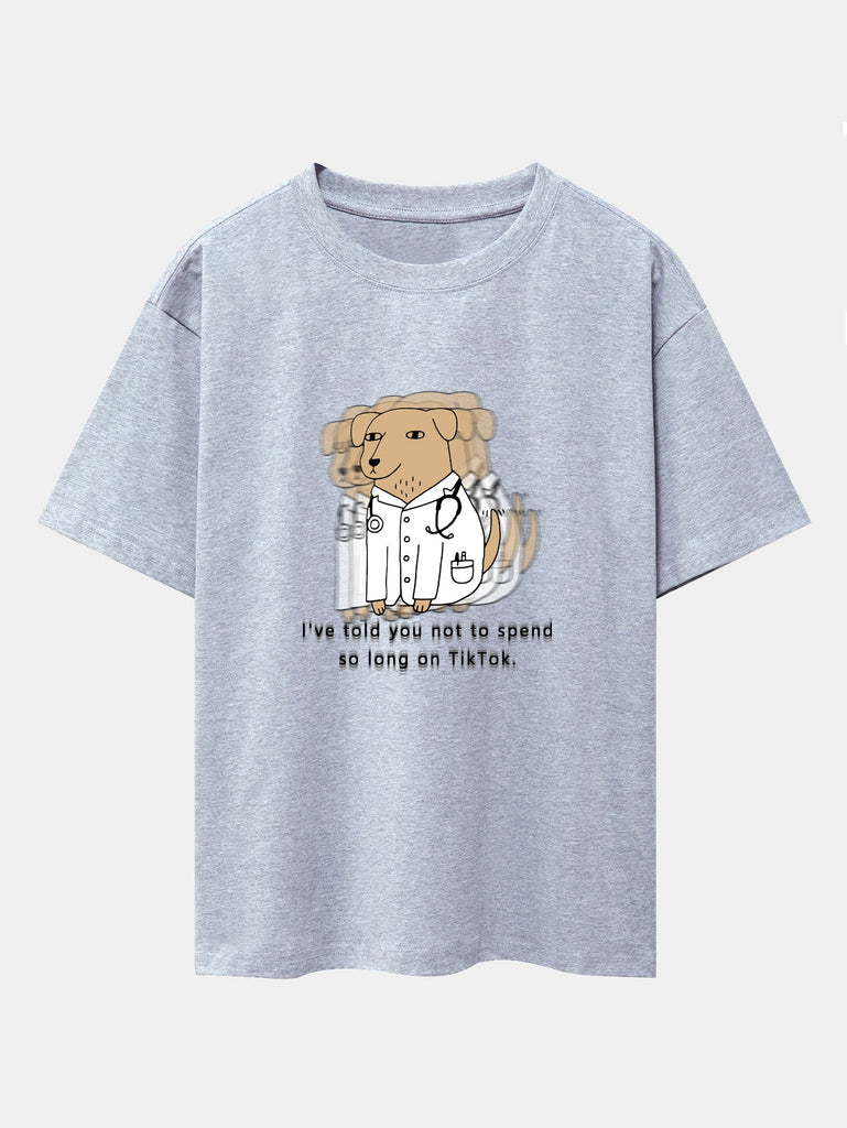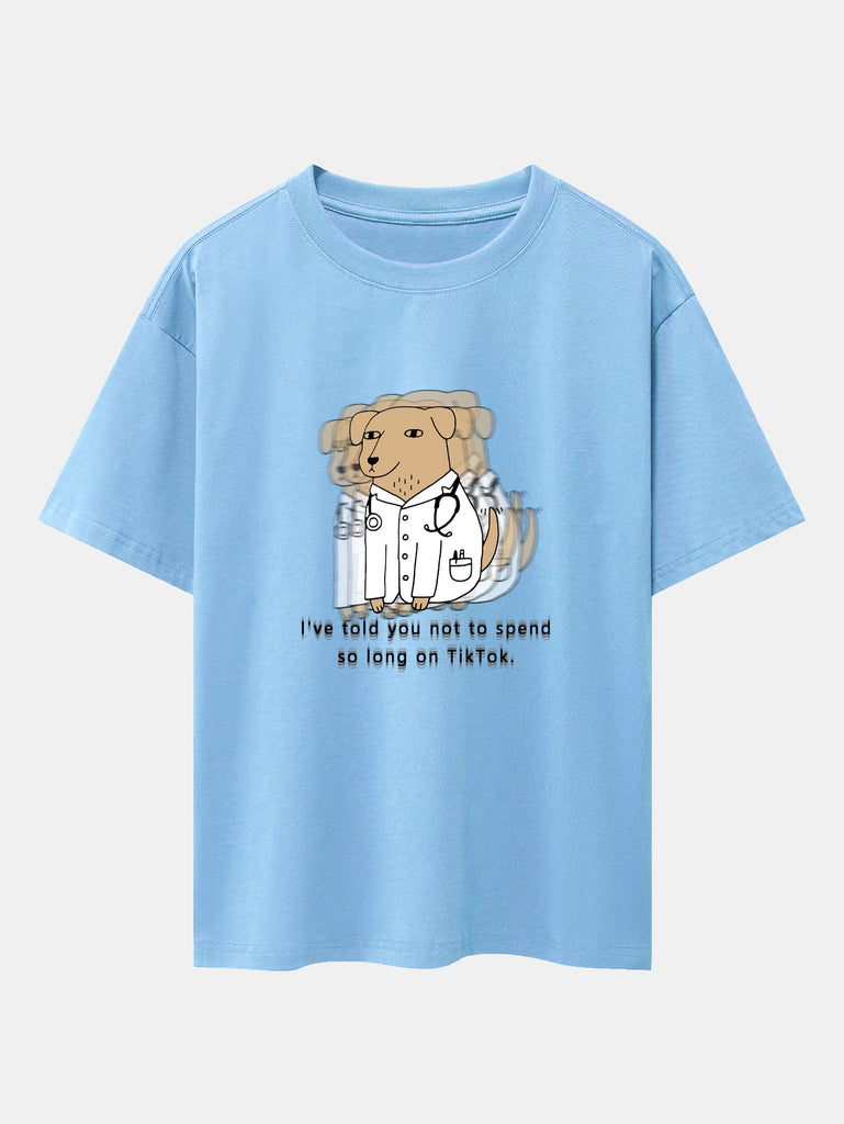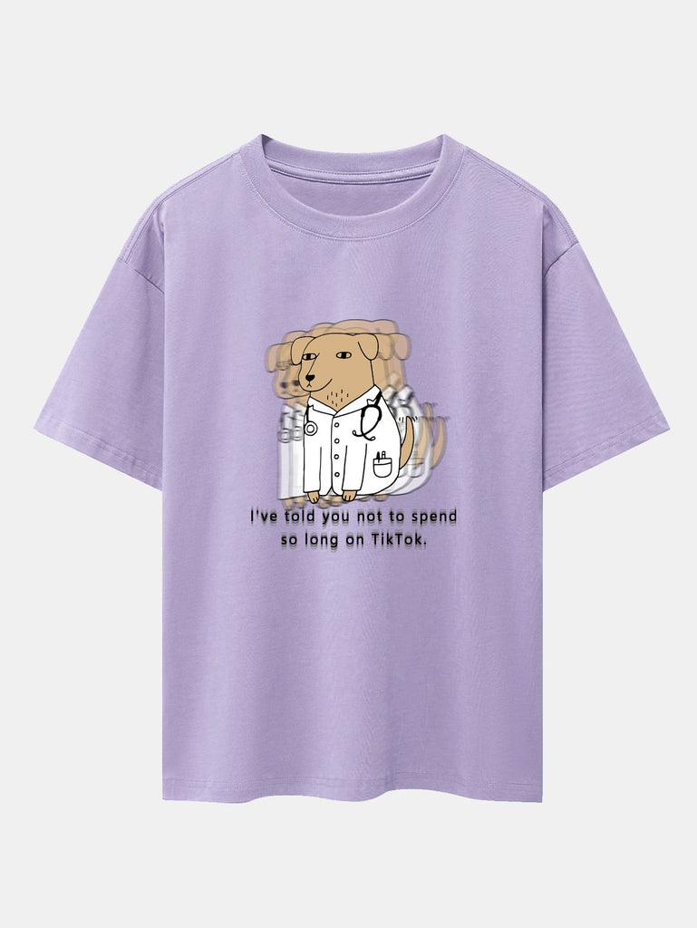 Funny Doctor Dog Print Drop Shoulder Oversize T-Shirt