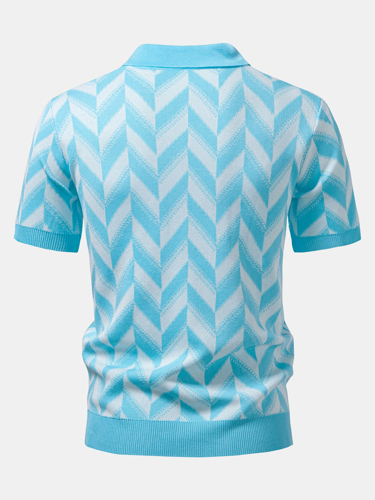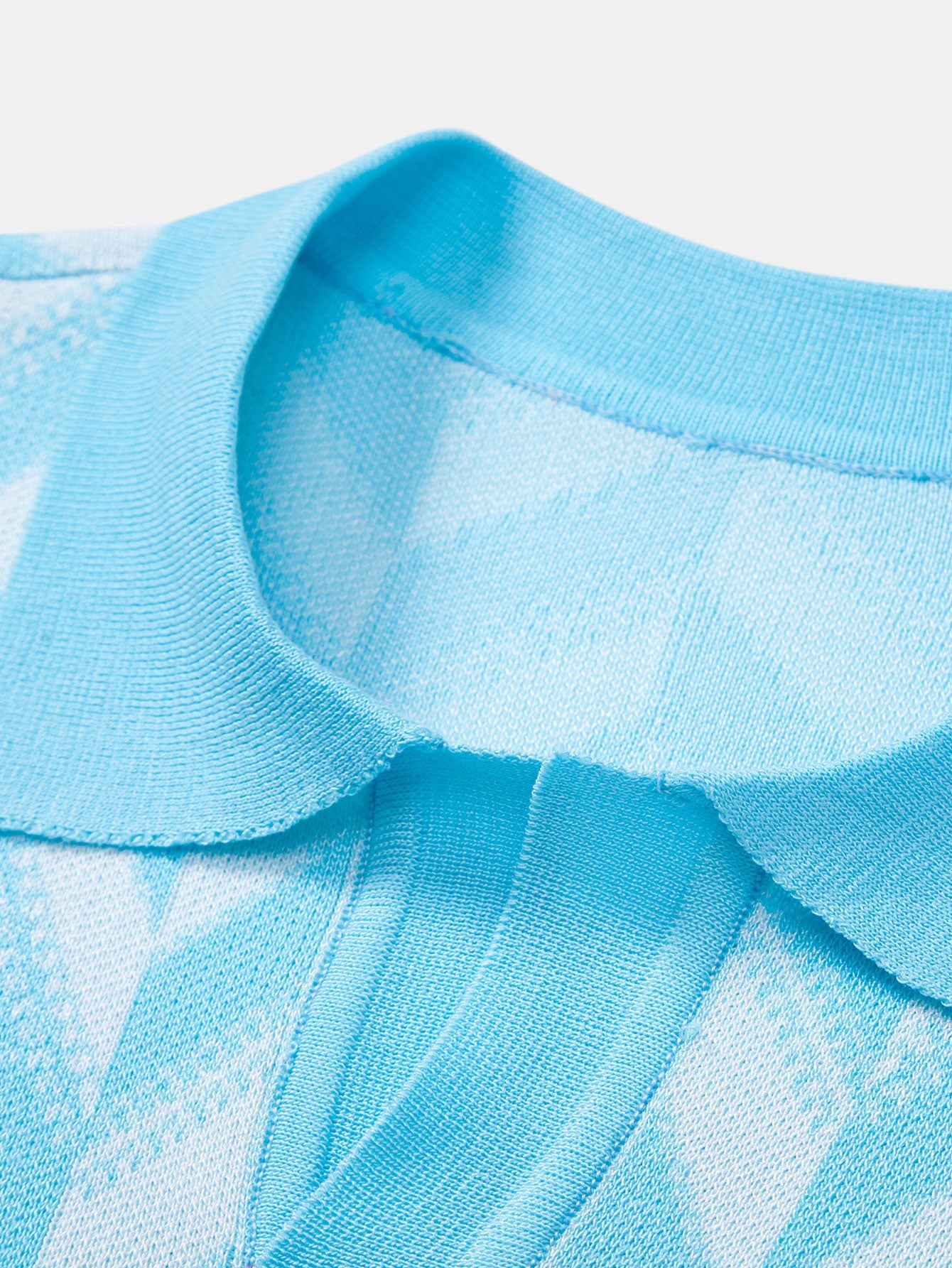 Inspired by retro patterns and modern tailoring, this shirt features a bold jacquard weave that creates a striking geometric texture. The soft V-neckline offers a relaxed yet polished feel, making it suitable for both off-duty days and smart-casual events.