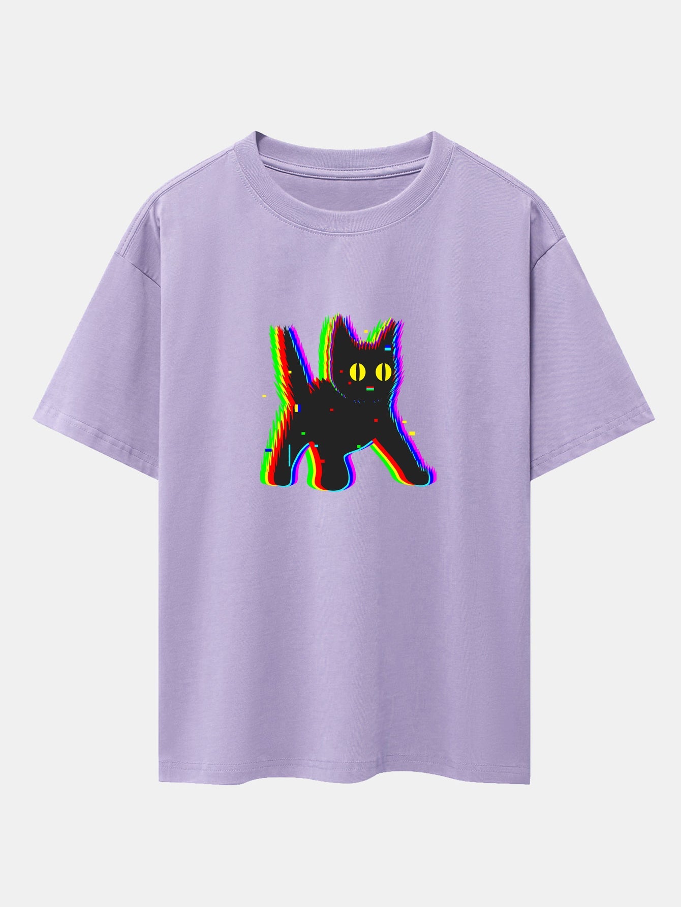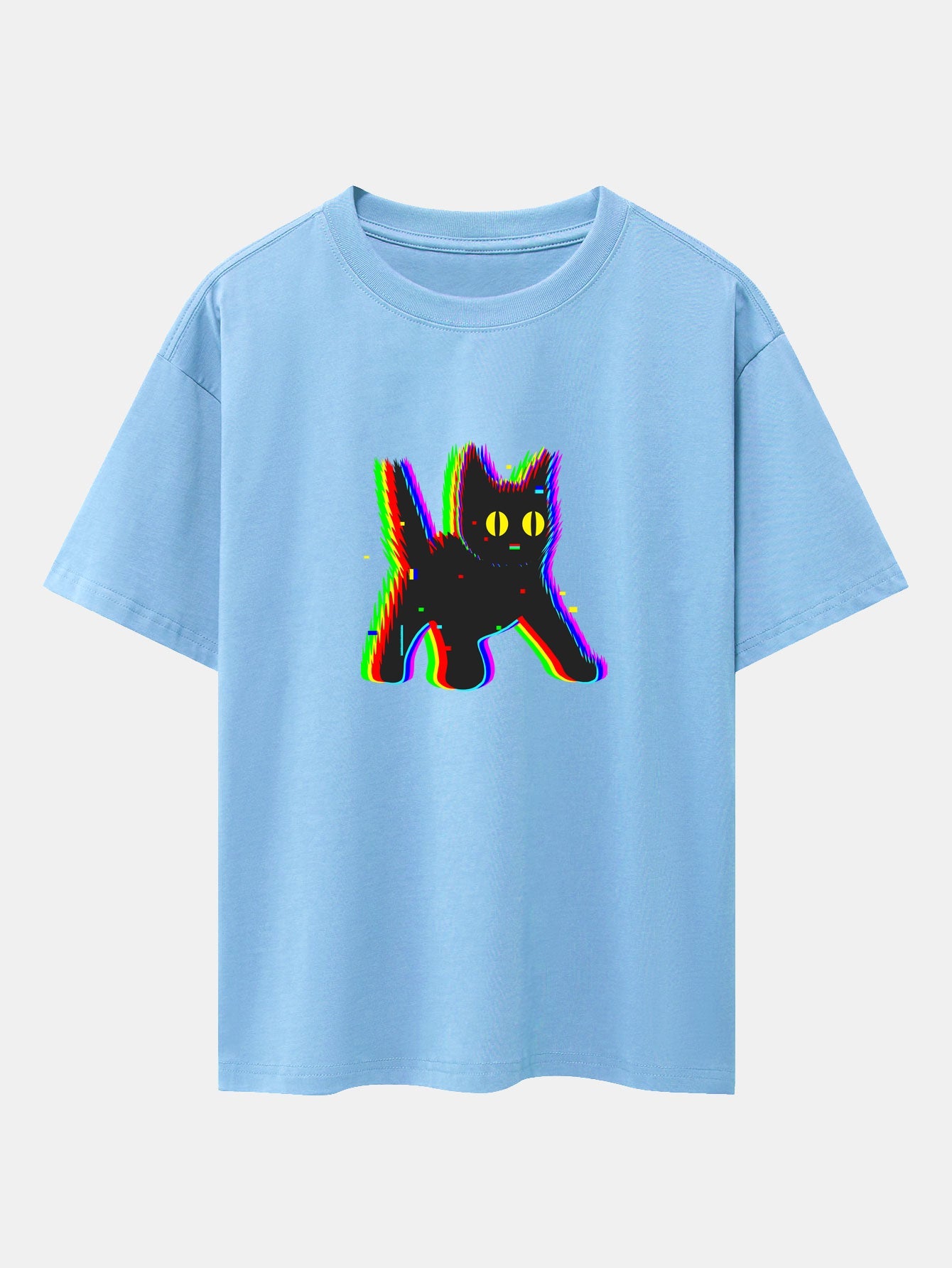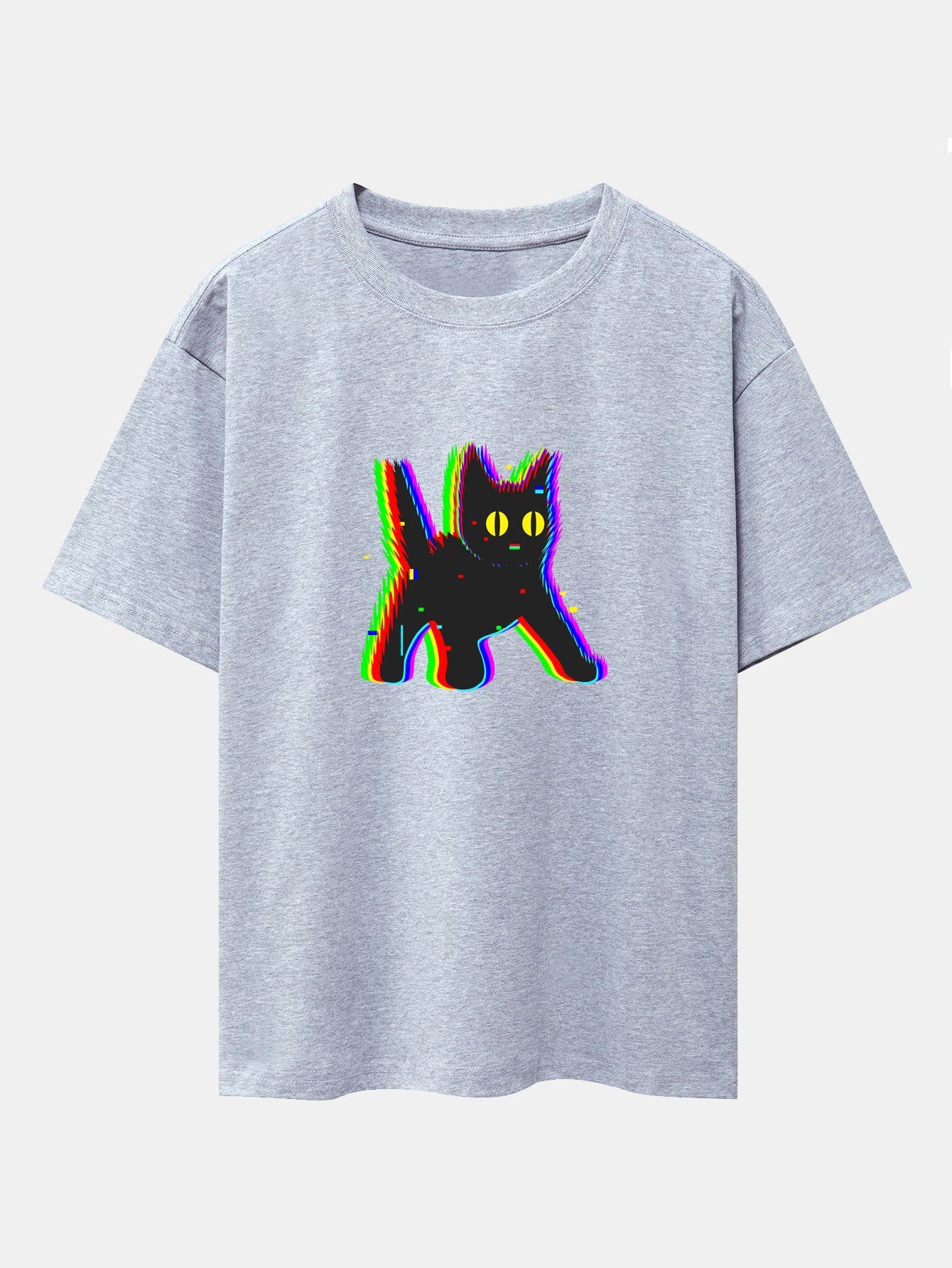 Add a dash of spooky charm to your casual wardrobe with this frightened black cat print drop shoulder oversize T-shirt. Featuring a wide-eyed black cat graphic that¡¯s full of personality, this tee blends humor and style. The oversized silhouette and relaxed drop shoulders ensure a comfy fit that¡¯s perfect for lounging, layering, or standing out in a crowd.