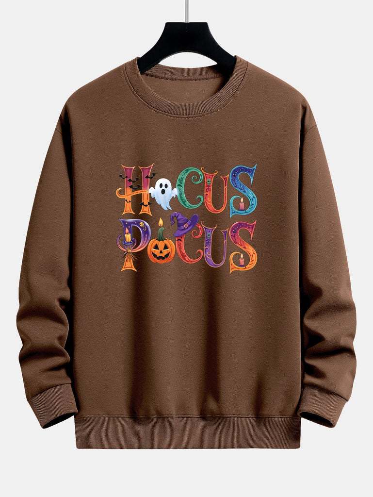 Cozy up this Halloween with our soft, breathable sweatshirt. Boasts a playful hocus pocus print for festive flair. Versatile hues pair easily with jeans or leggings¡ªperfect for trick-or-treating or movie nights!