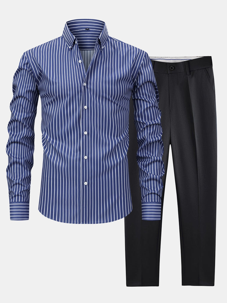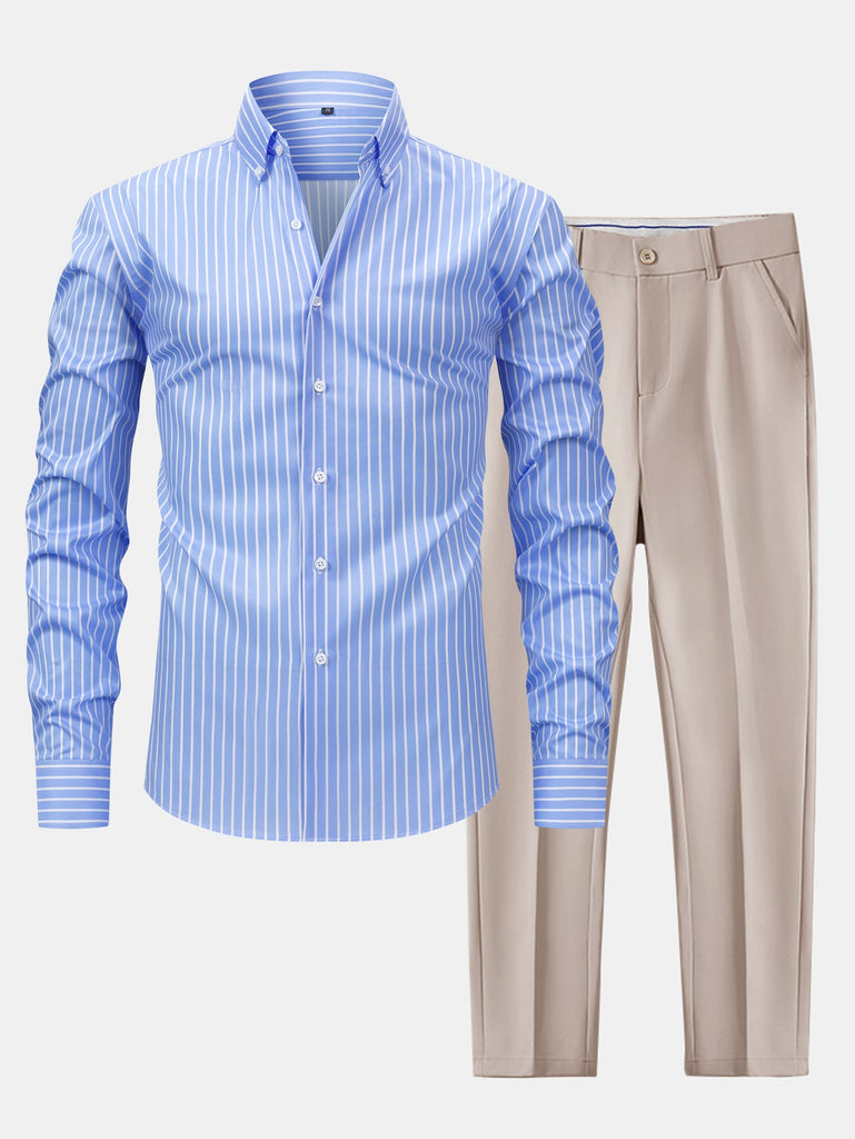 Long Sleeve Stripe Button Up Shirt & Slim Fit Tapered Trousers