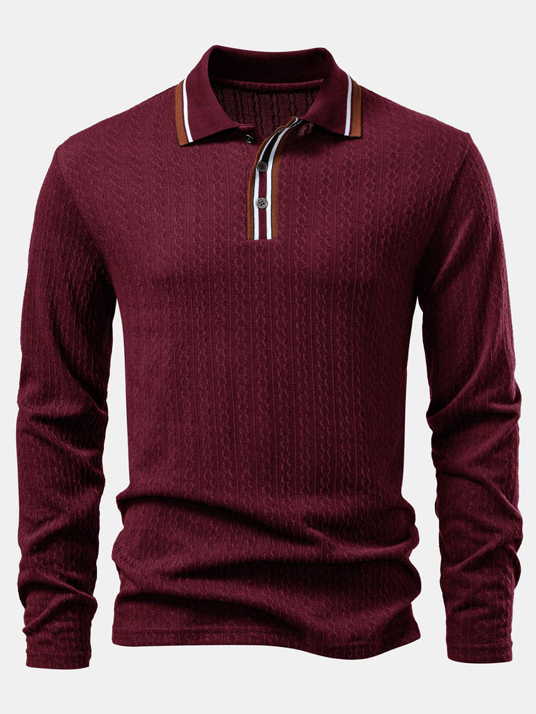 Long Sleeve Twist Jacquard Polo Shirt