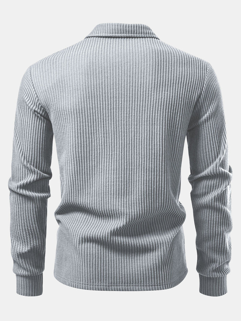 Long Sleeved Knitted Waffle Polo Shirt