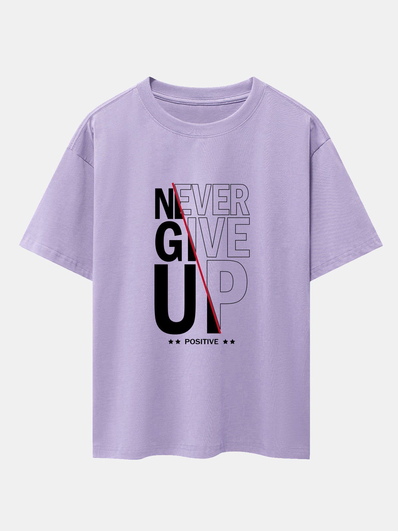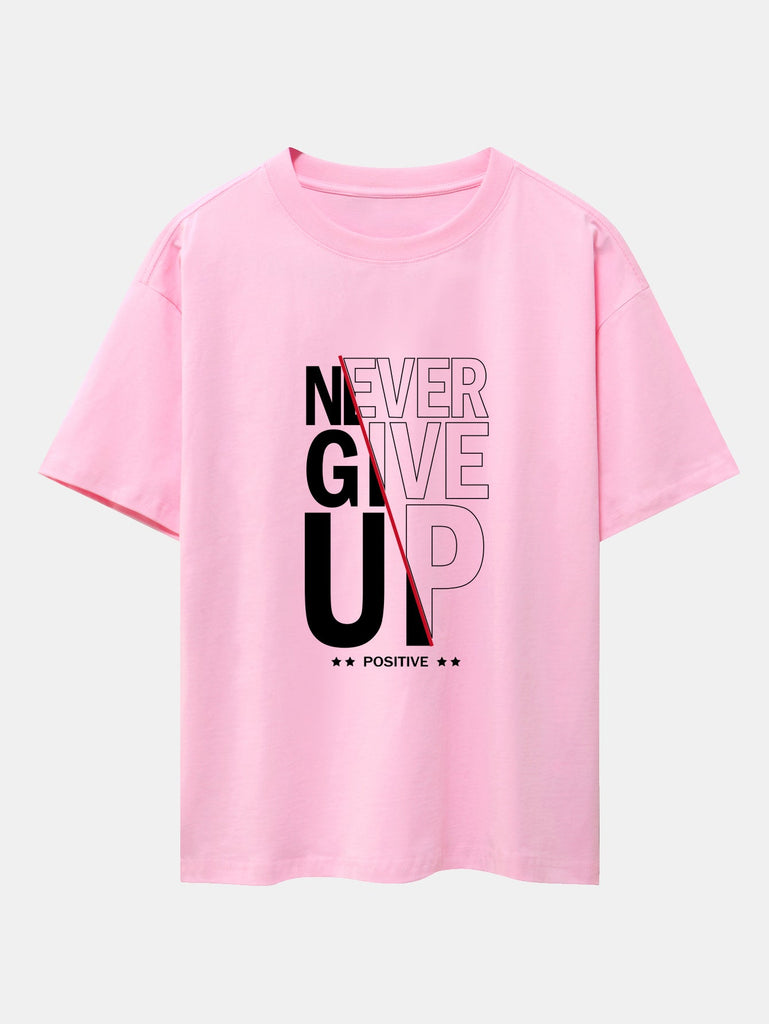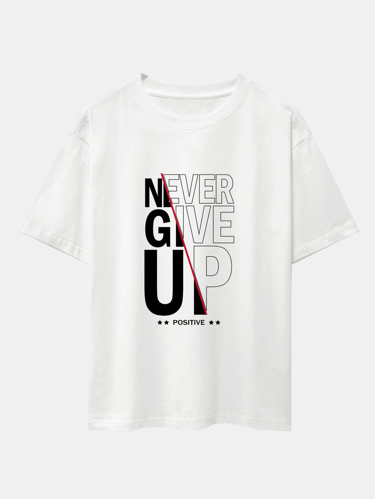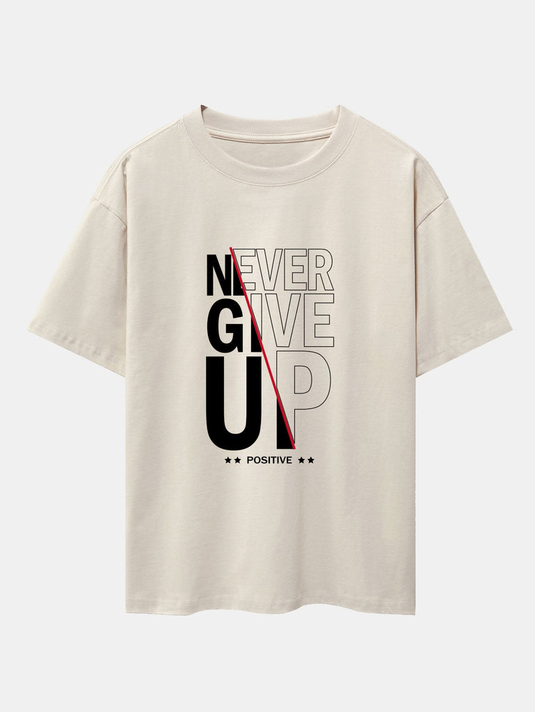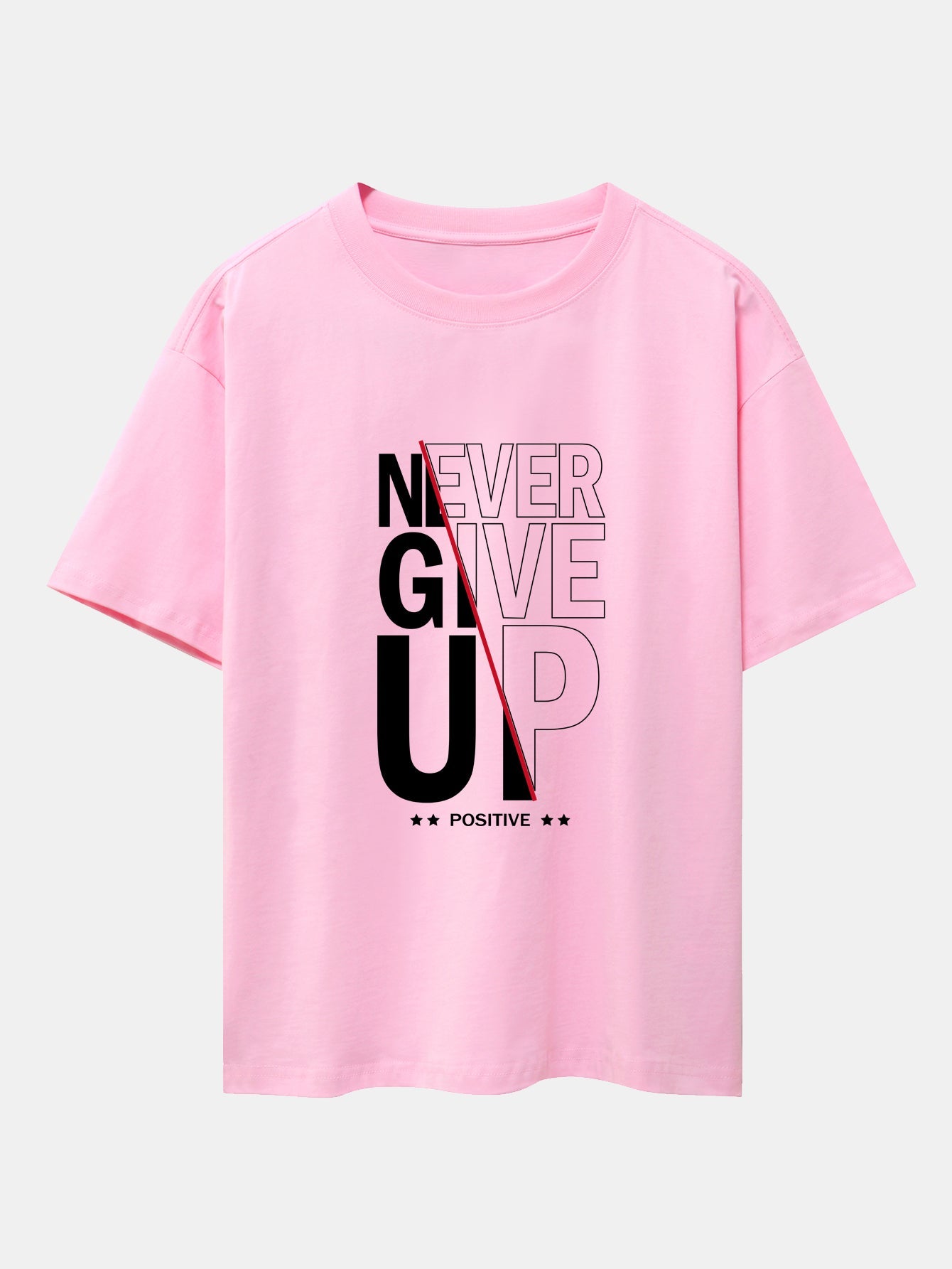 Never Give Up Print Drop Shoulder Oversize T-Shirt
