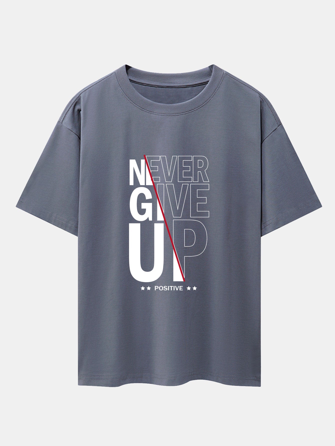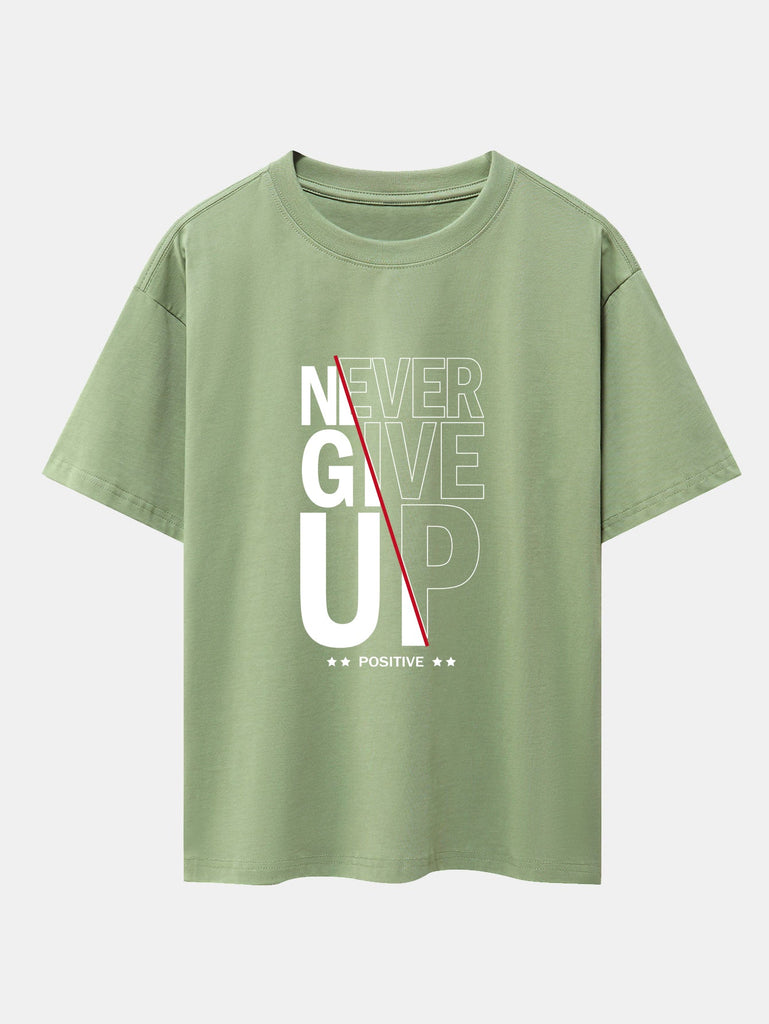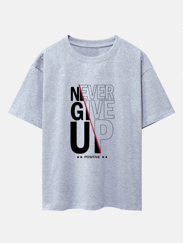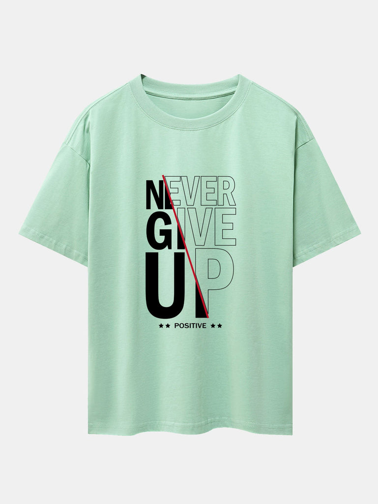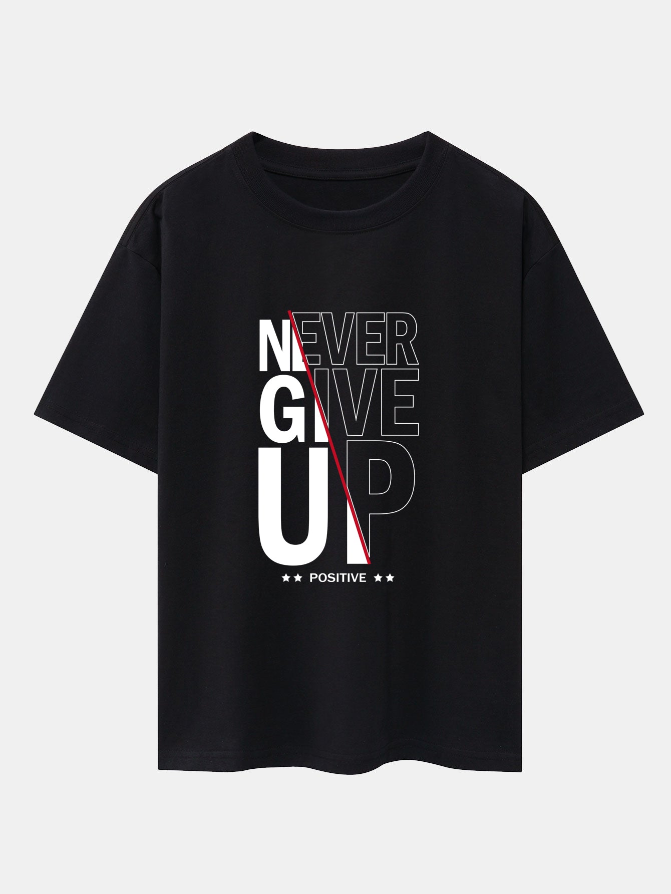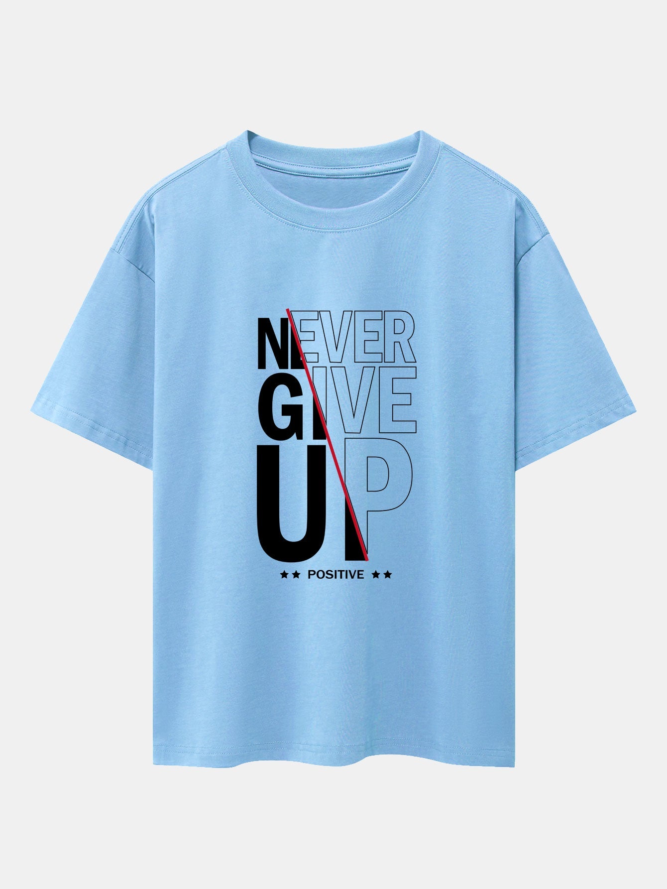 Never Give Up Print Drop Shoulder Oversize T-Shirt