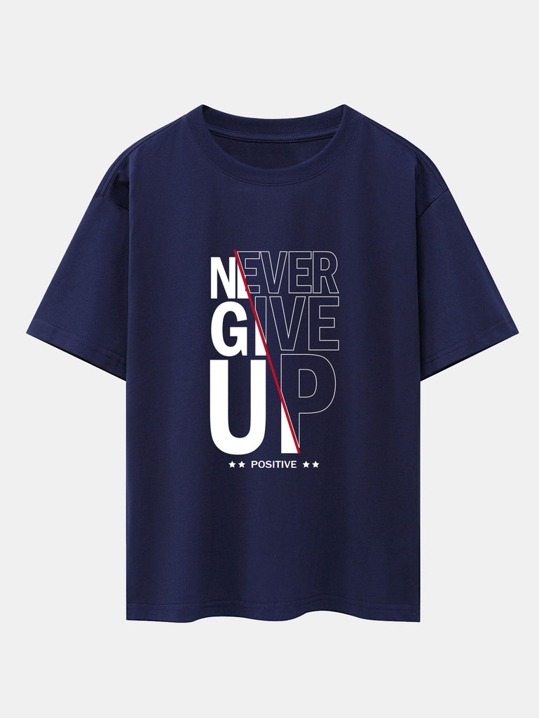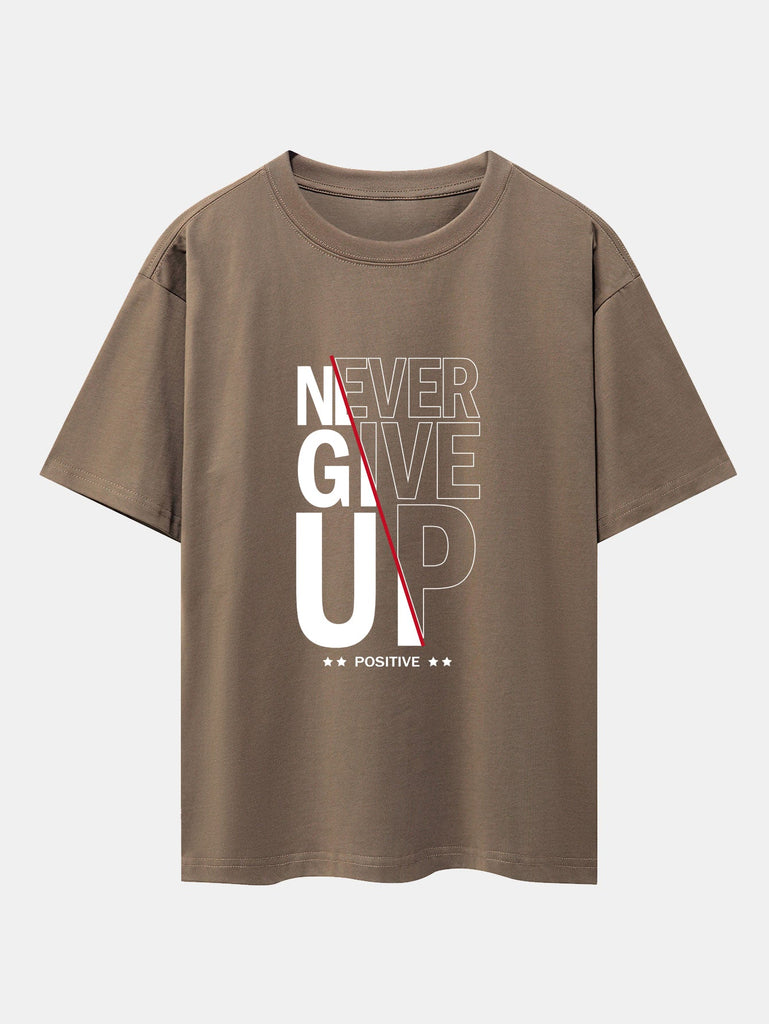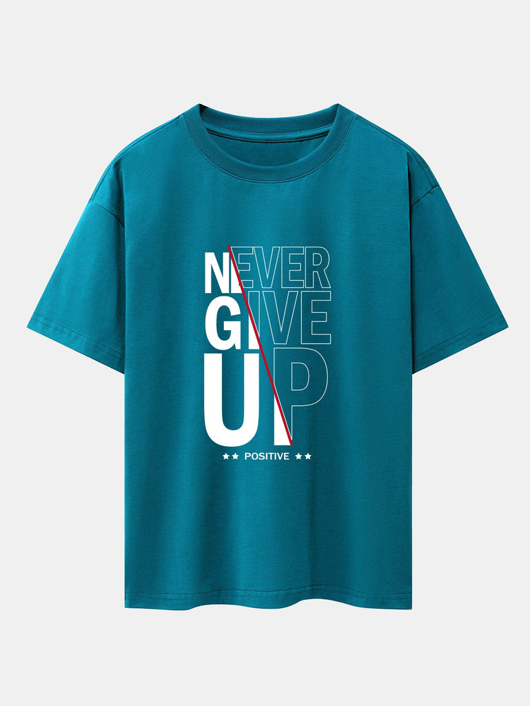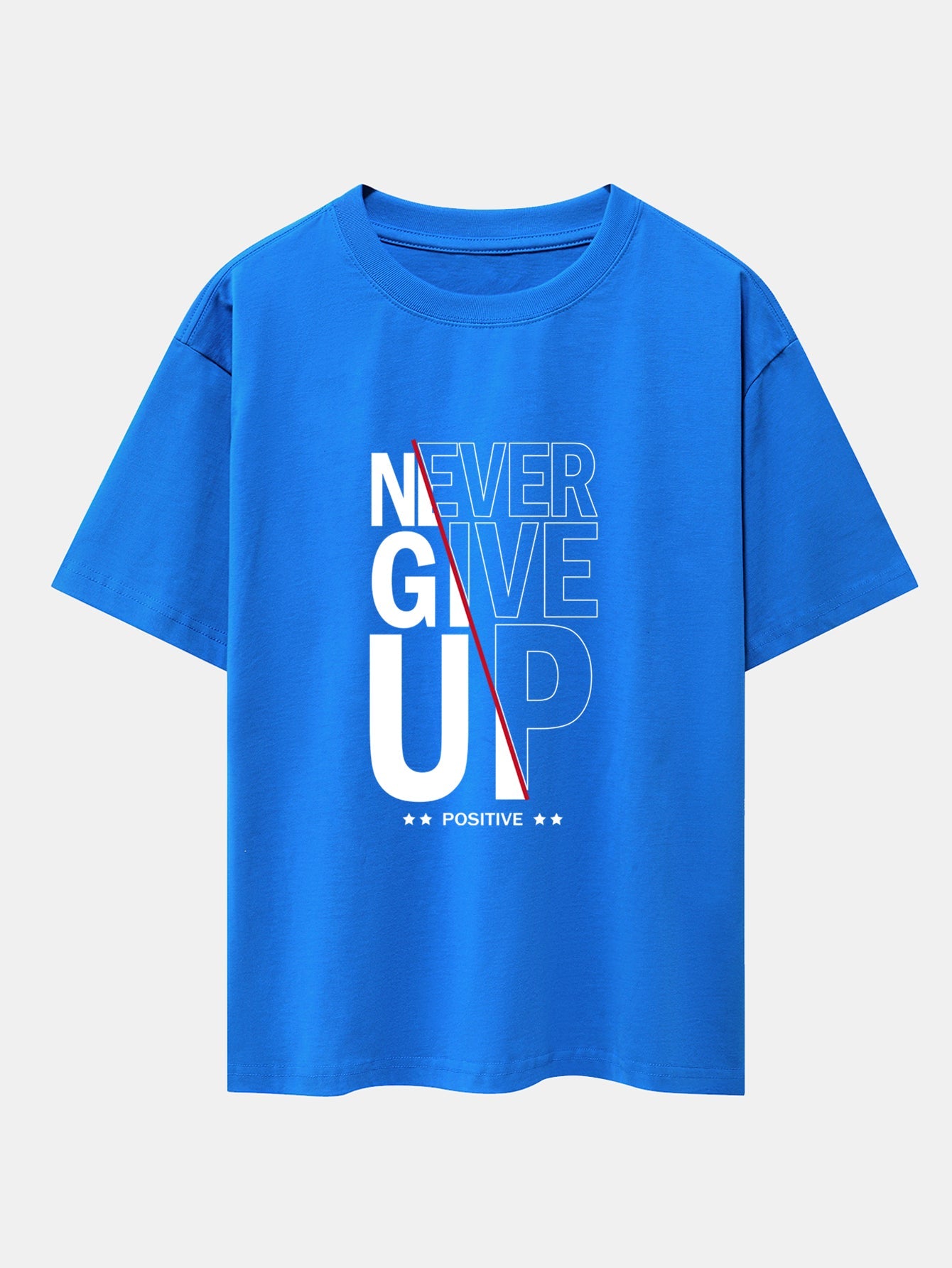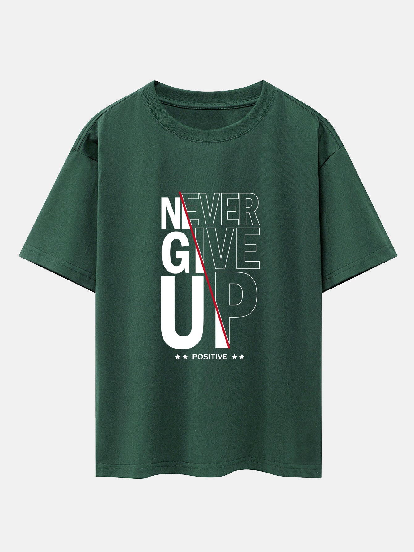Never Give Up Print Drop Shoulder Oversize T-Shirt