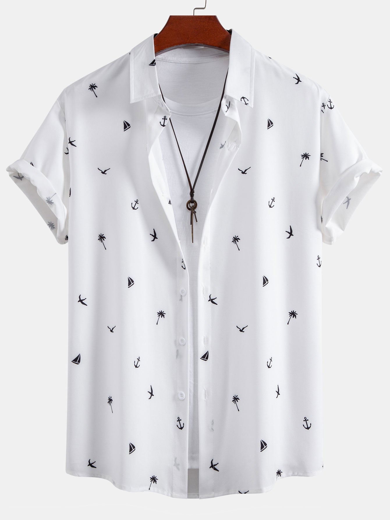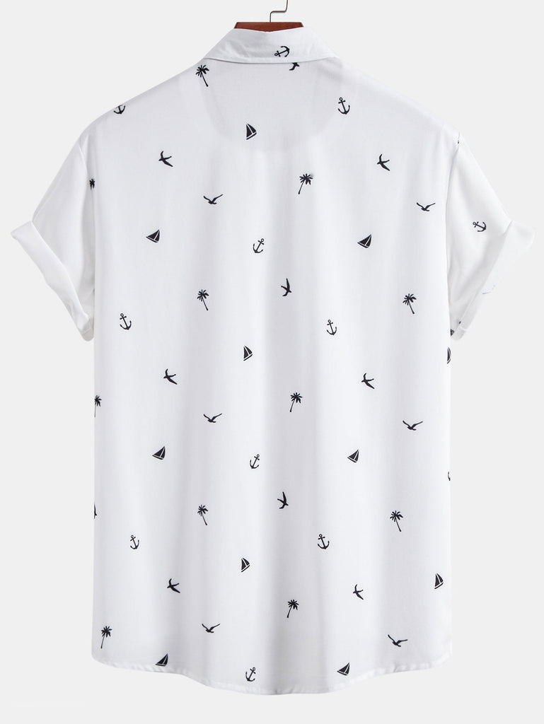 Palm Tree Anchor Sailboat Print Button Up Shirt & Swim Shorts
