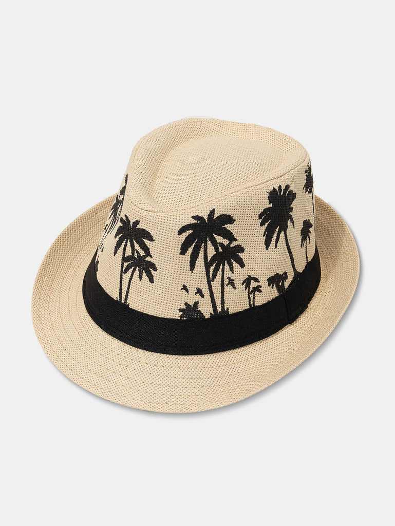 Palm Tree Print Breathable Straw Hat