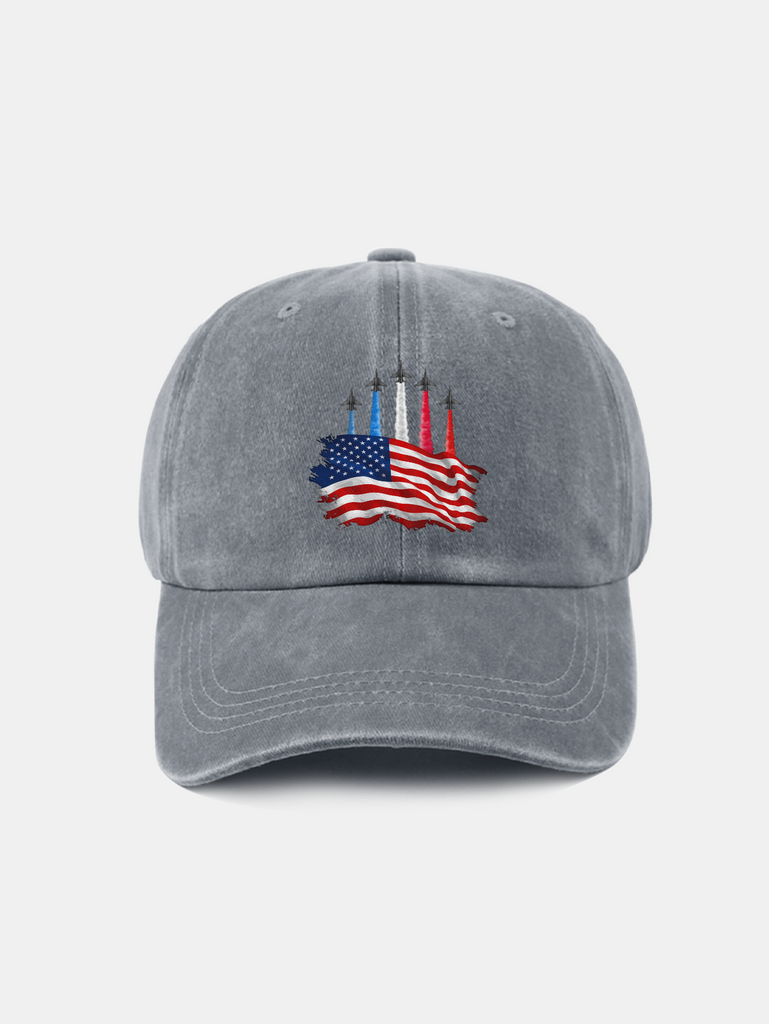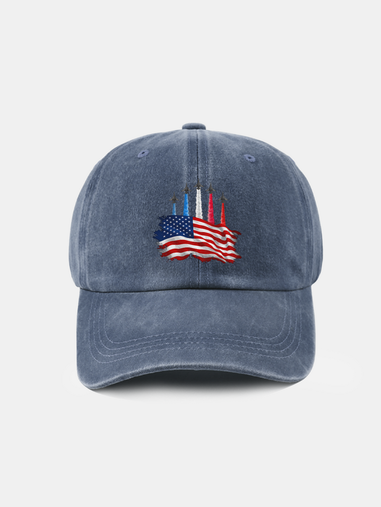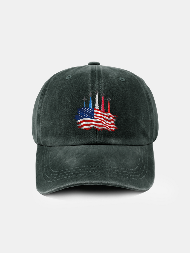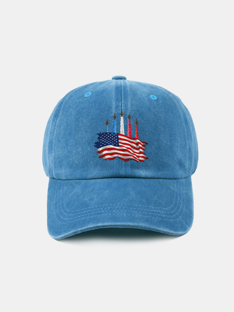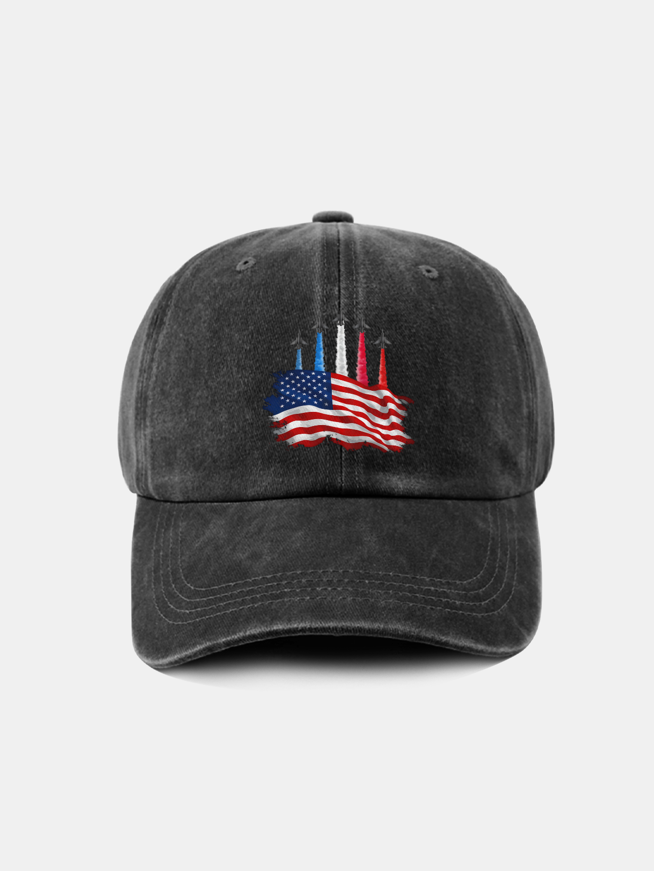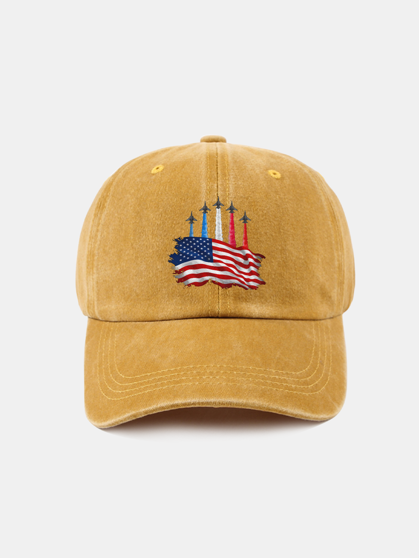 Patriotic USA Jet Flyover Print Washed Baseball Cap