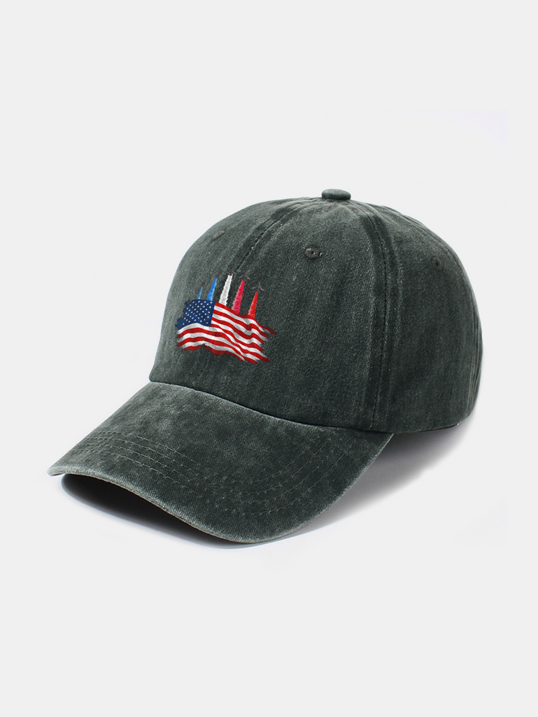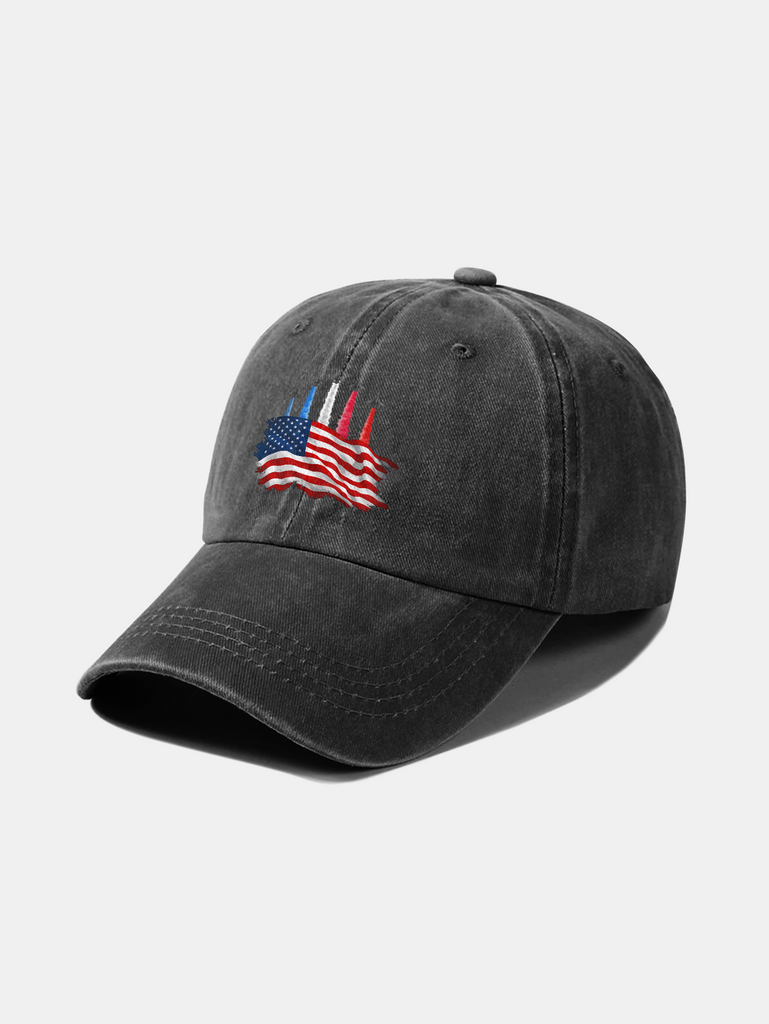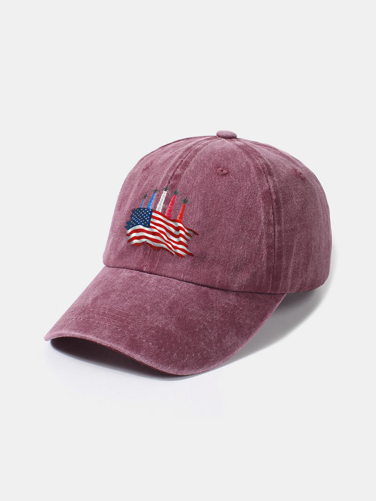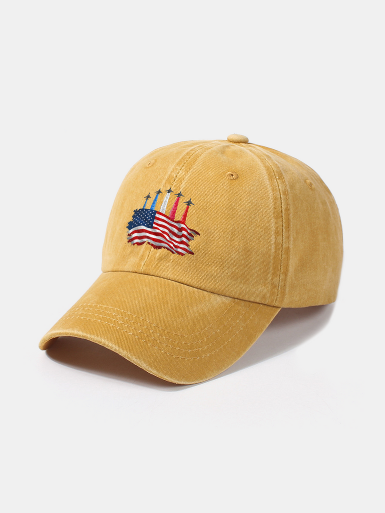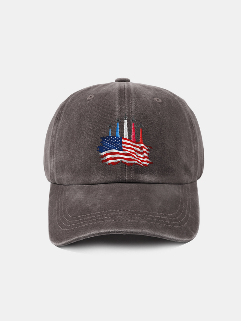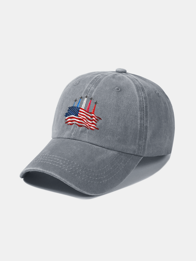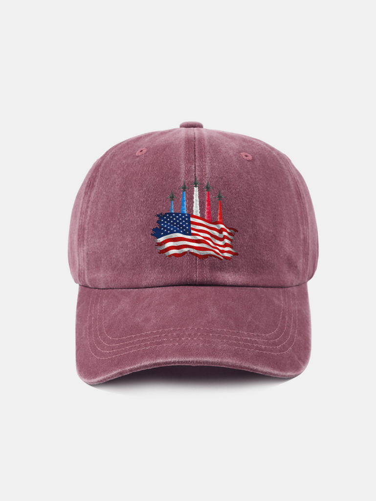 Patriotic USA Jet Flyover Print Washed Baseball Cap