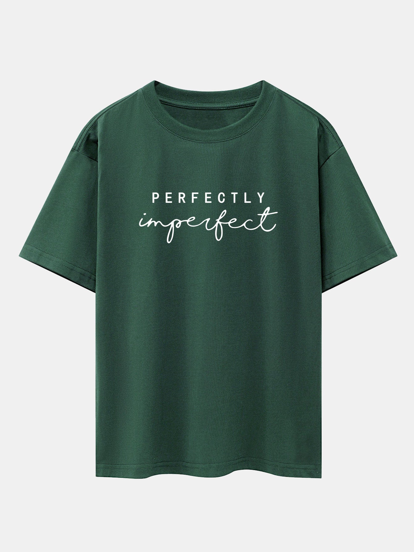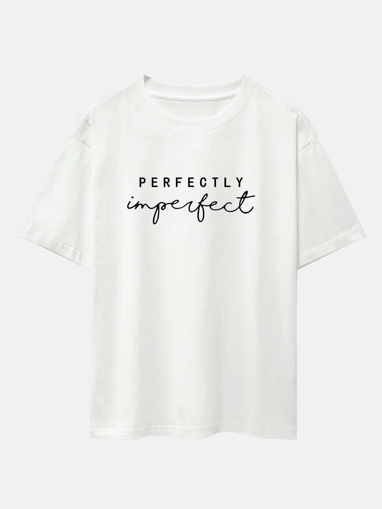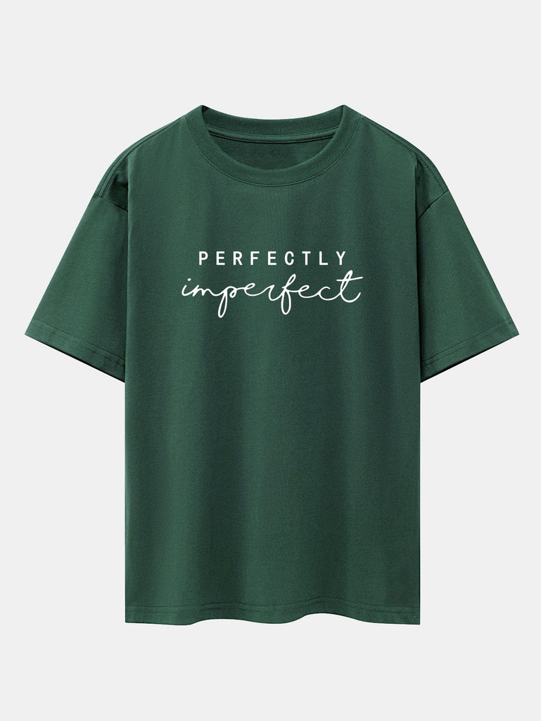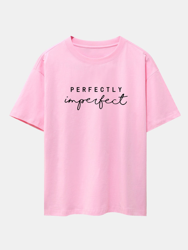 Celebrate authenticity with the perfectly imperfect print drop shoulder oversize T-shirt. Designed to embrace self-love and individuality, this tee features a minimalist perfectly imperfect slogan that speaks volumes. The oversized fit and drop shoulder design offer ultimate comfort with a relaxed, effortlessly cool vibe.