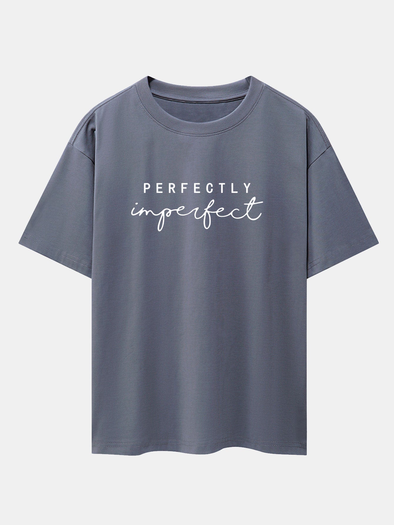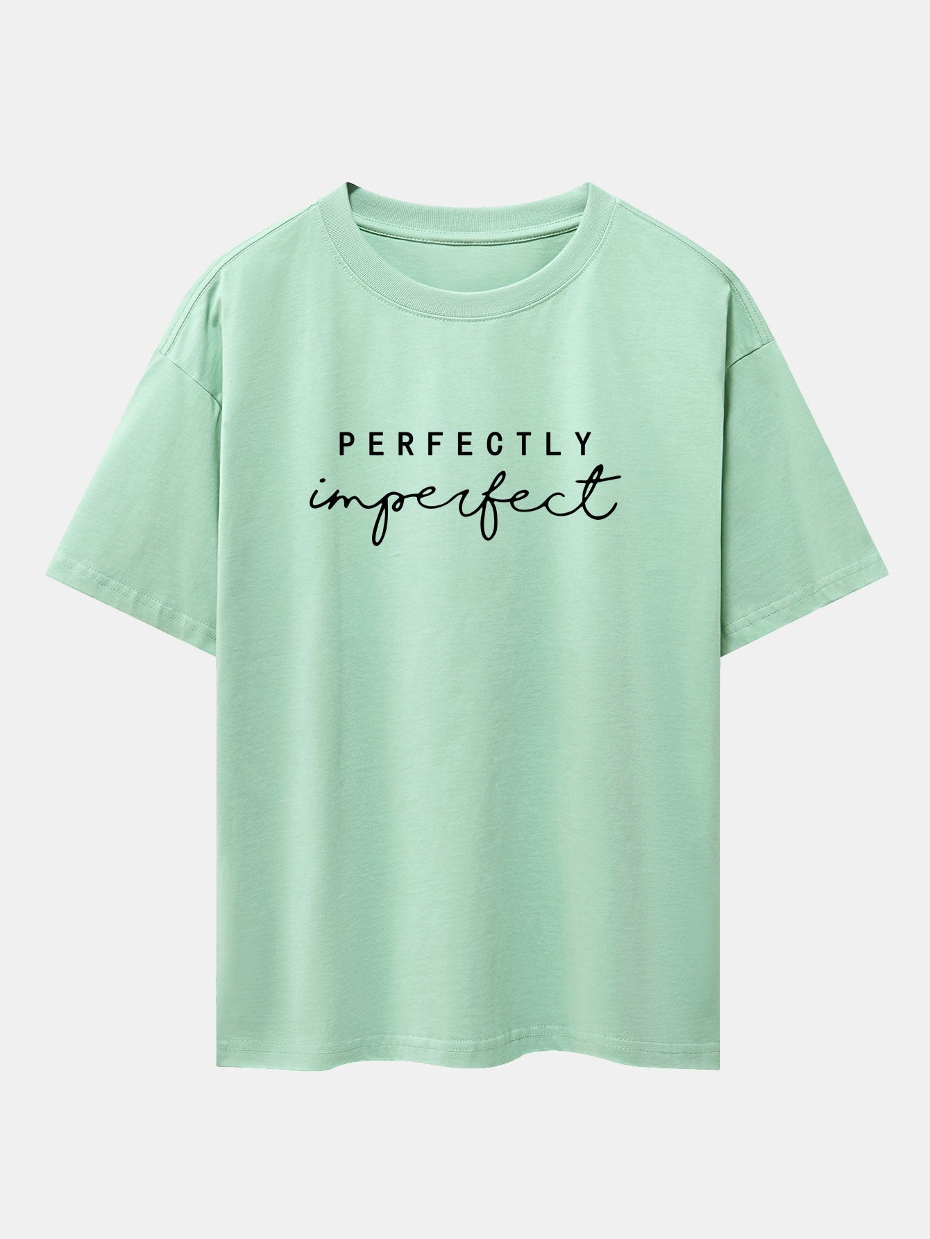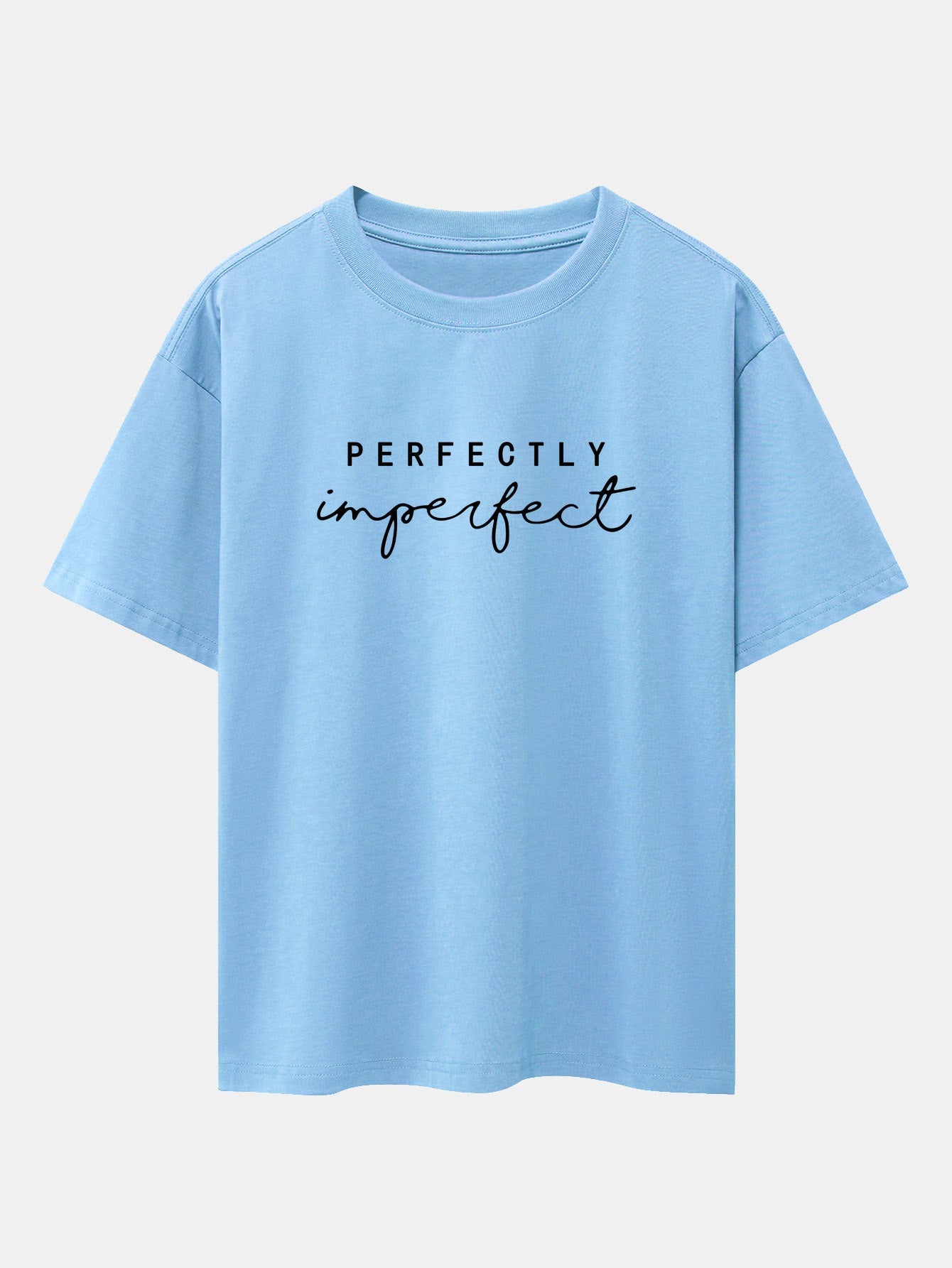 Celebrate authenticity with the perfectly imperfect print drop shoulder oversize T-shirt. Designed to embrace self-love and individuality, this tee features a minimalist perfectly imperfect slogan that speaks volumes. The oversized fit and drop shoulder design offer ultimate comfort with a relaxed, effortlessly cool vibe.