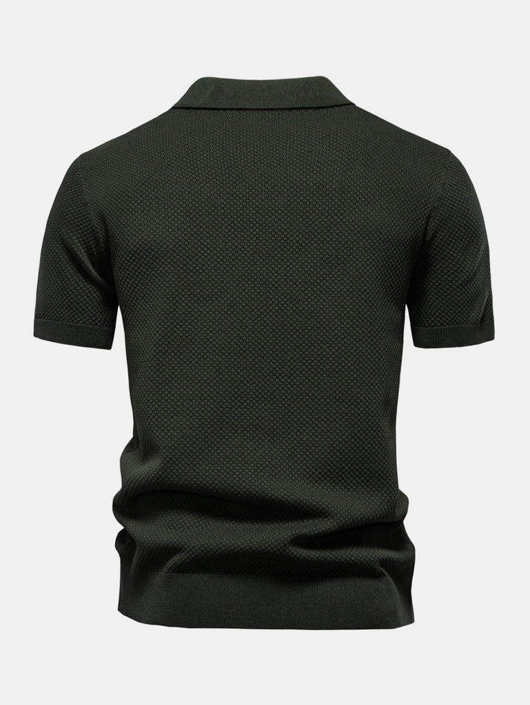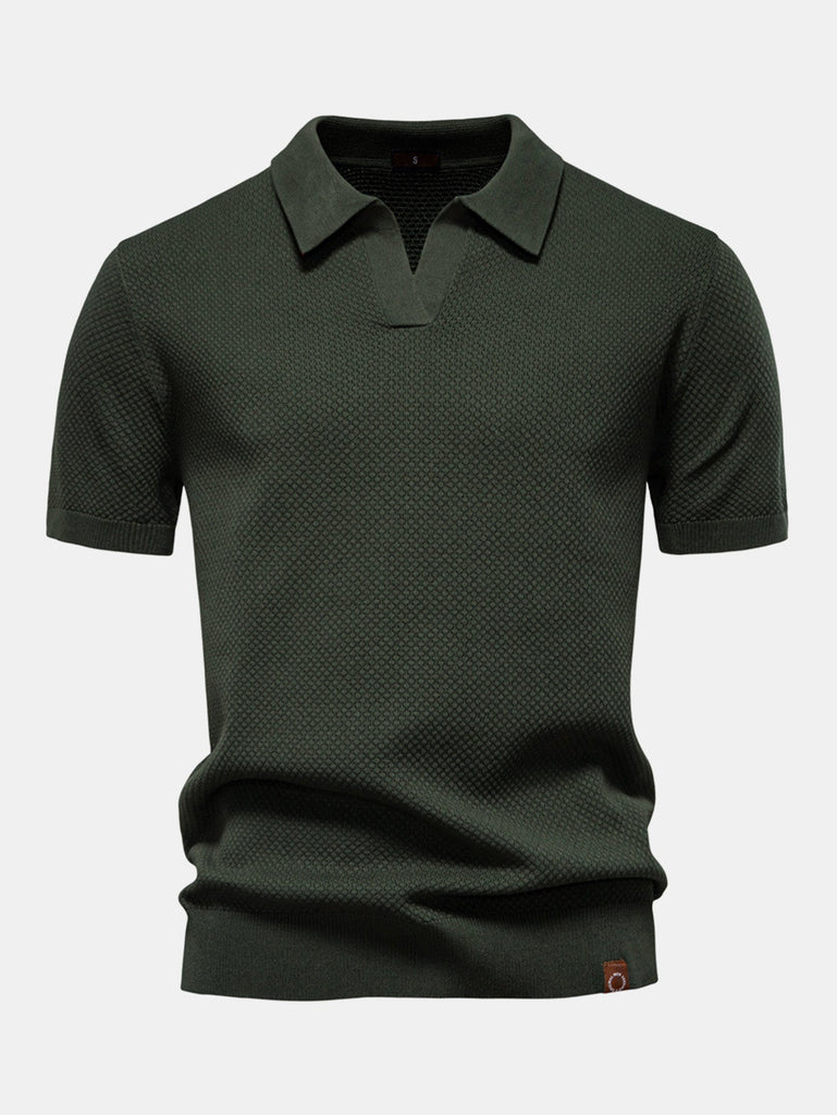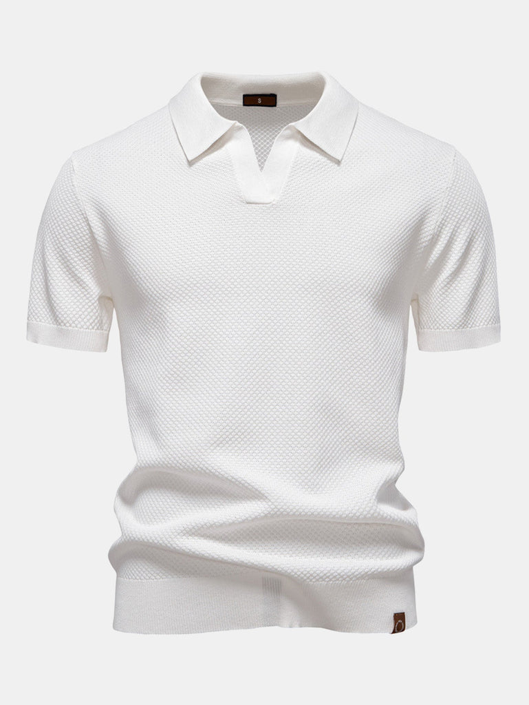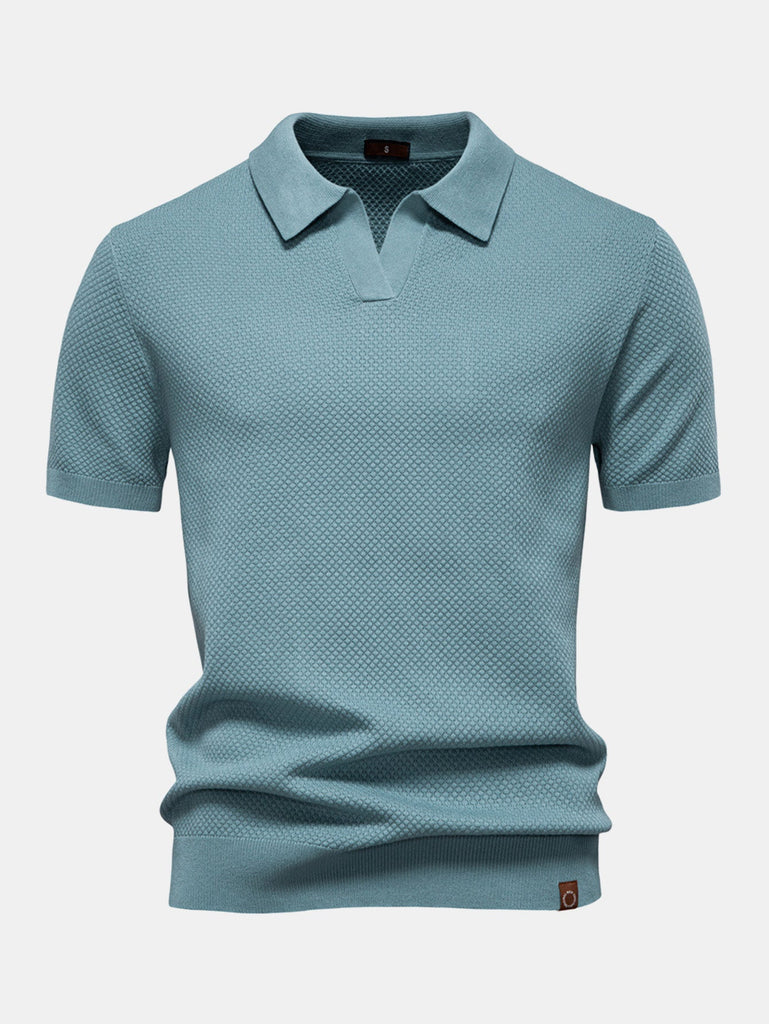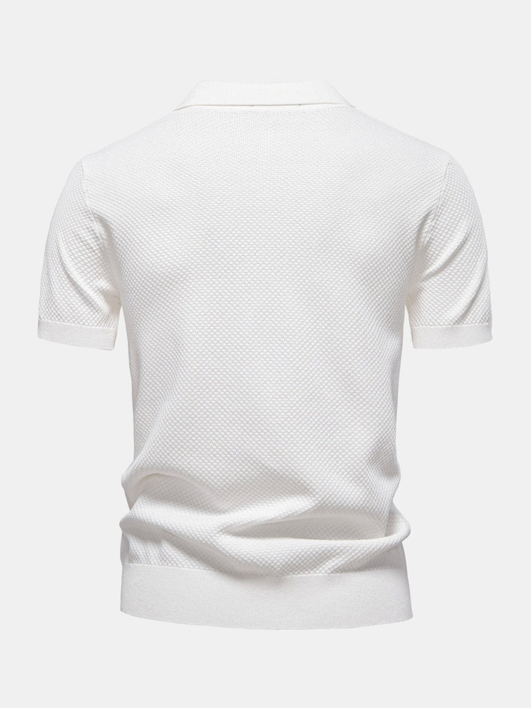 Pineapple Texture Knit V Neck Polo & Straight Leg Ribbed Pants