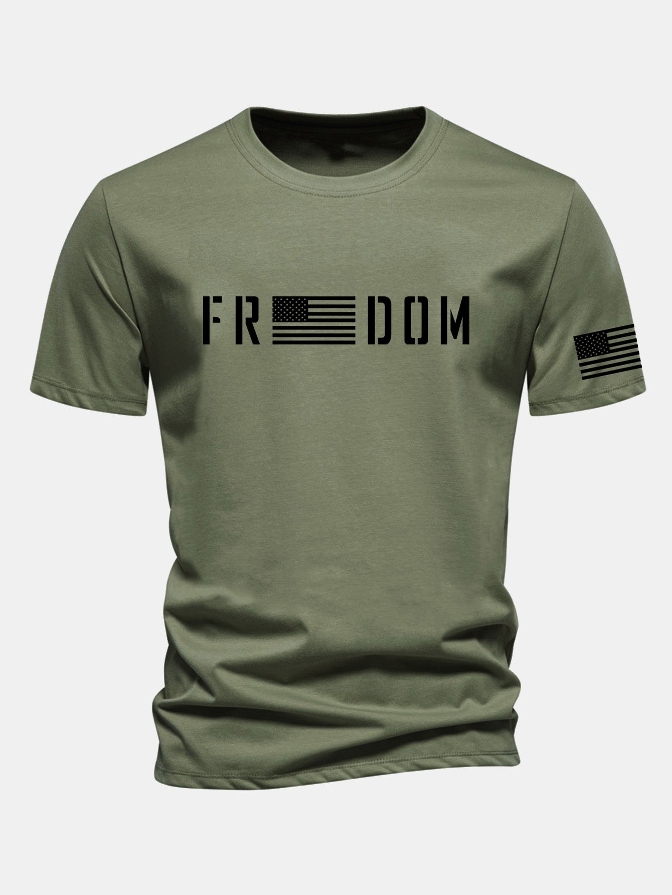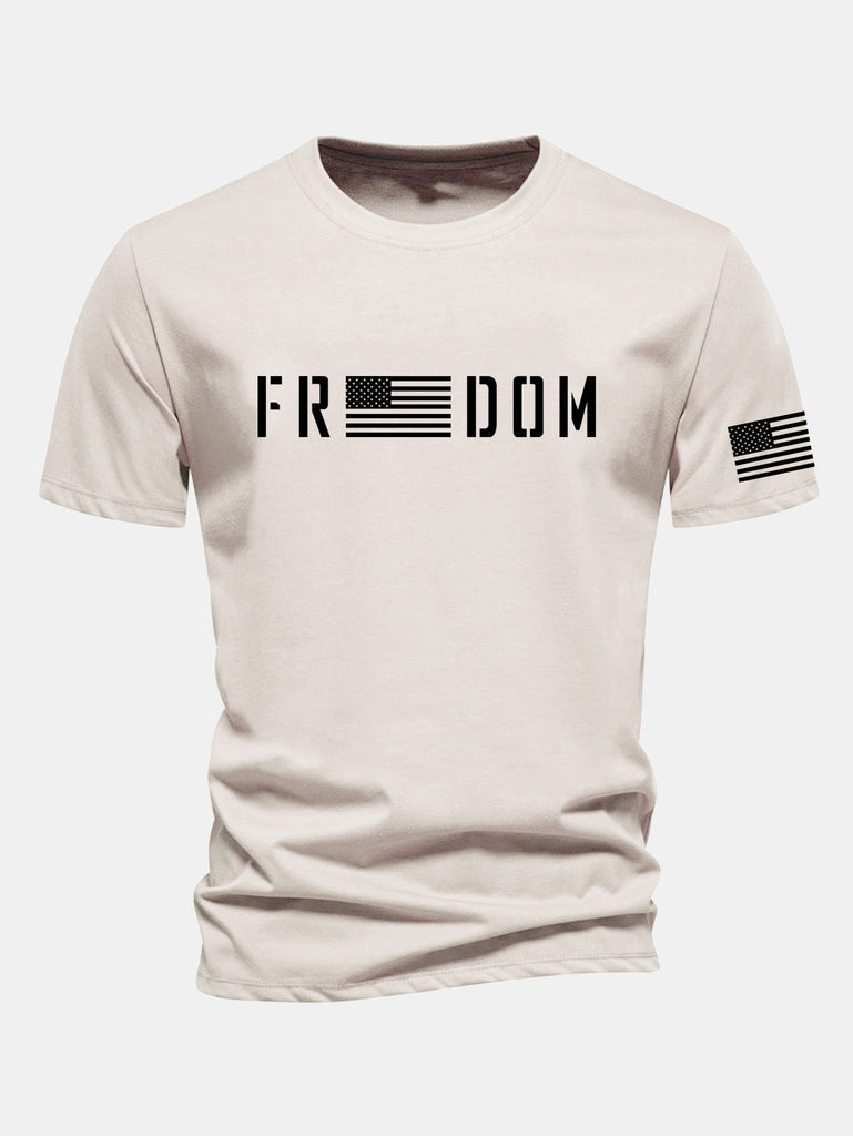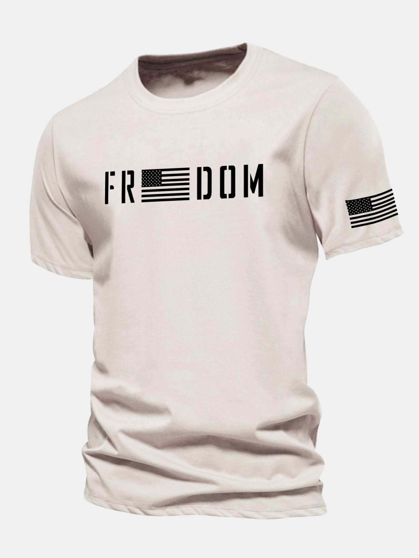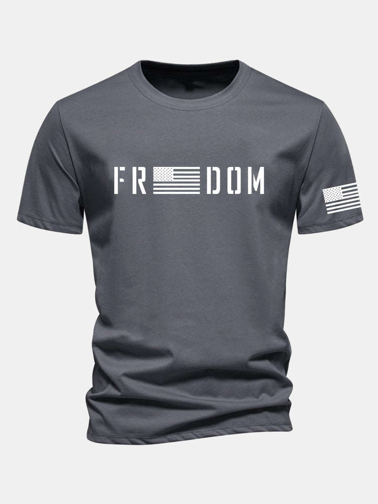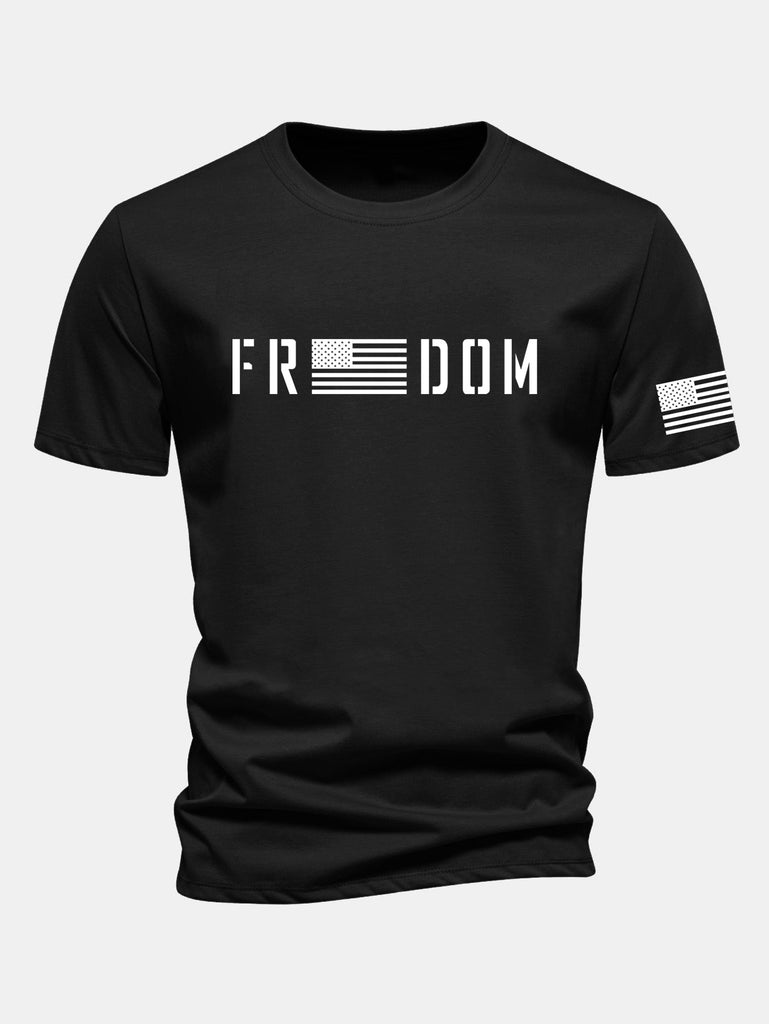 Regular Fit American Flag Freedom Print Cotton T-Shirt