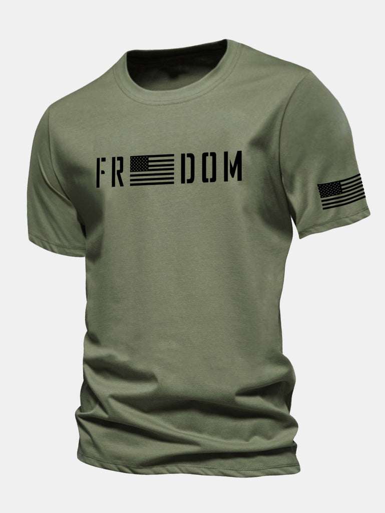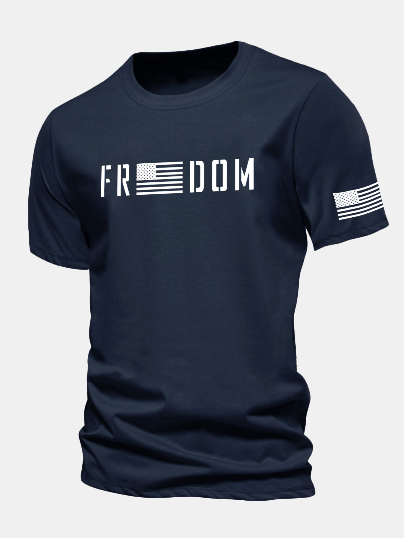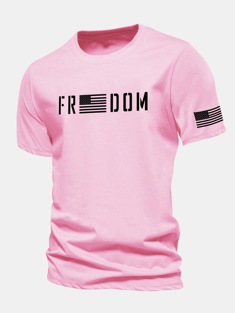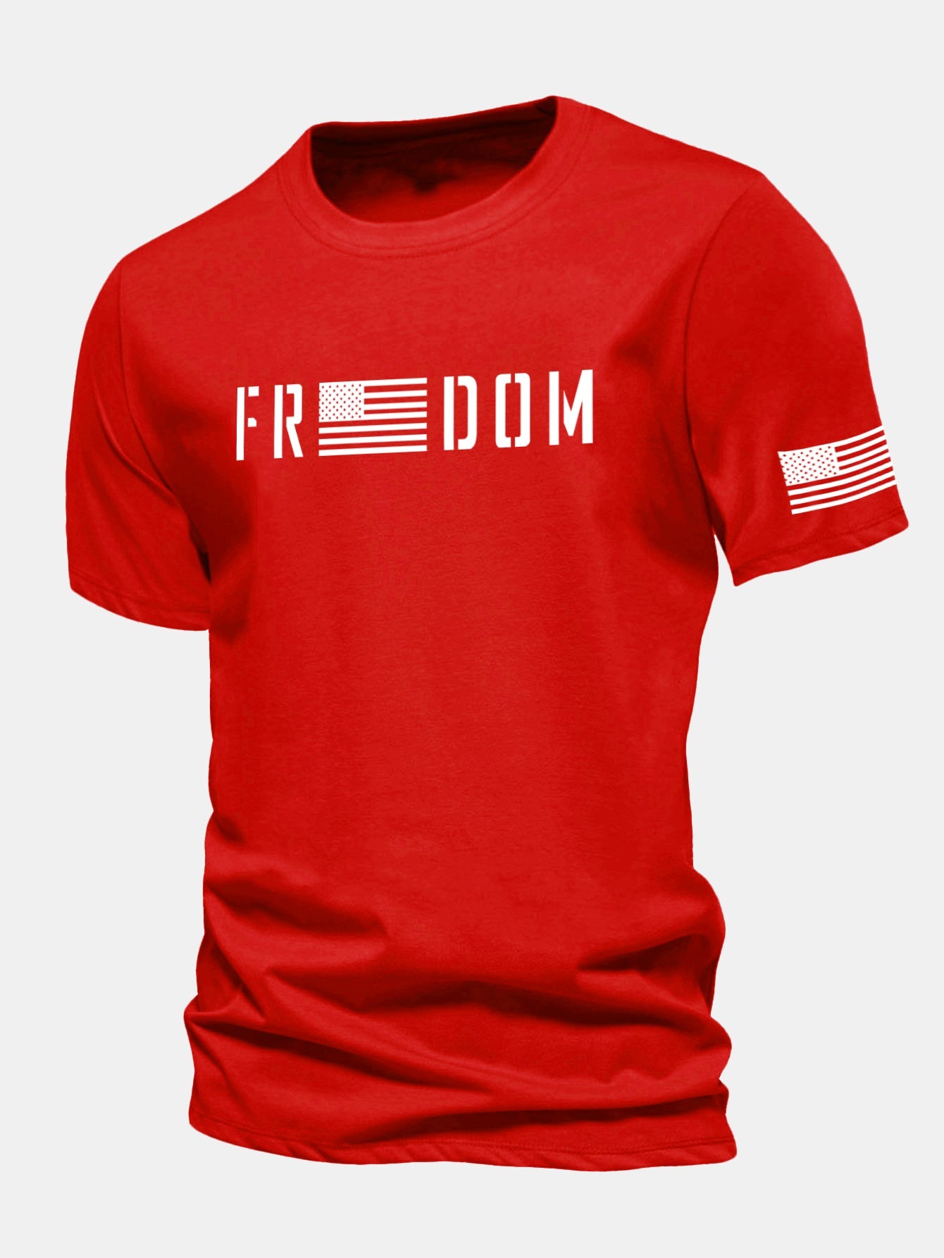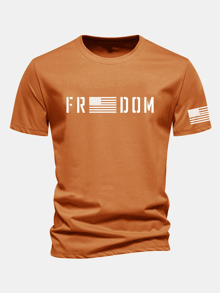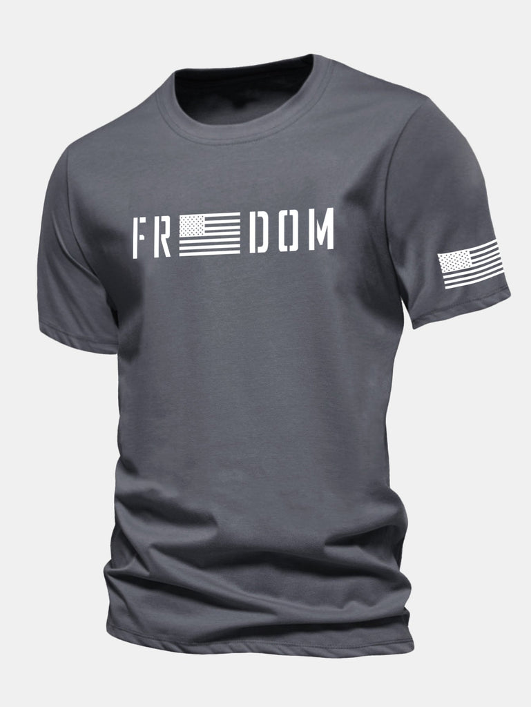 Regular Fit American Flag Freedom Print Cotton T-Shirt