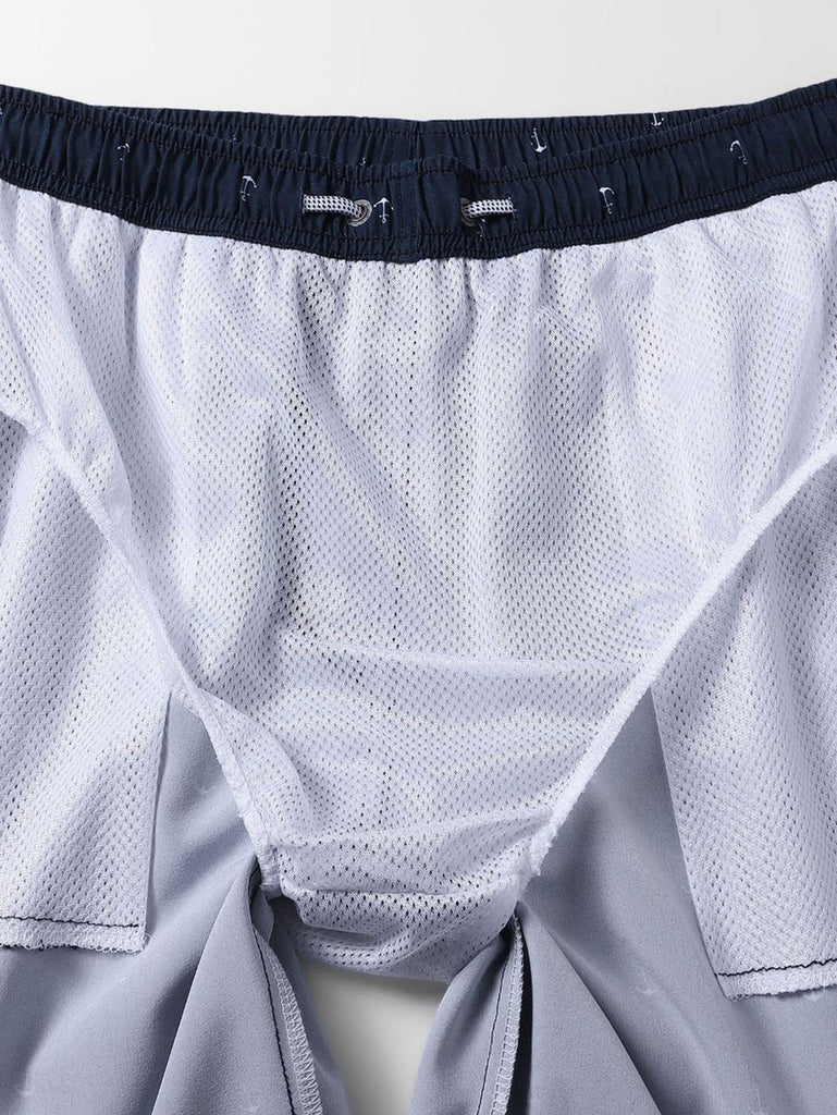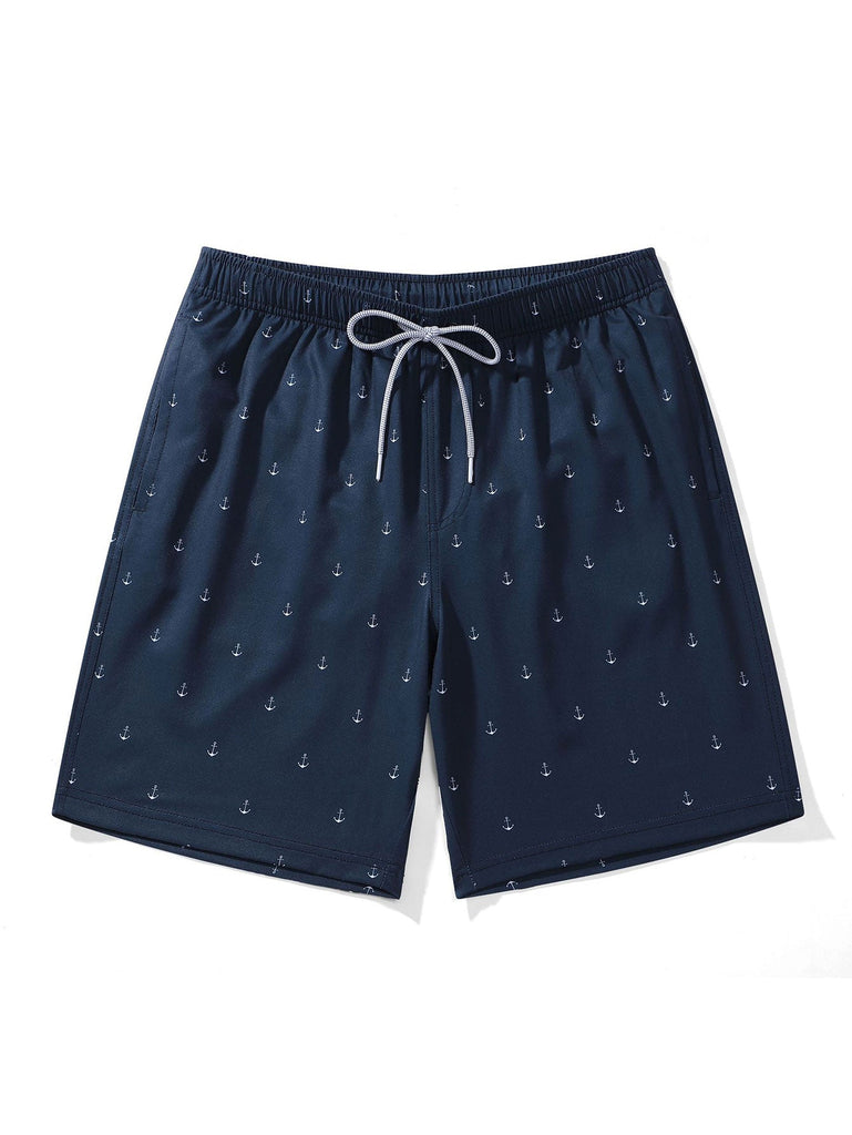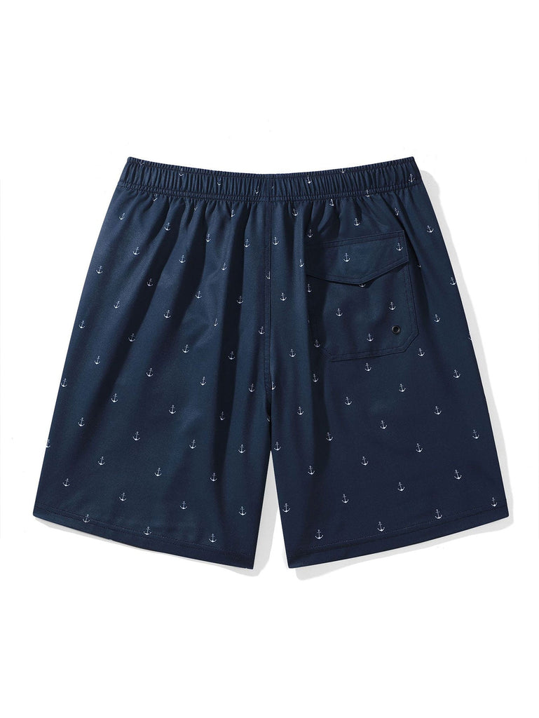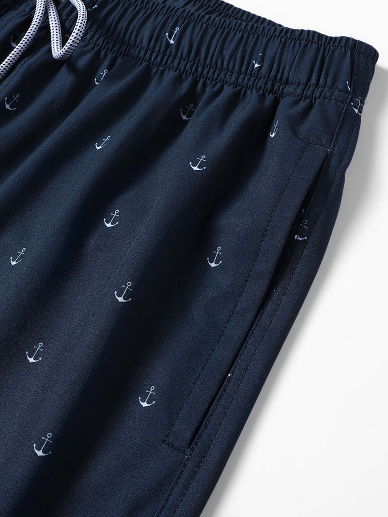 Regular Fit Anchor Print Cotton T-Shirt & Anchor Print Drawstring Swim Shorts
