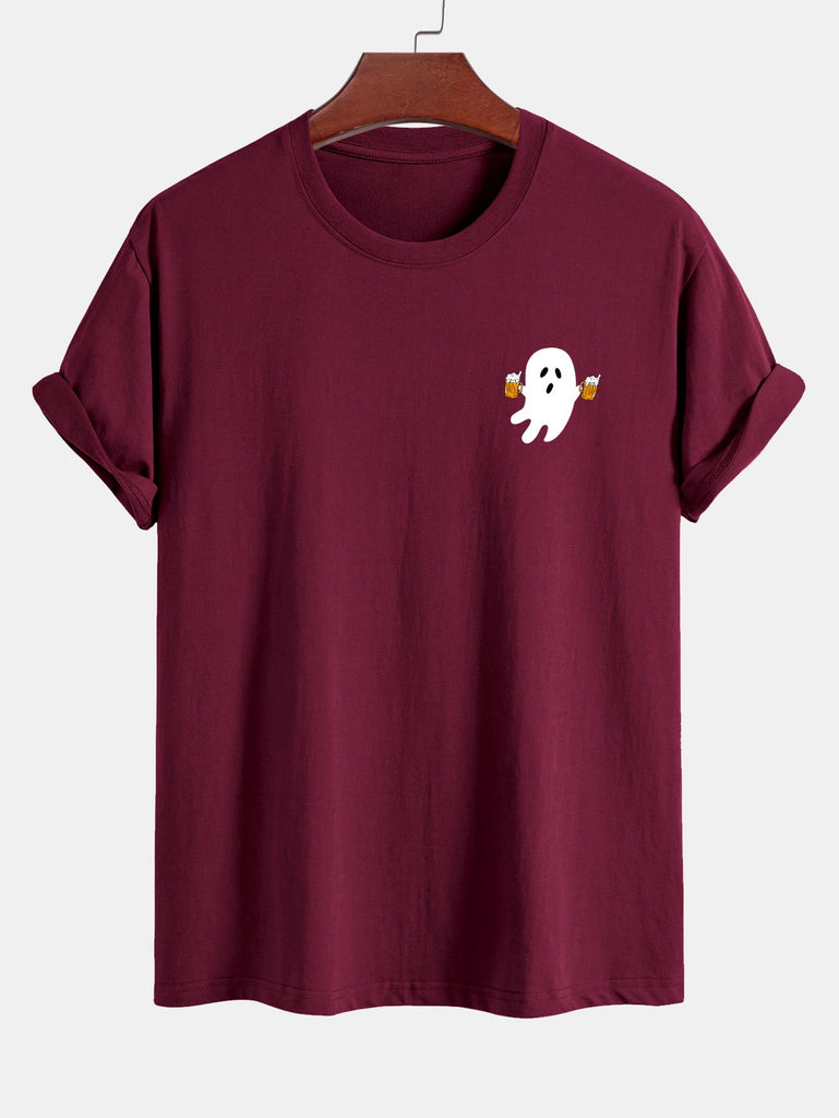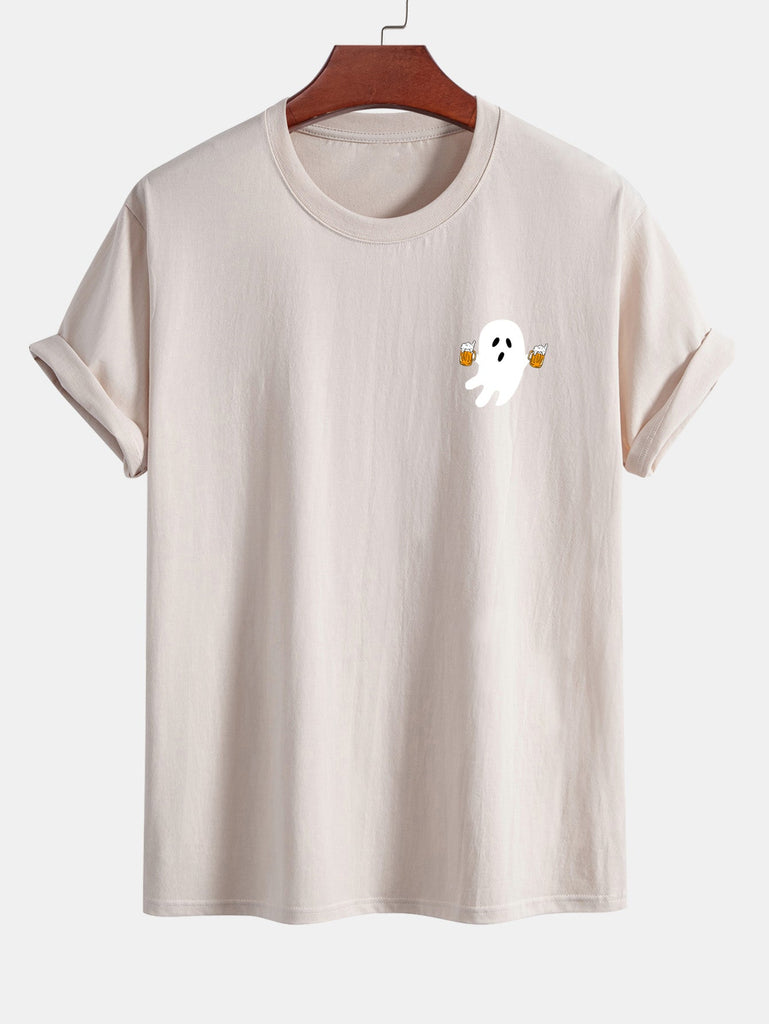 Regular Fit Beer Ghost Print Cotton T-Shirt