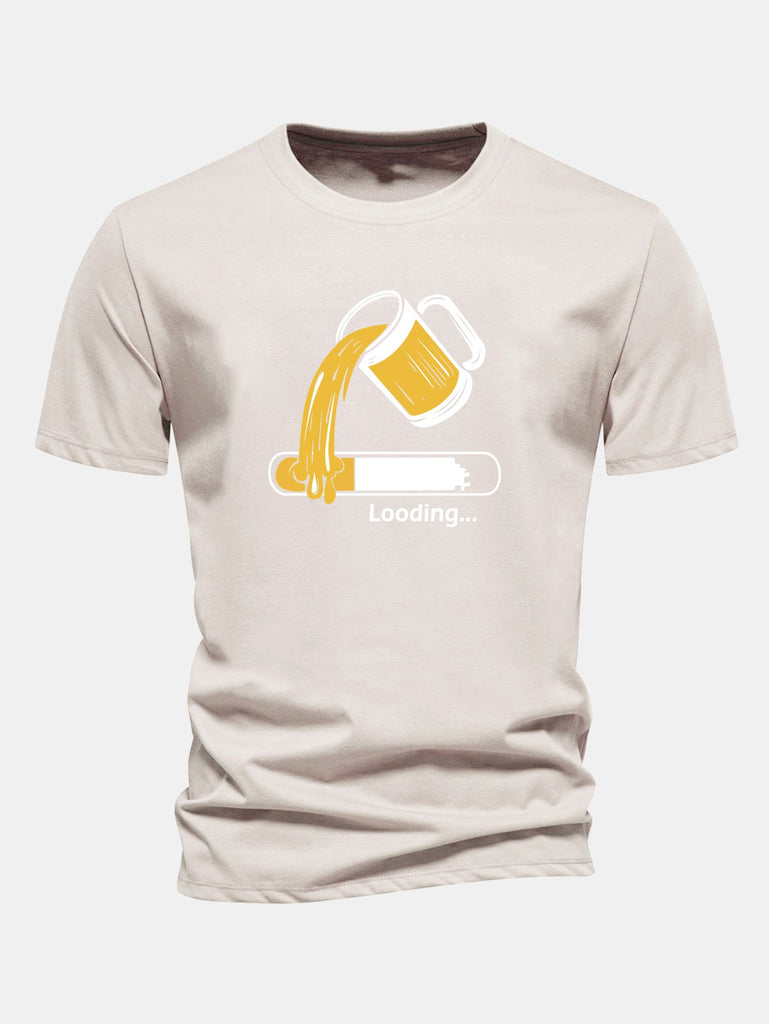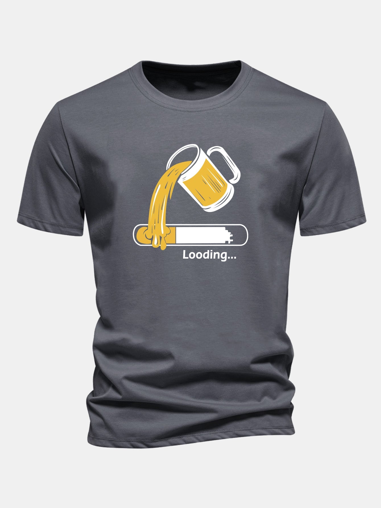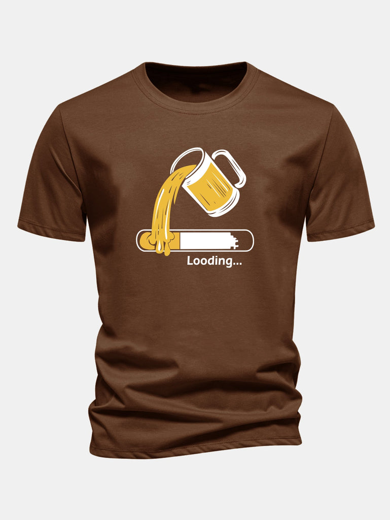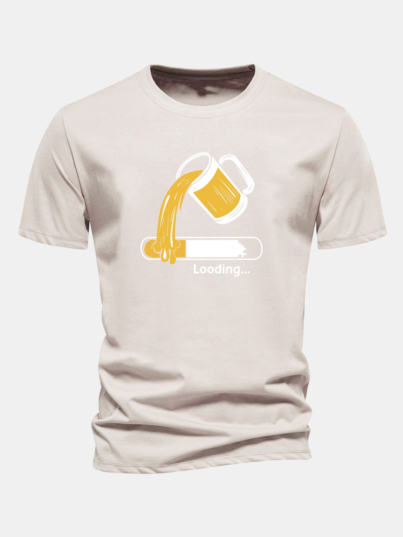 Regular Fit Beer Loading Print Cotton T-Shirt