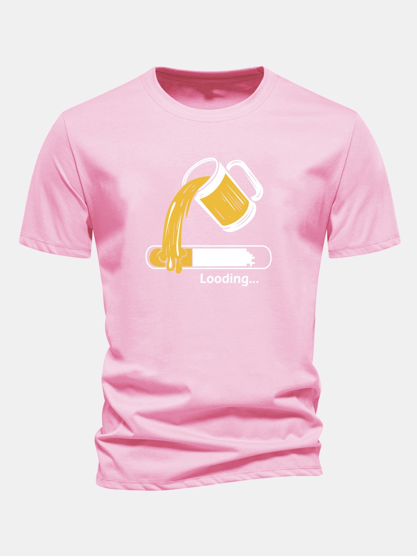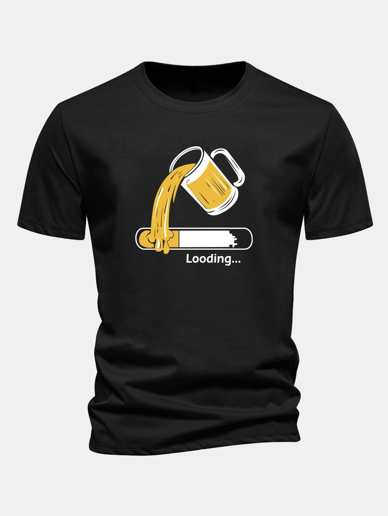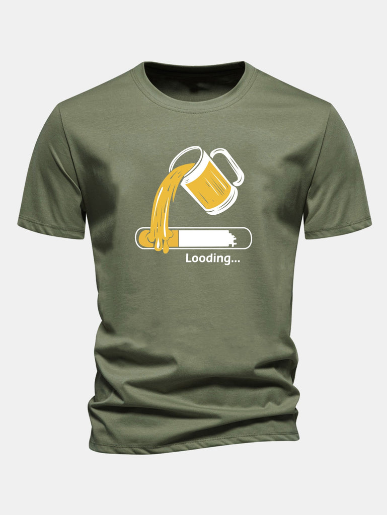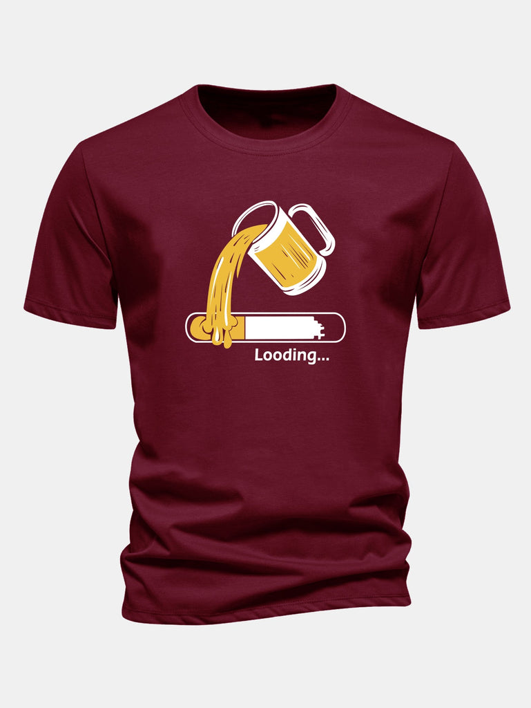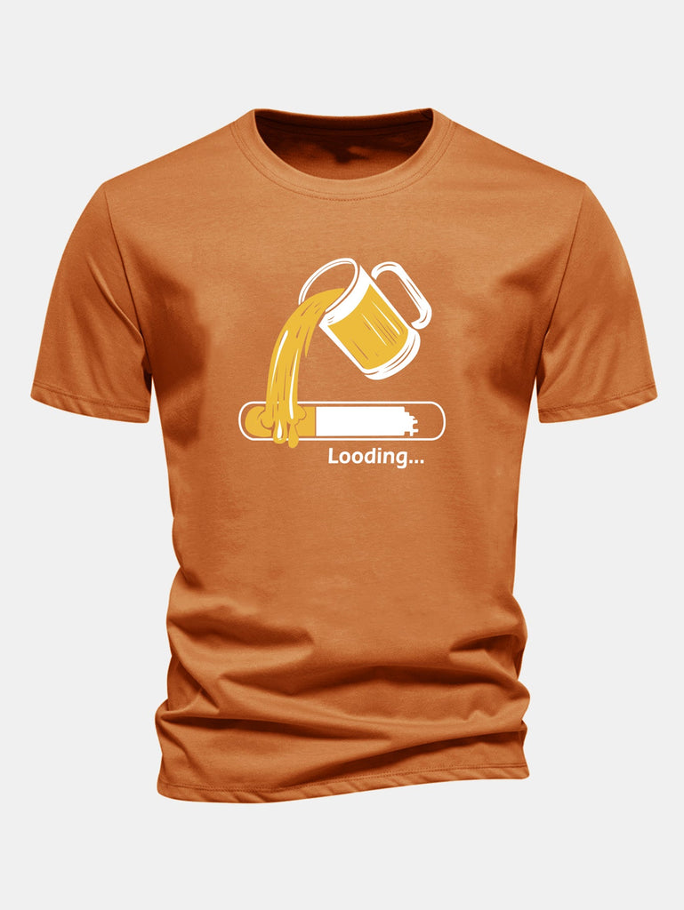 Regular Fit Beer Loading Print Cotton T-Shirt