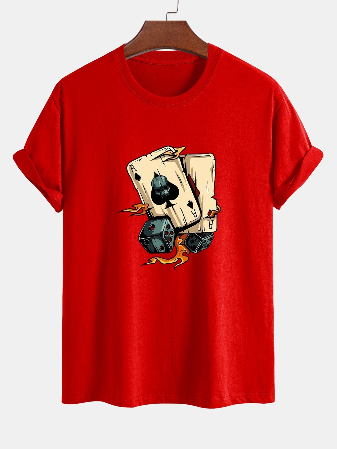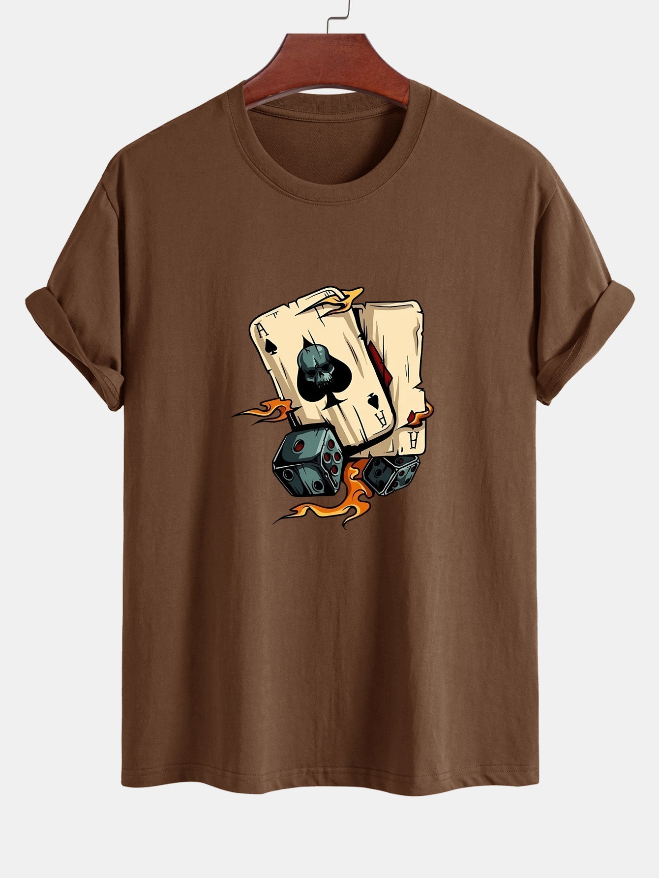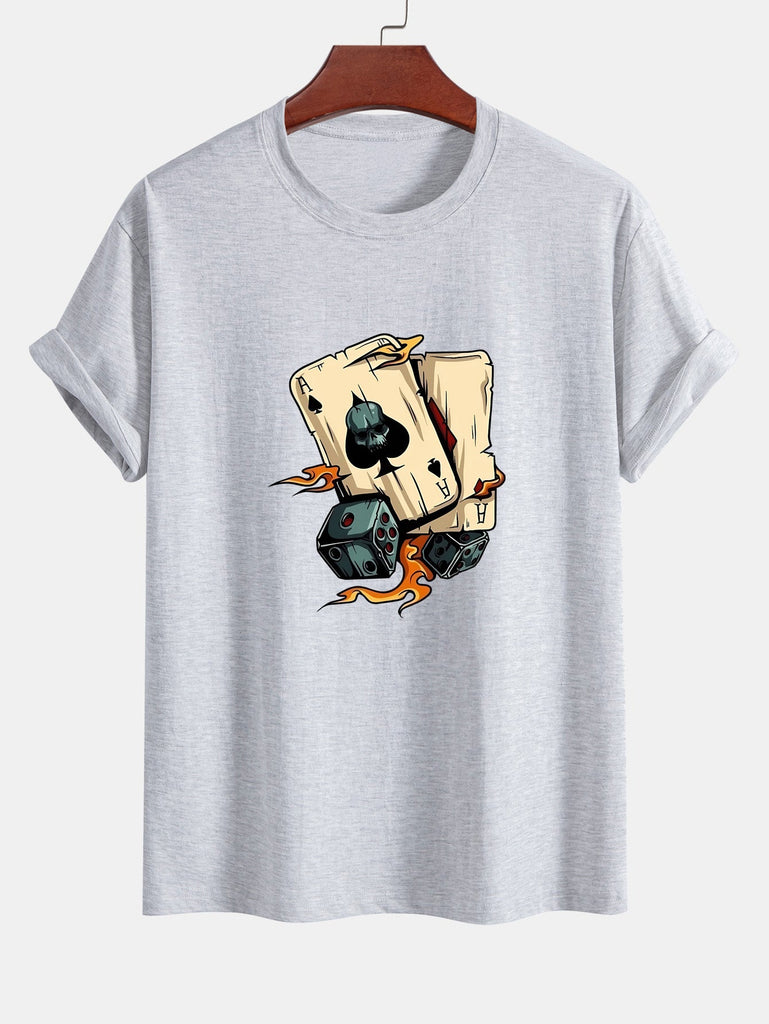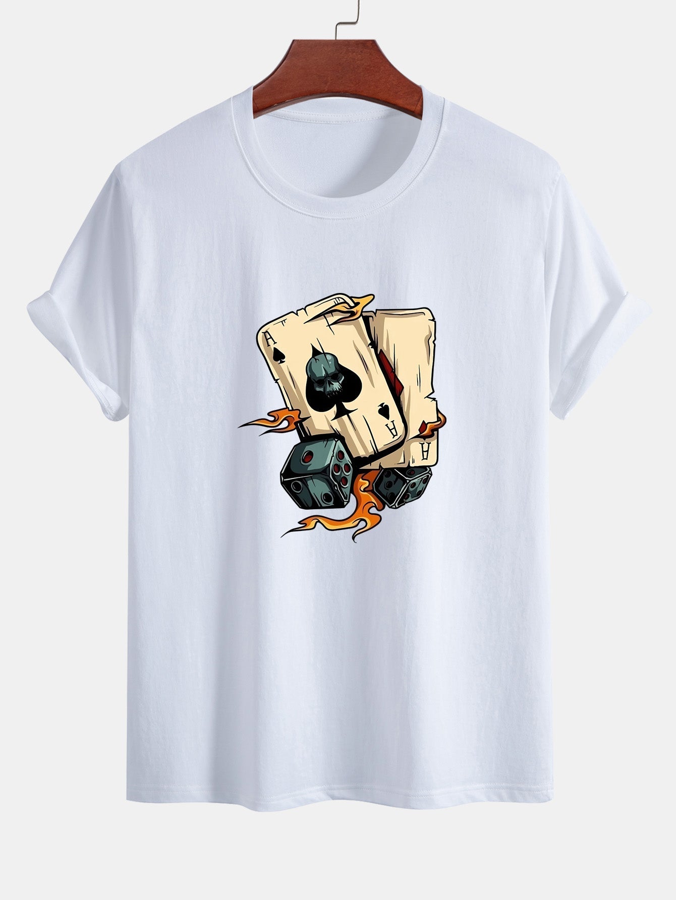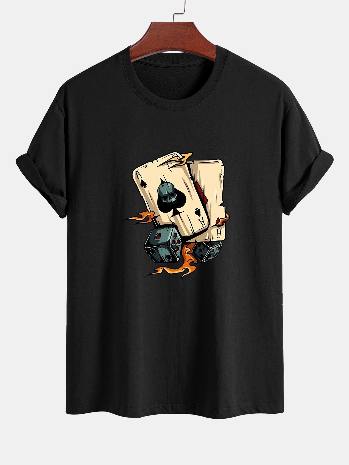 Regular Fit Dice Playing Cards Print Cotton T-Shirt