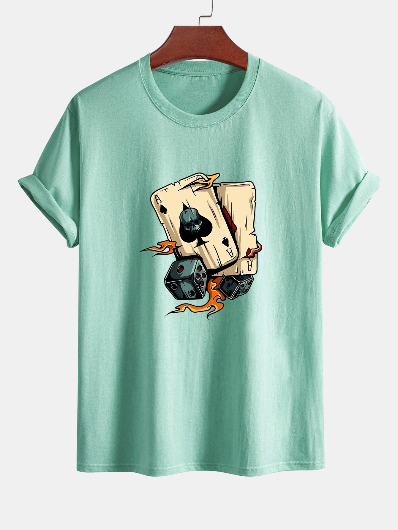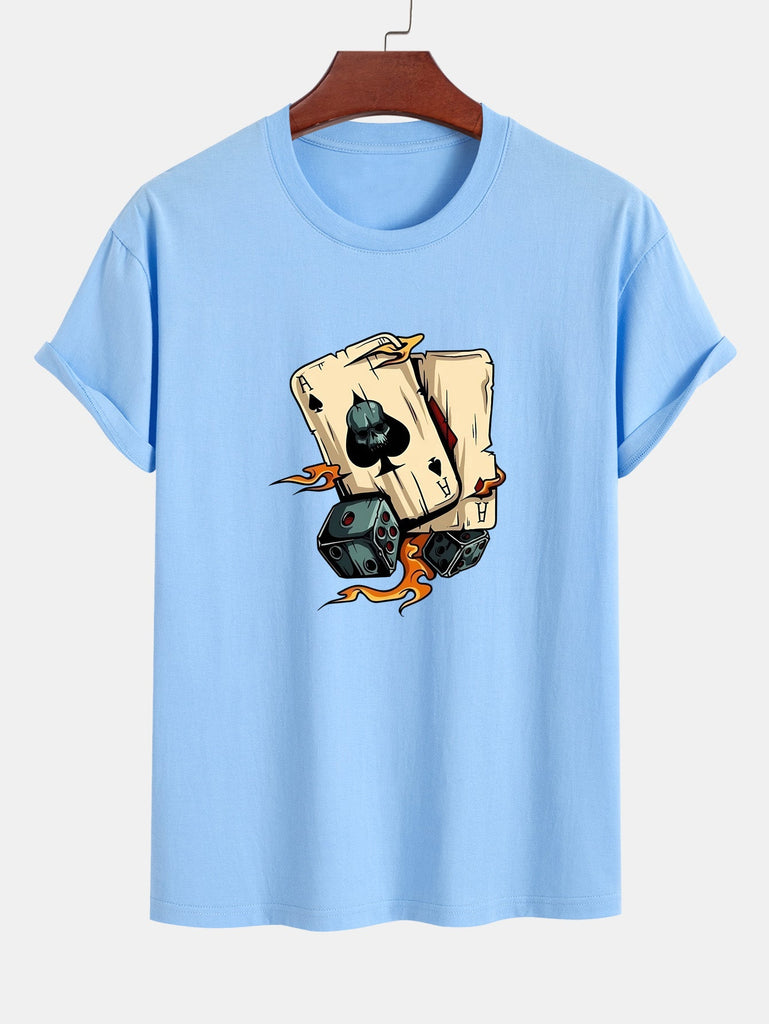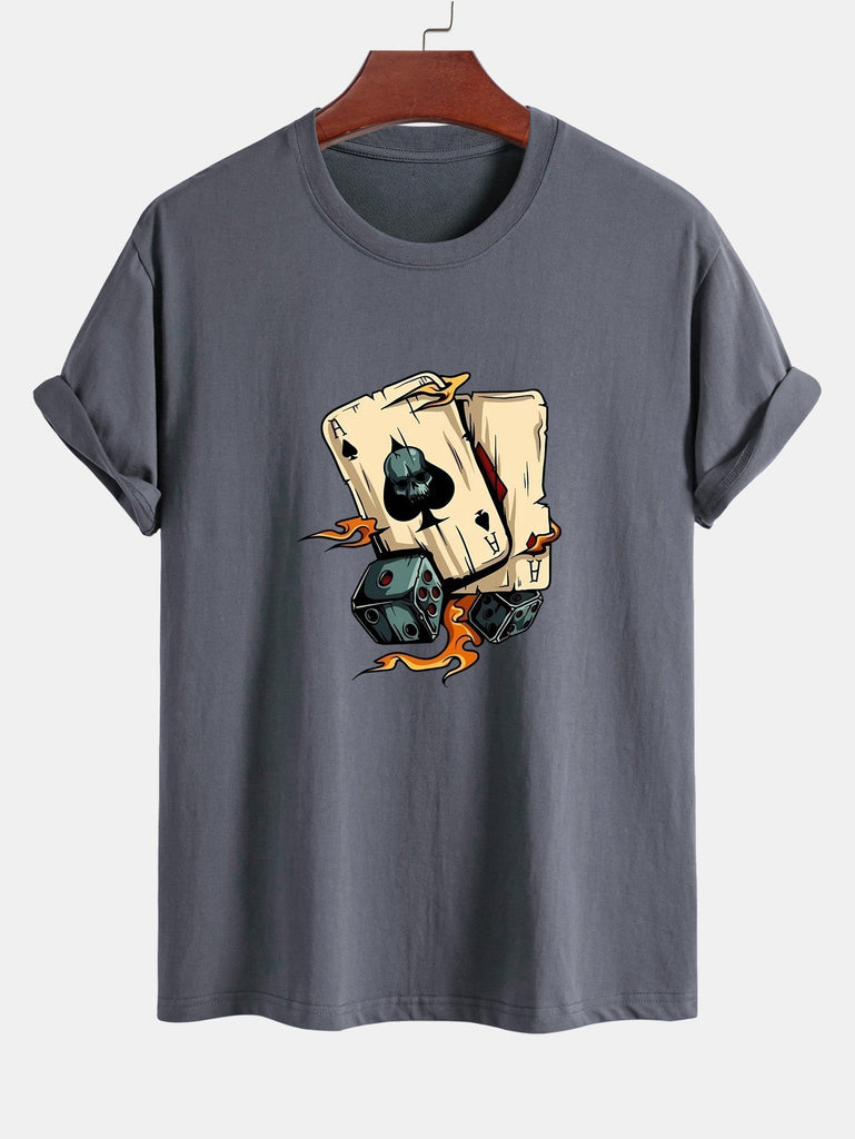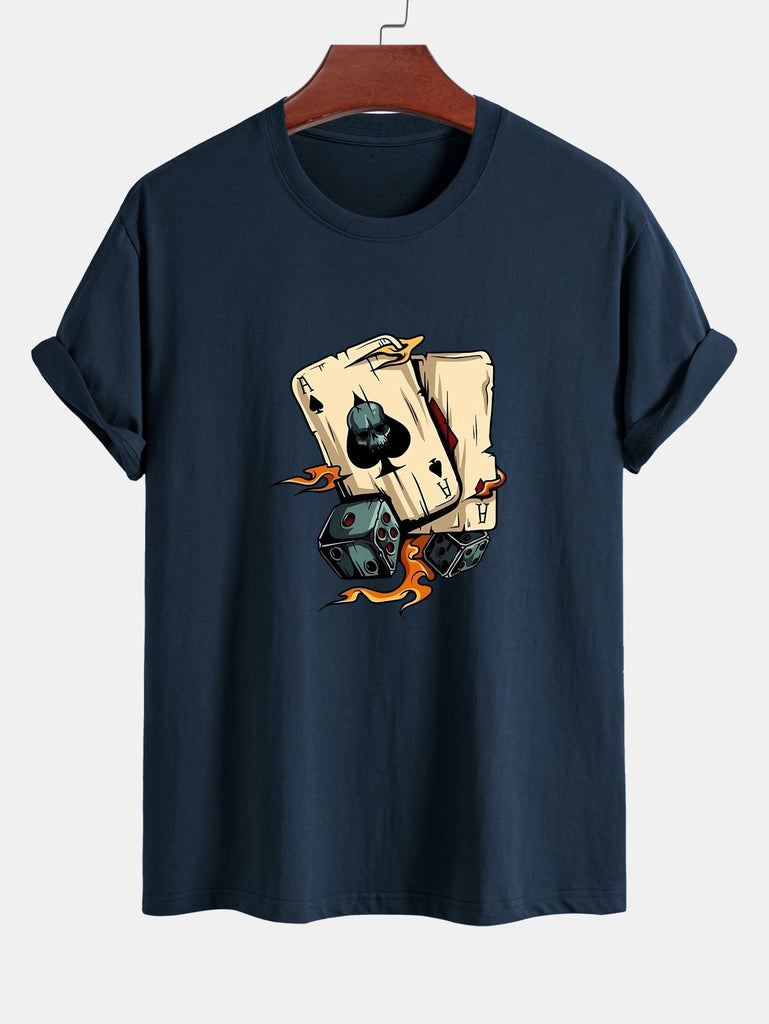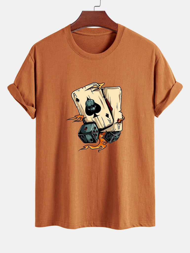 Regular Fit Dice Playing Cards Print Cotton T-Shirt