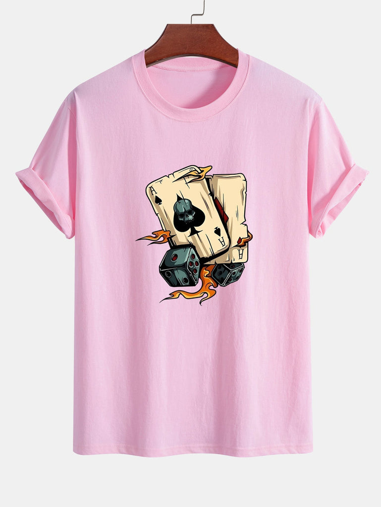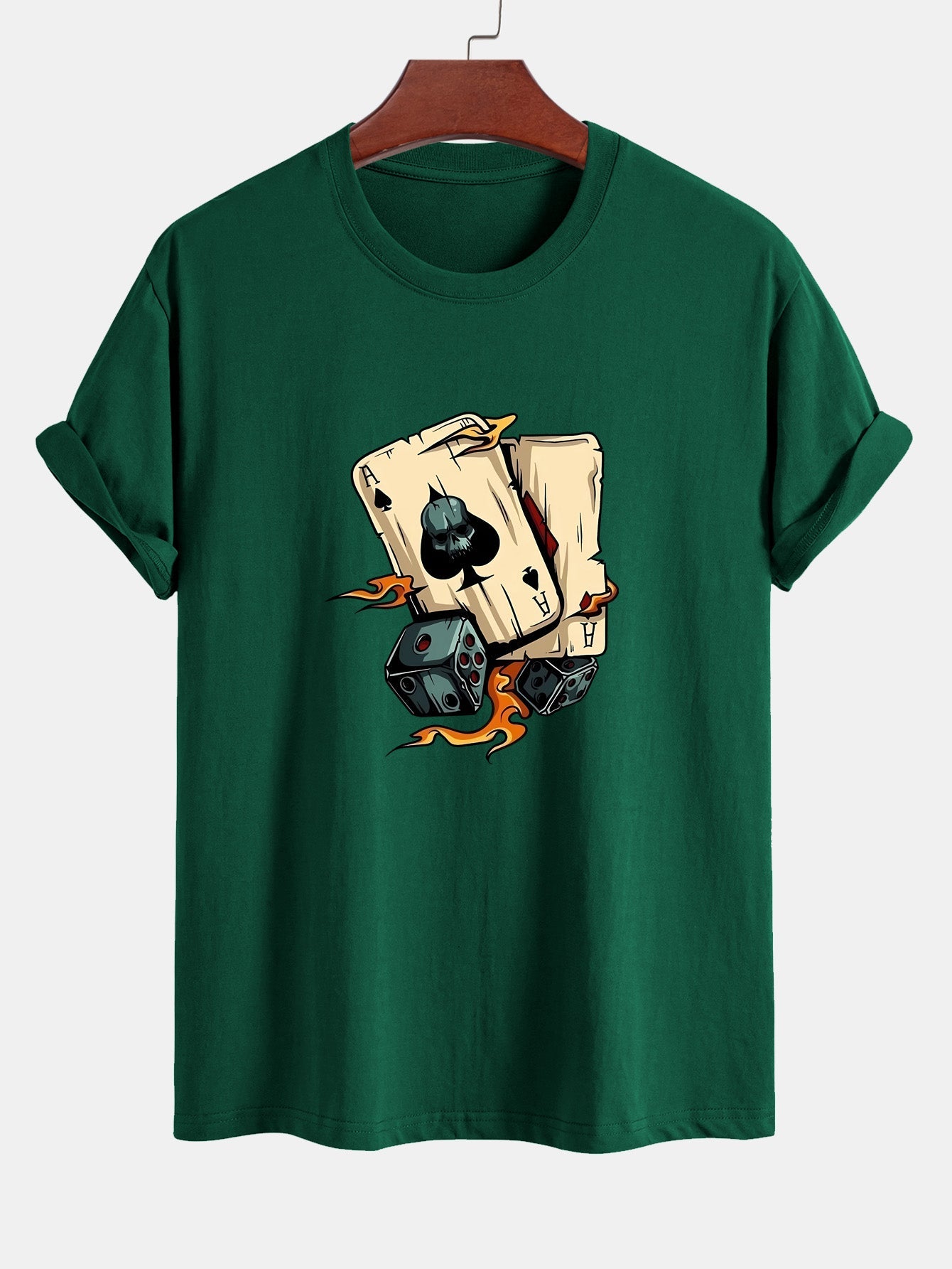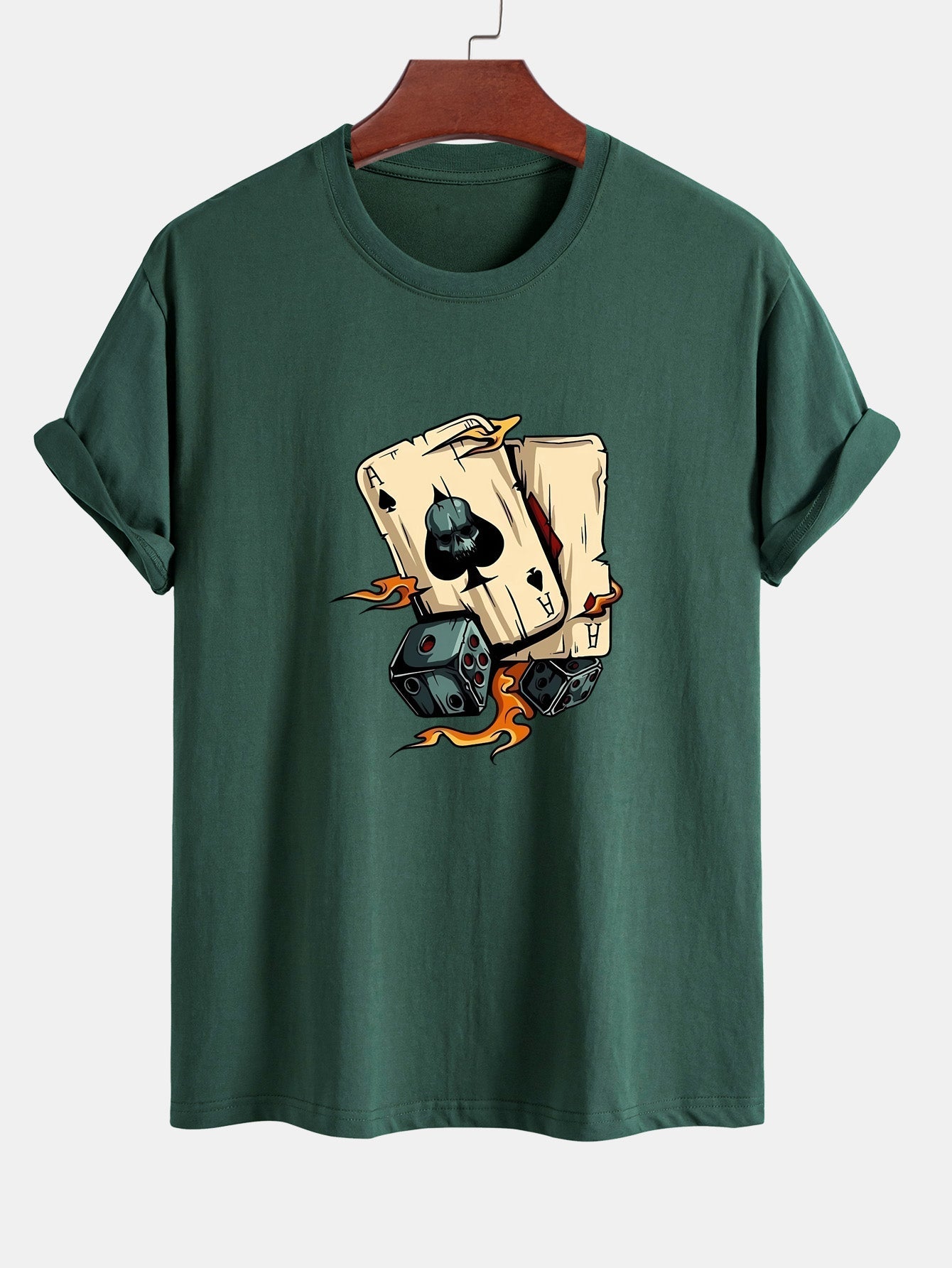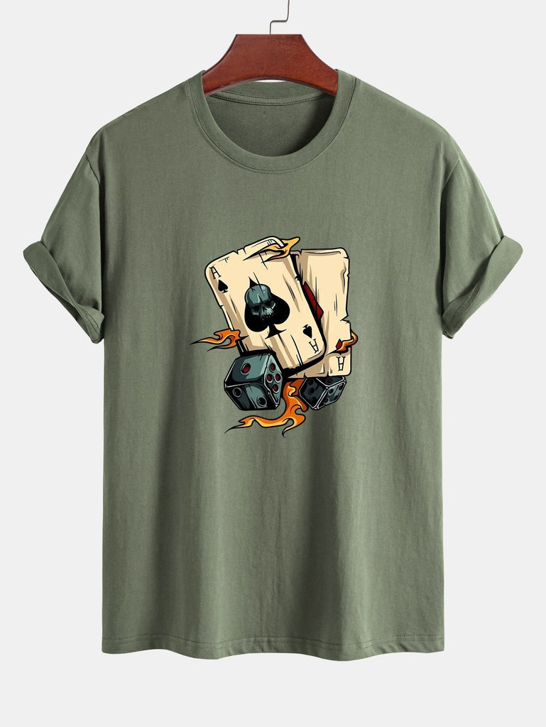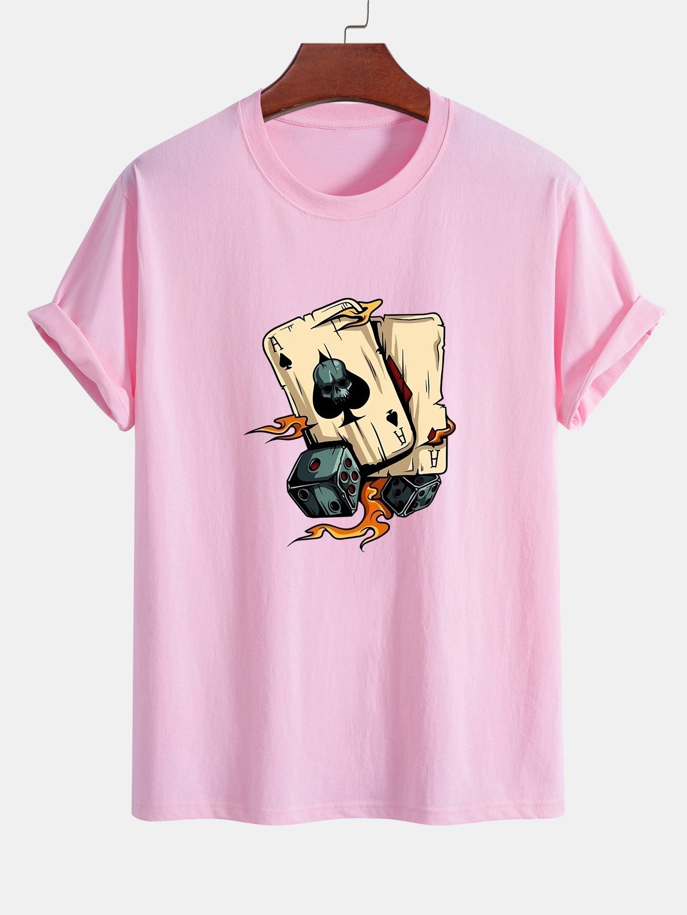 Regular Fit Dice Playing Cards Print Cotton T-Shirt