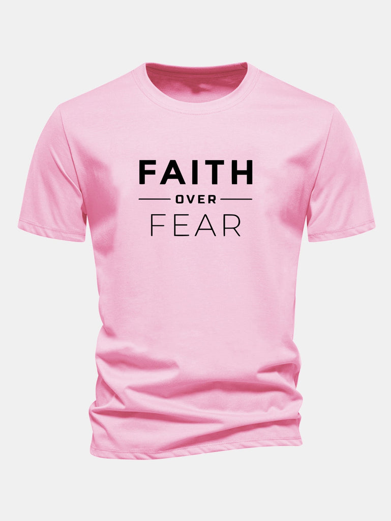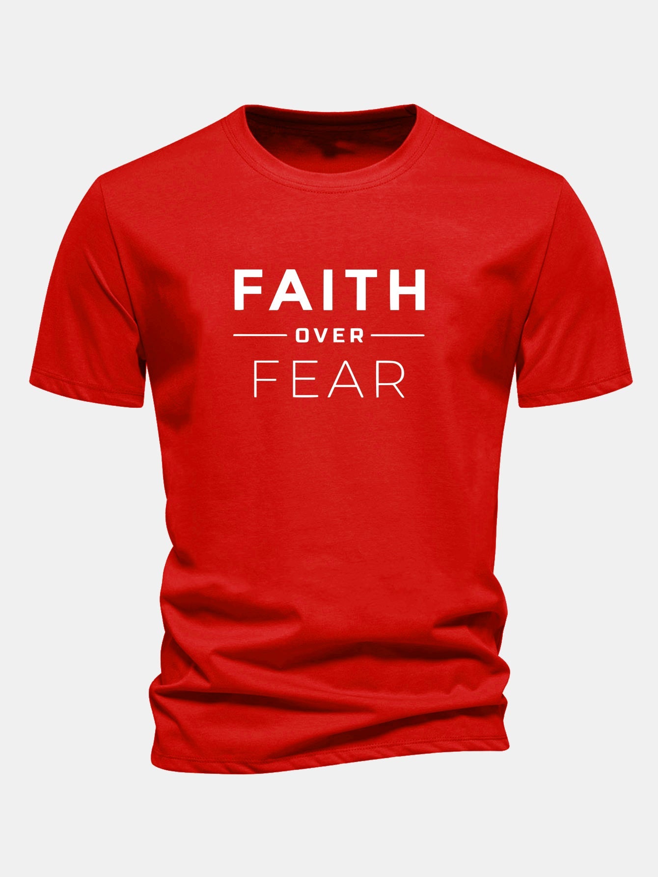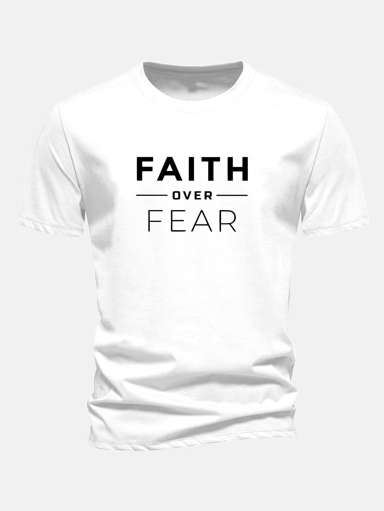 Regular Fit Faith Over Fear Print Cotton T-Shirt