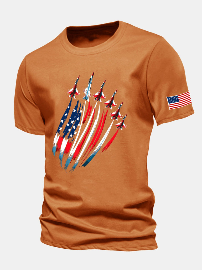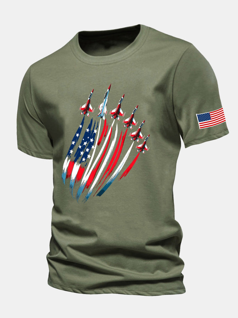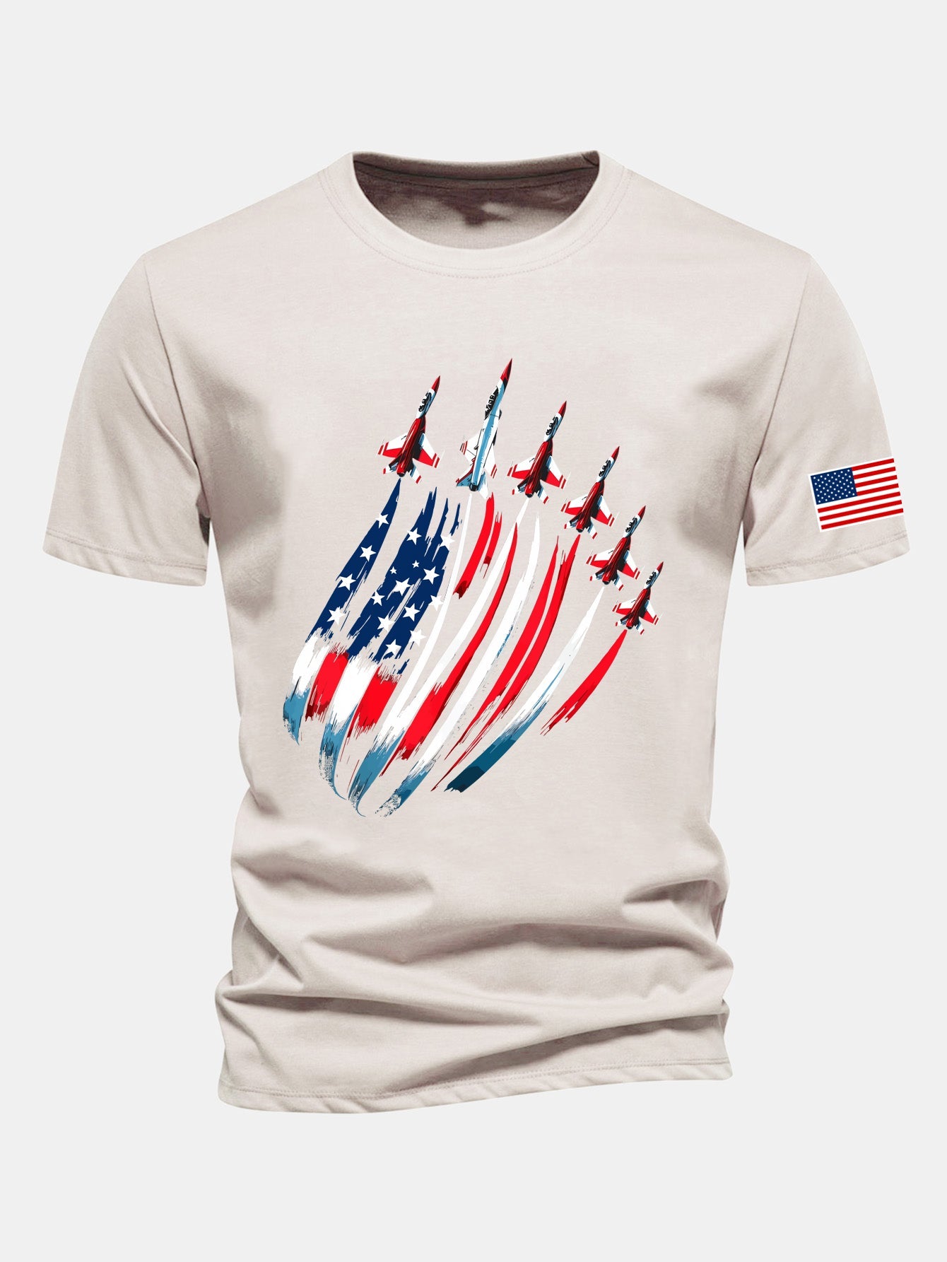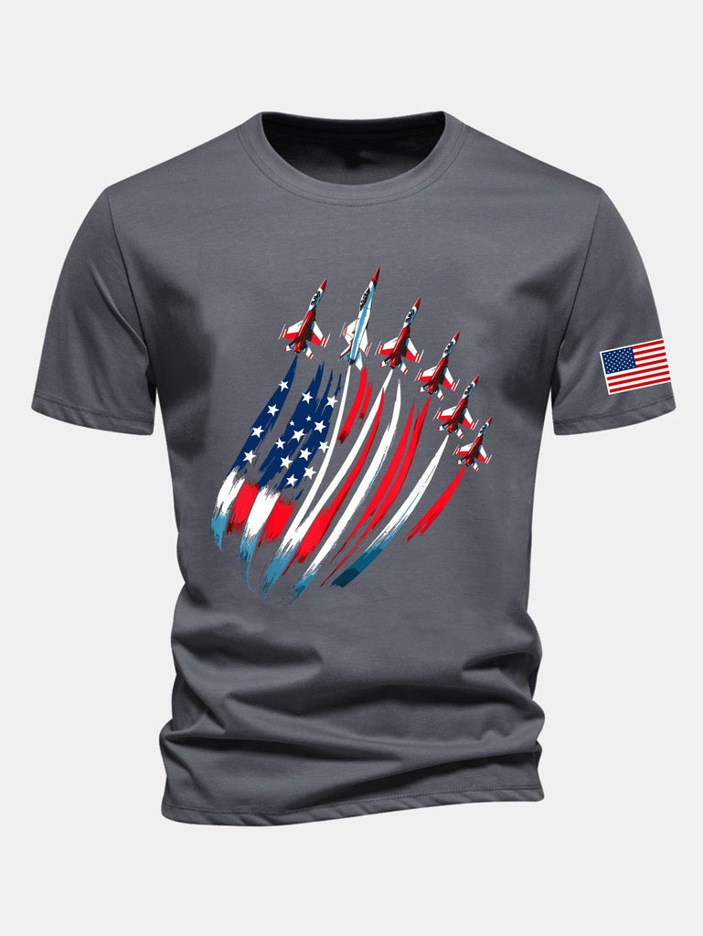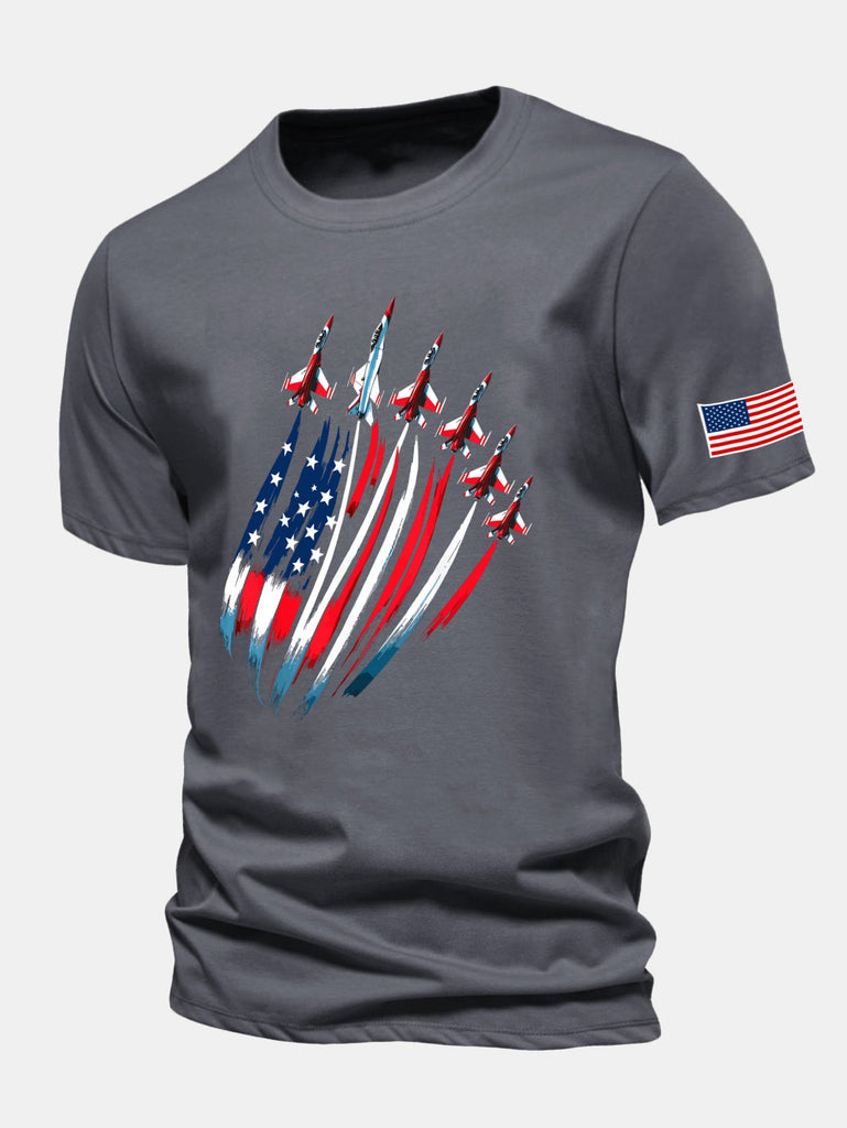 Regular Fit Fighter Jets USA Flag Print Cotton T-Shirt