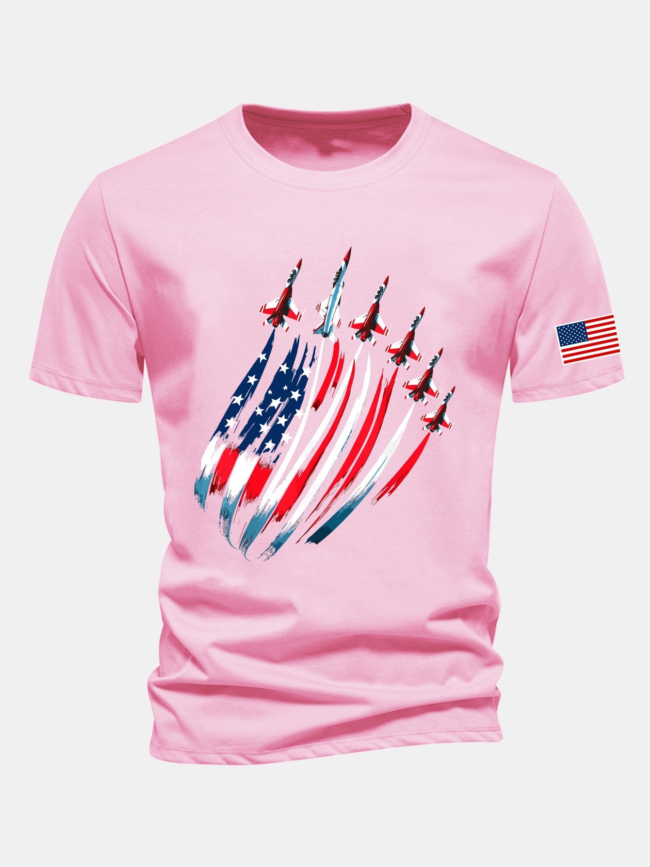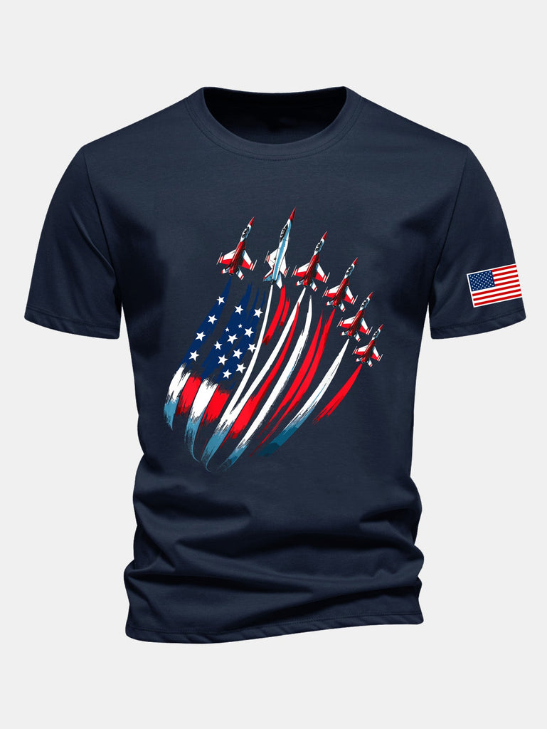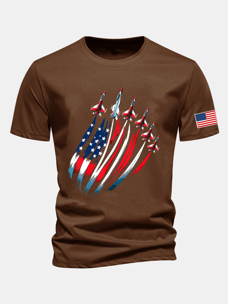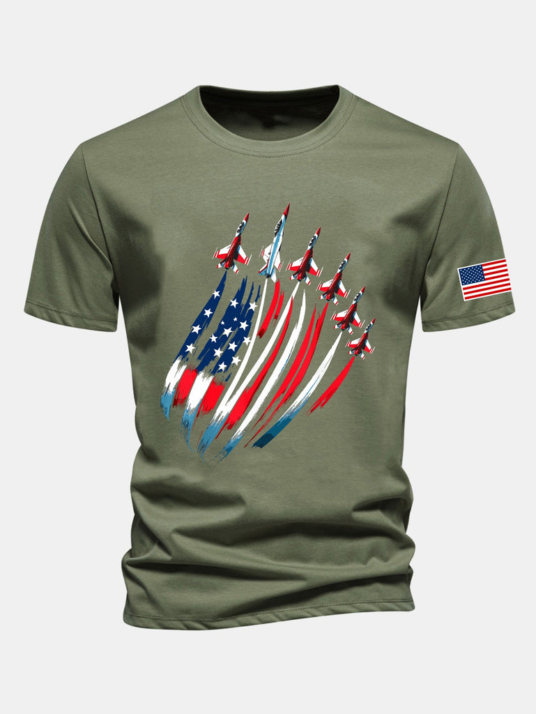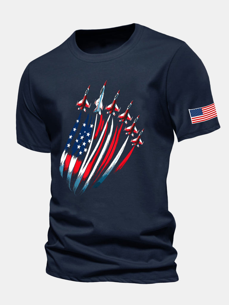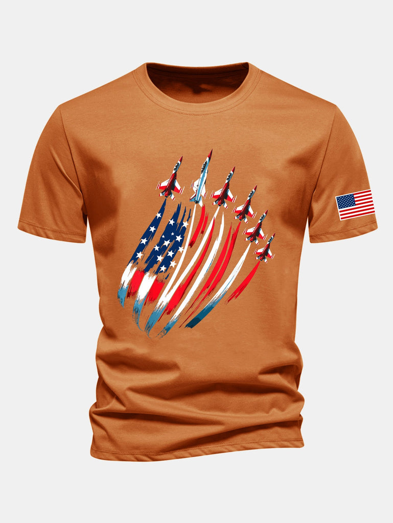 Regular Fit Fighter Jets USA Flag Print Cotton T-Shirt