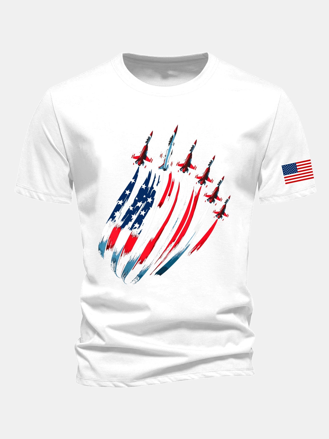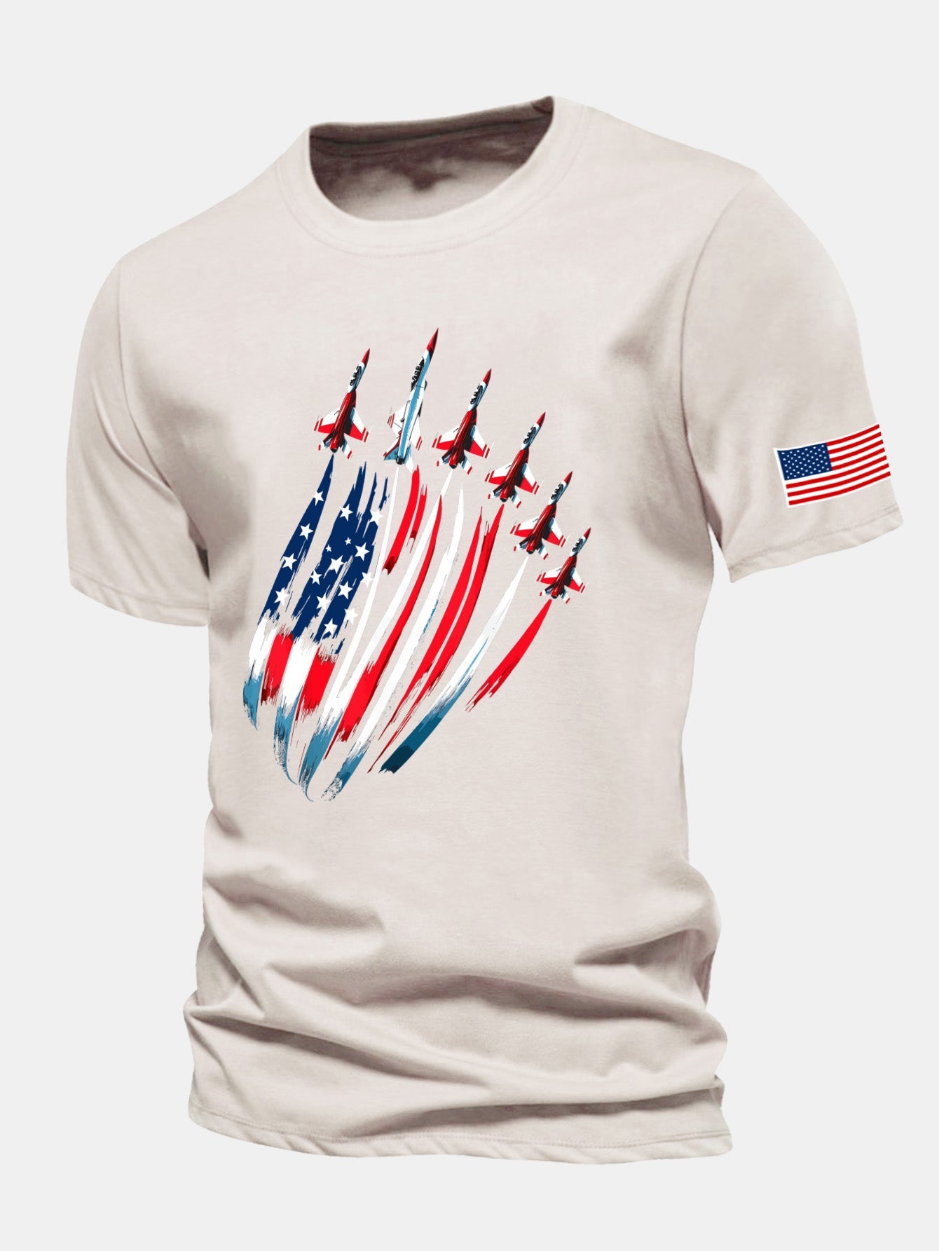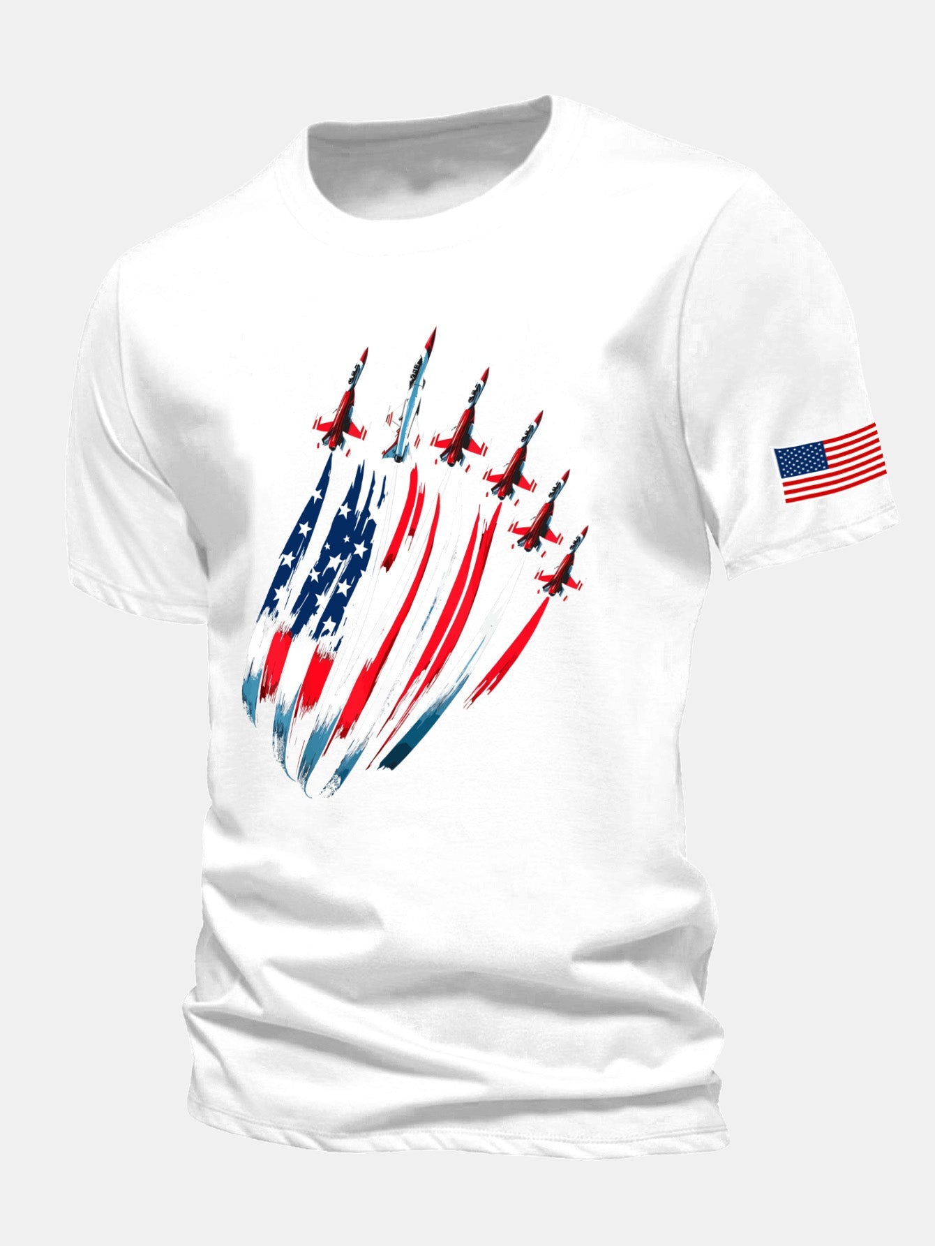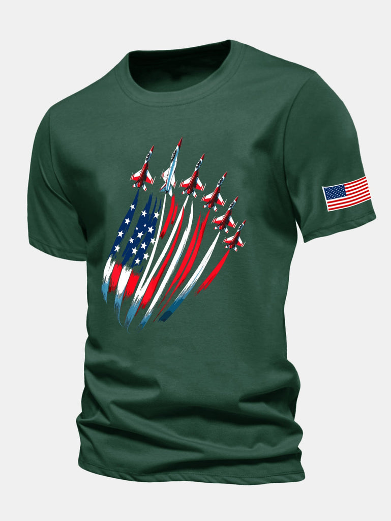 Regular Fit Fighter Jets USA Flag Print Cotton T-Shirt