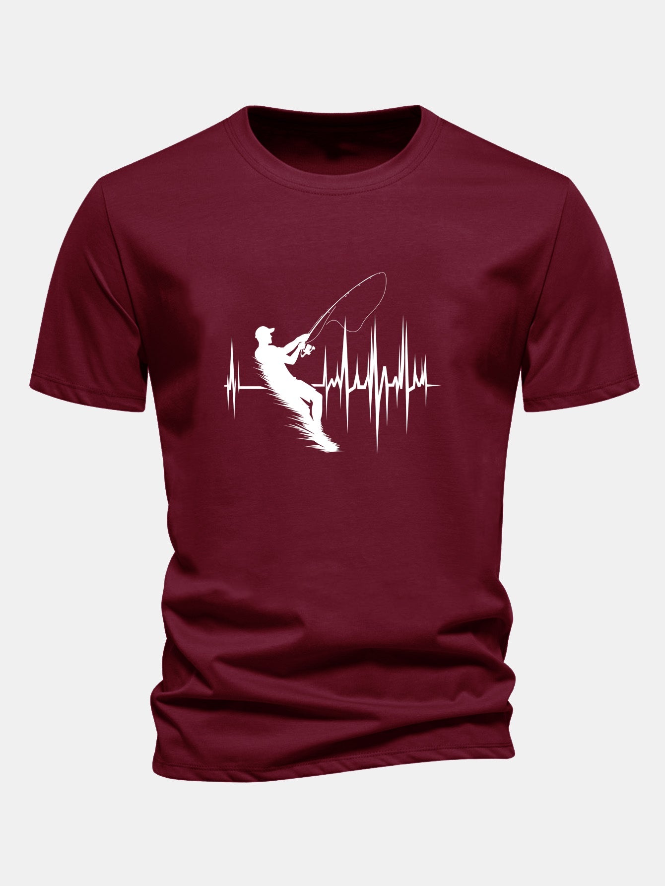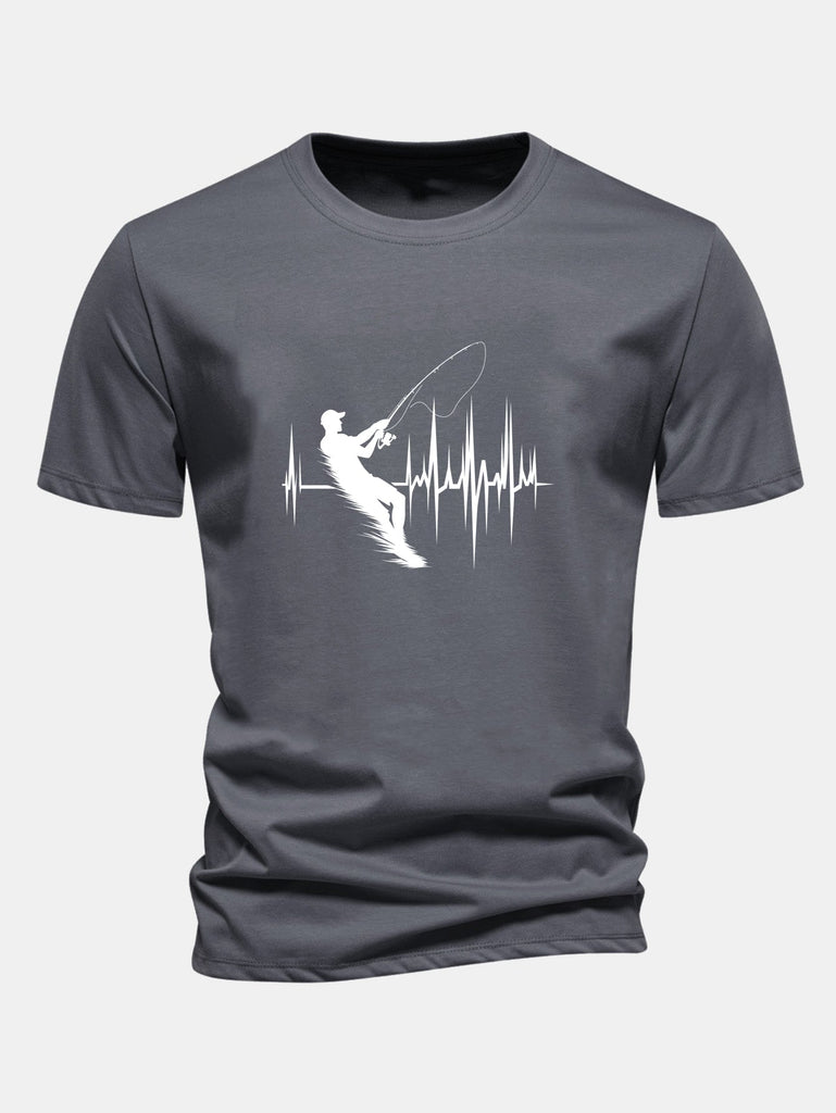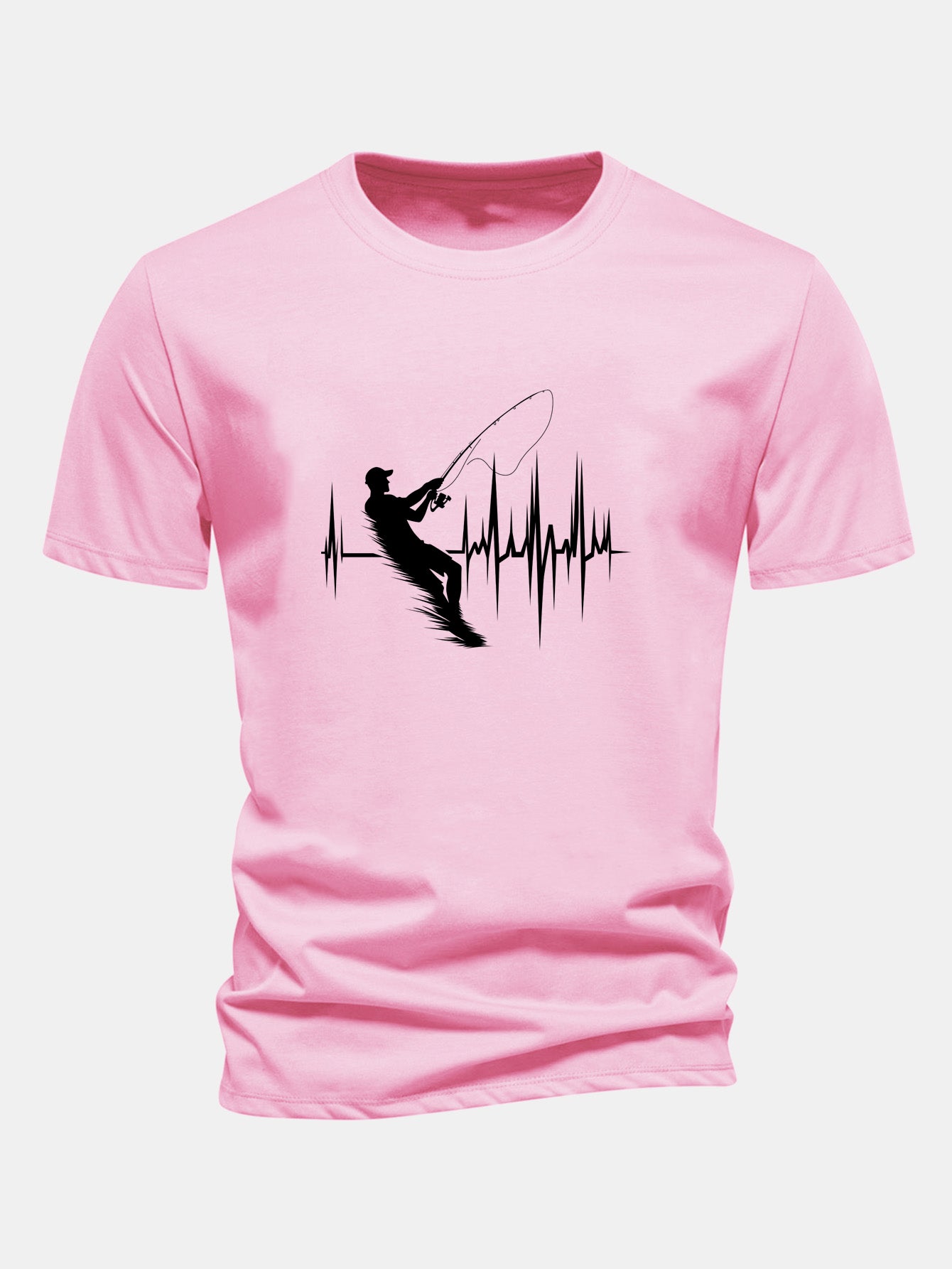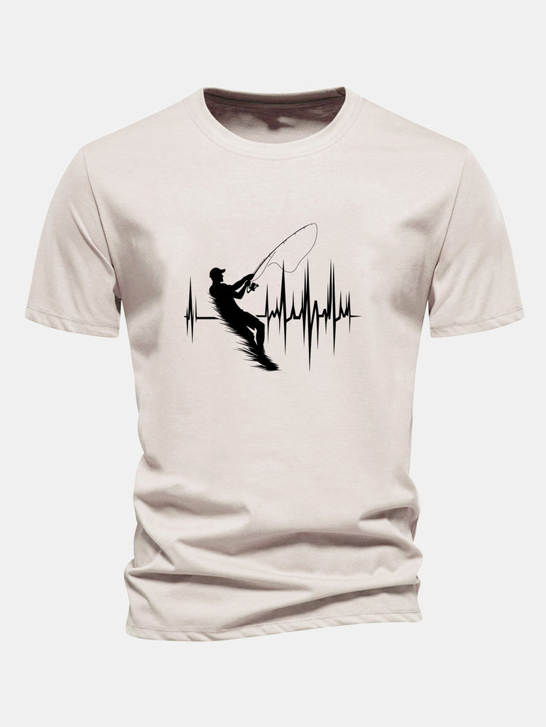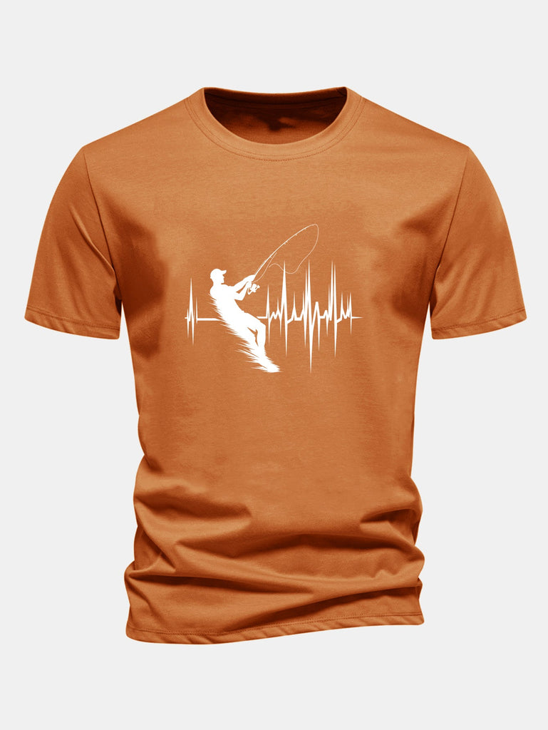 The fishing man print T-shirt is perfect for anglers who'd rather be on the water. Featuring a relaxed fit and a classic fishing scene graphic, it¡¯s a must-have for weekend getaways, boat days, or just reeling in compliments.