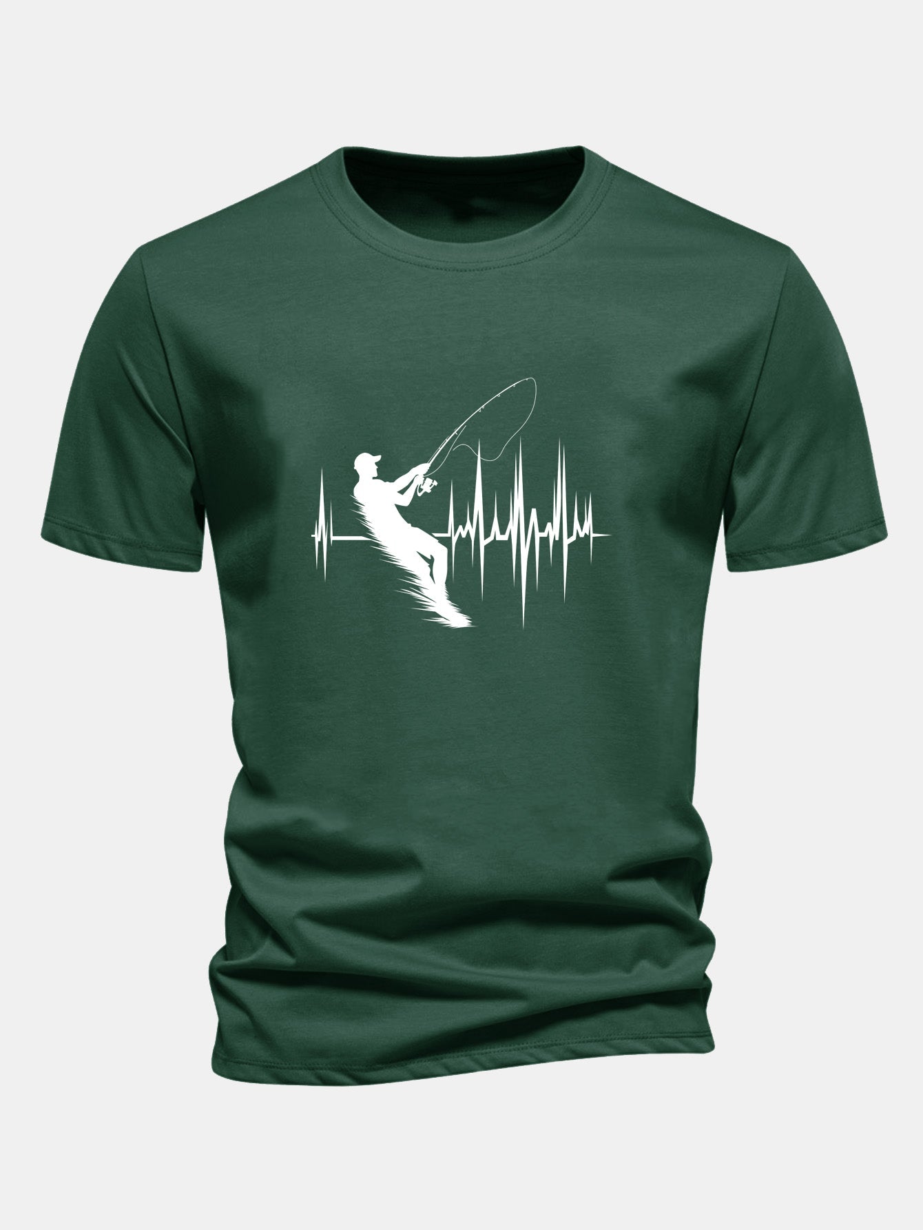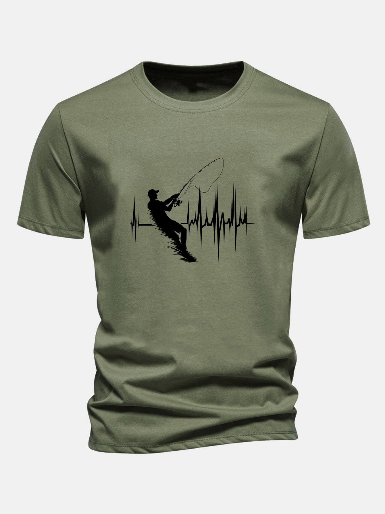Regular Fit Fishing Man Print Cotton T-Shirt