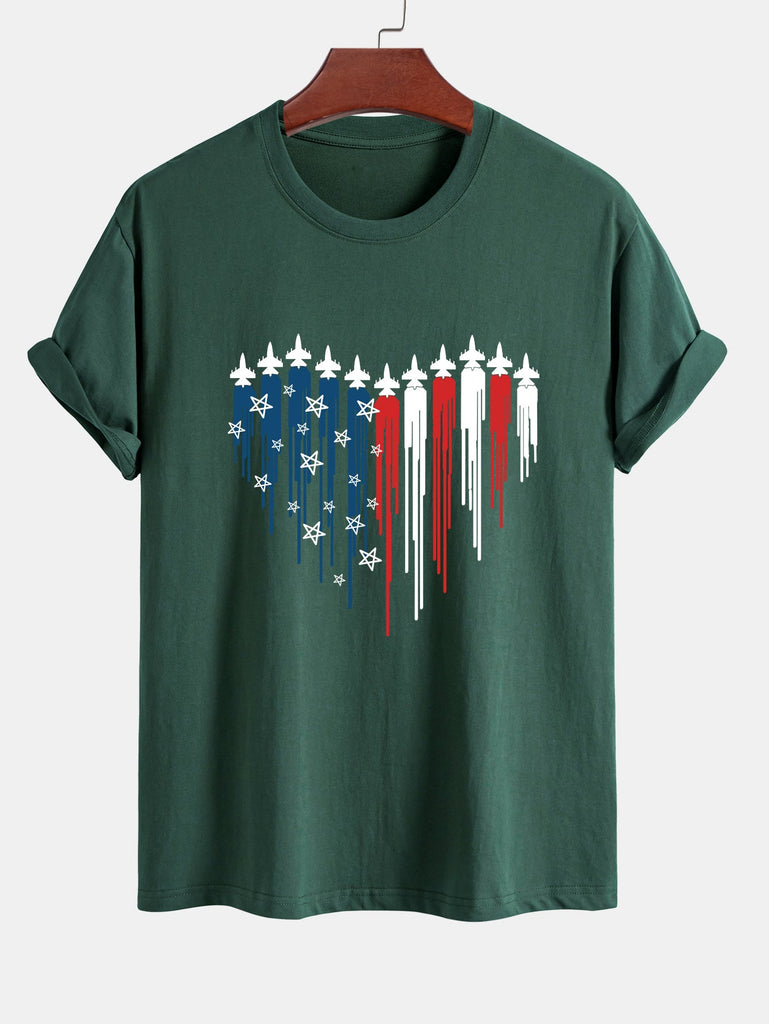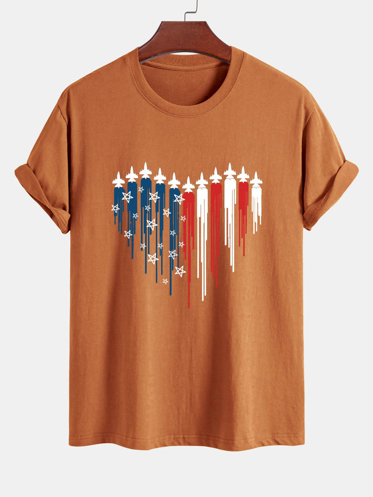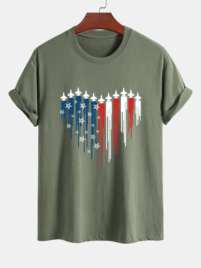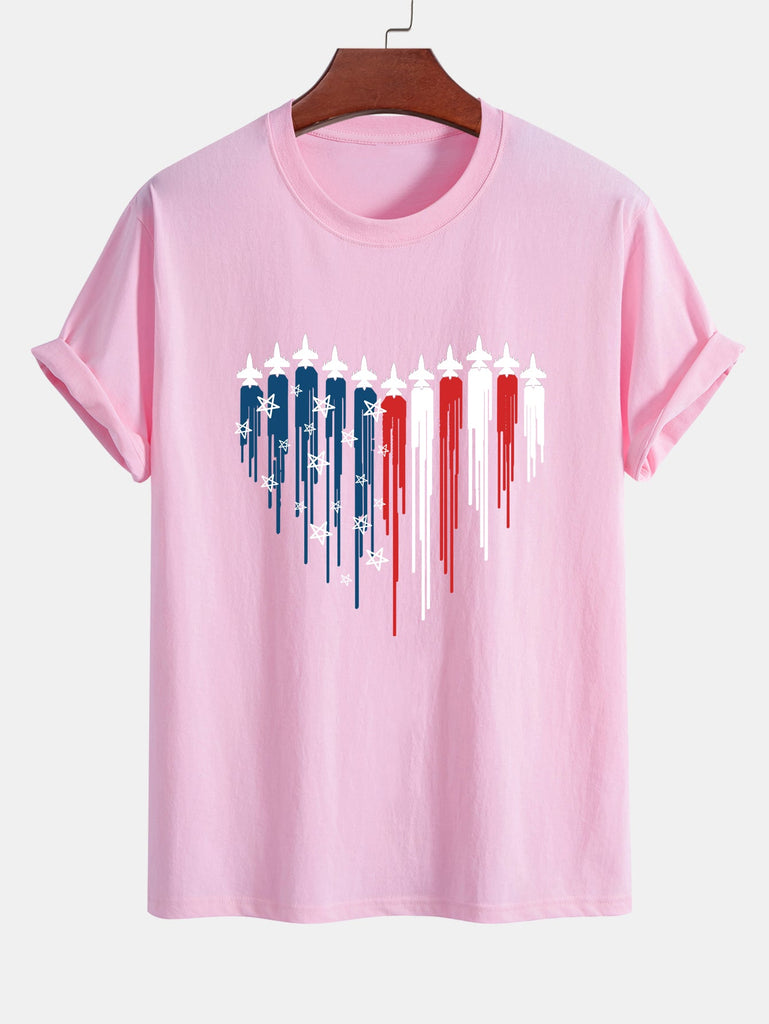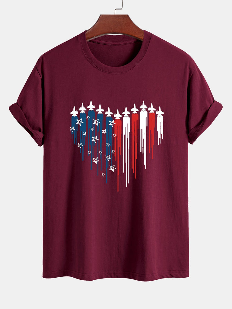 Regular Fit Heart Shaped Fighter Jets USA Flag Print Cotton T-Shirt