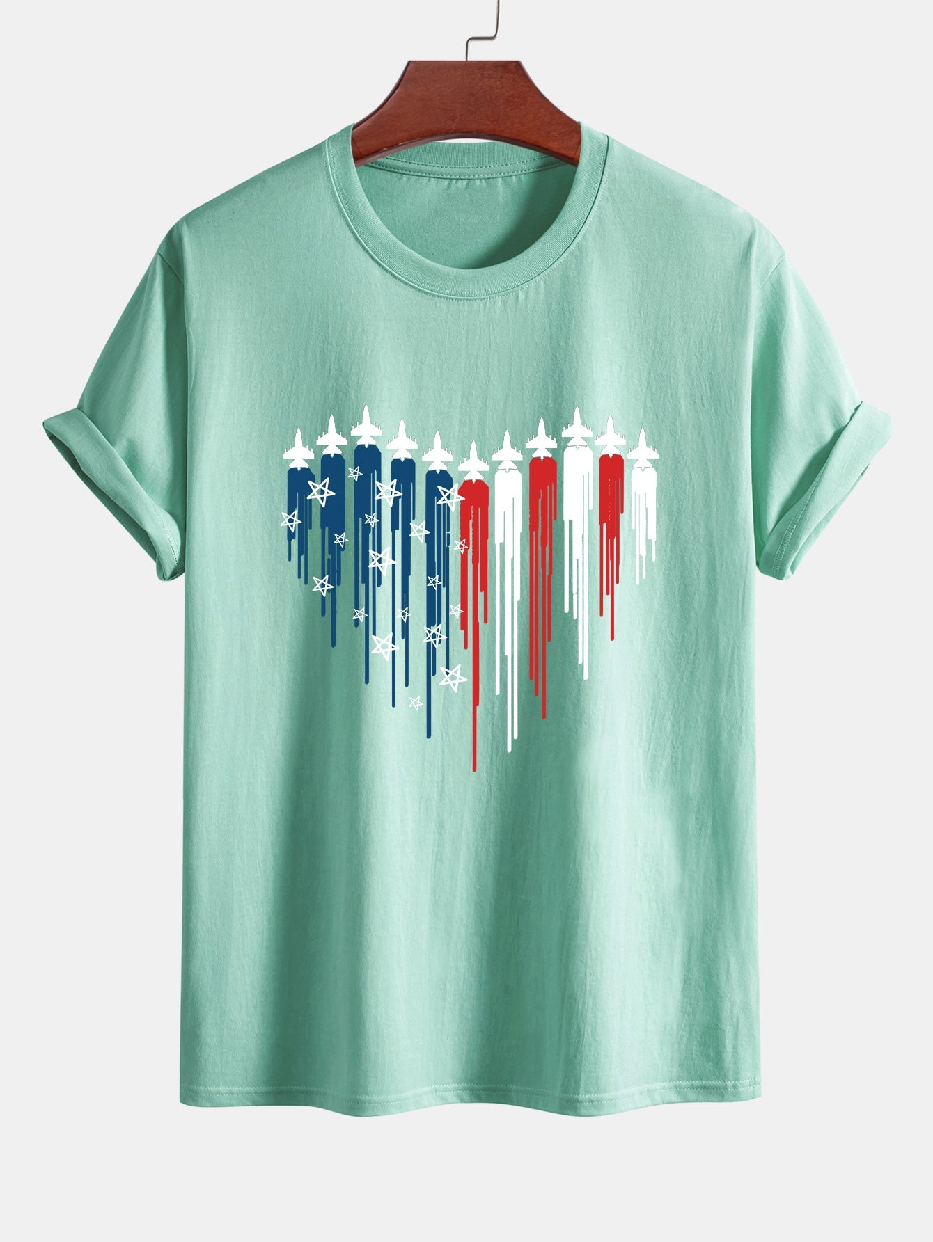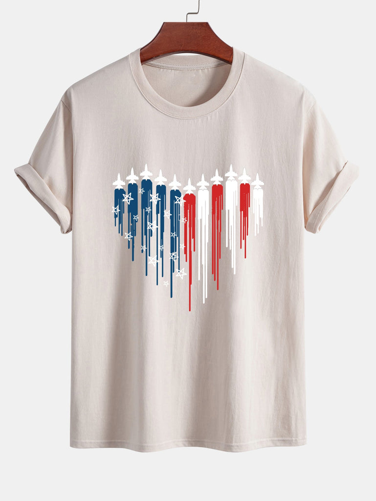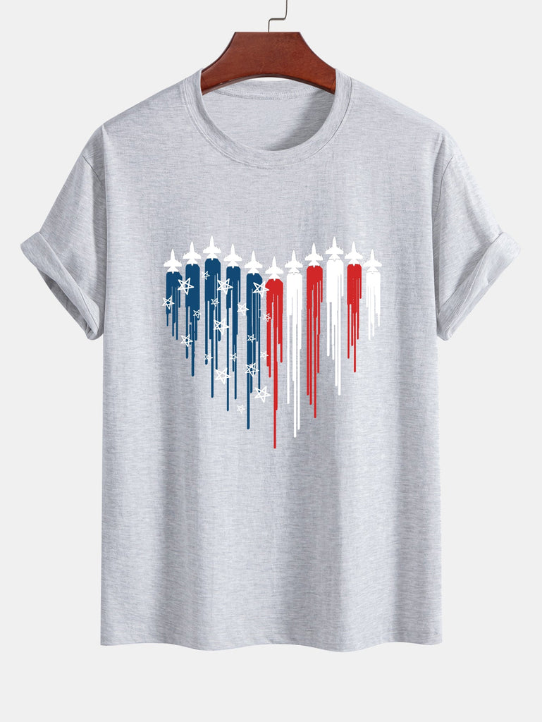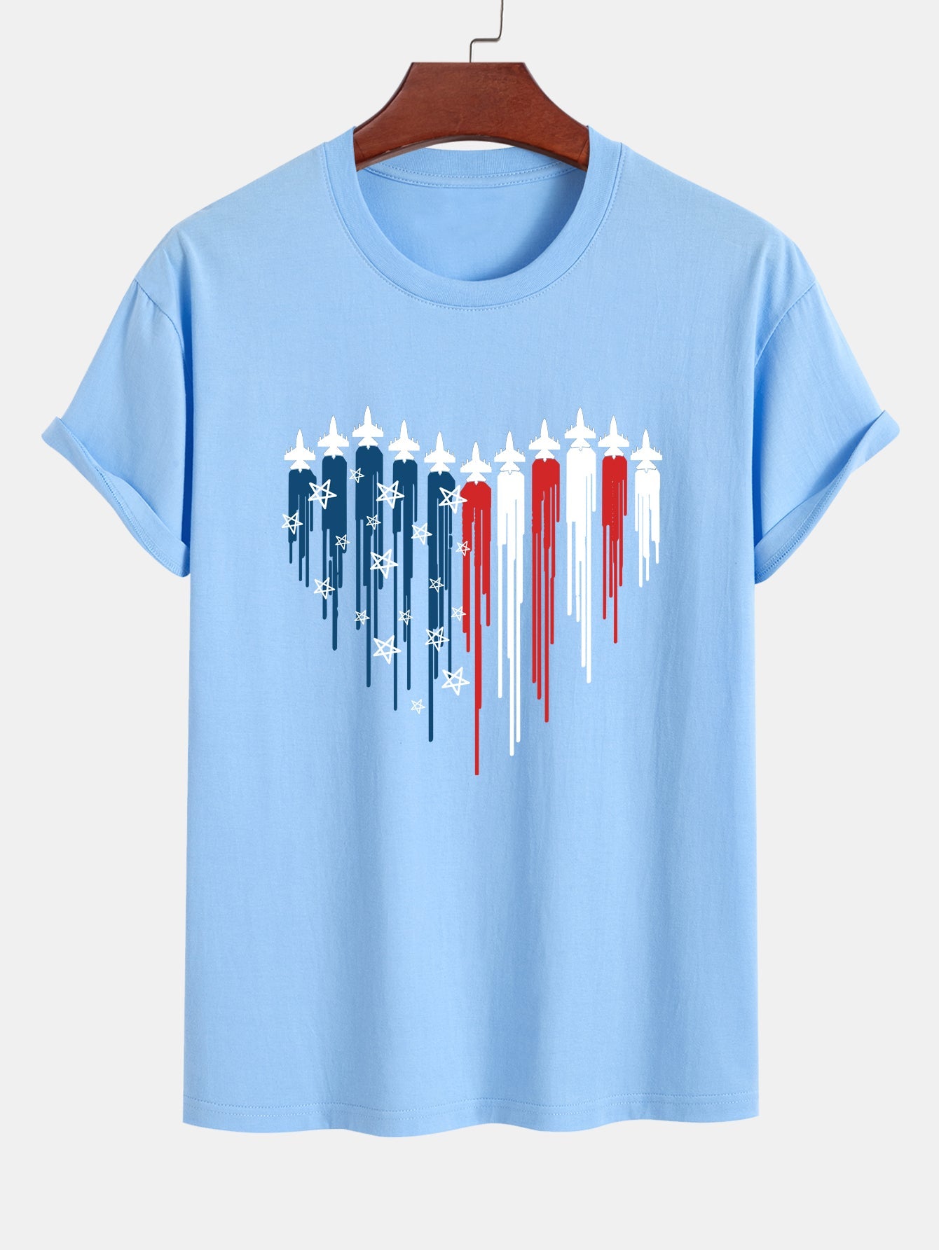Regular Fit Heart Shaped Fighter Jets USA Flag Print Cotton T-Shirt
