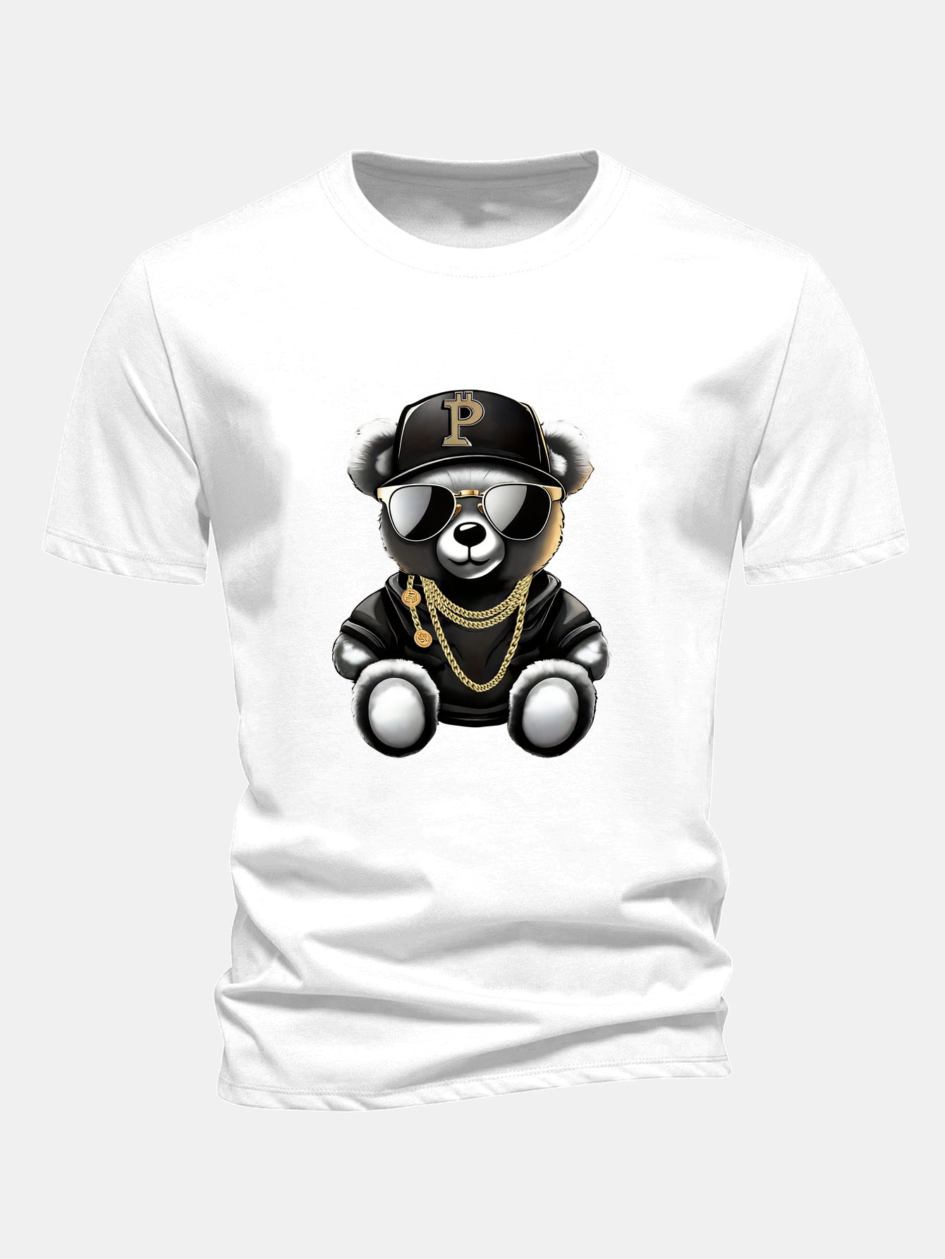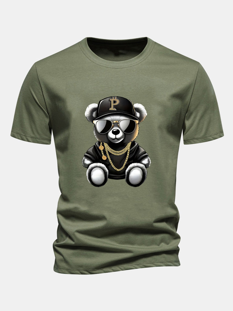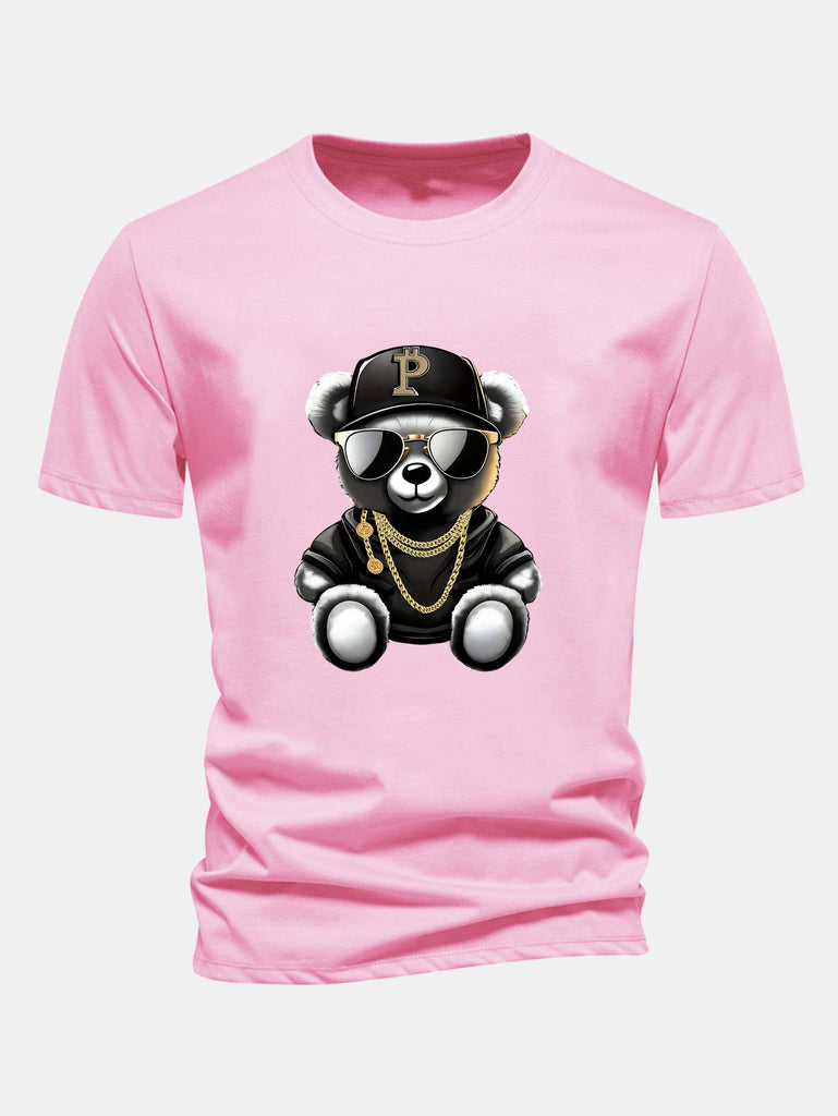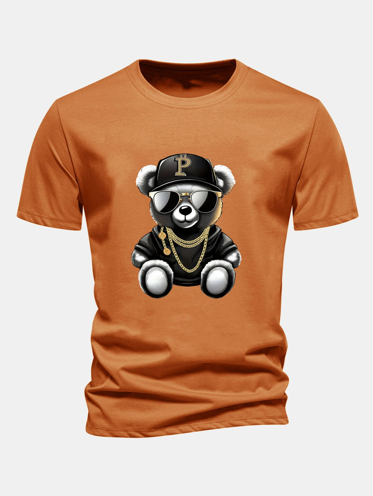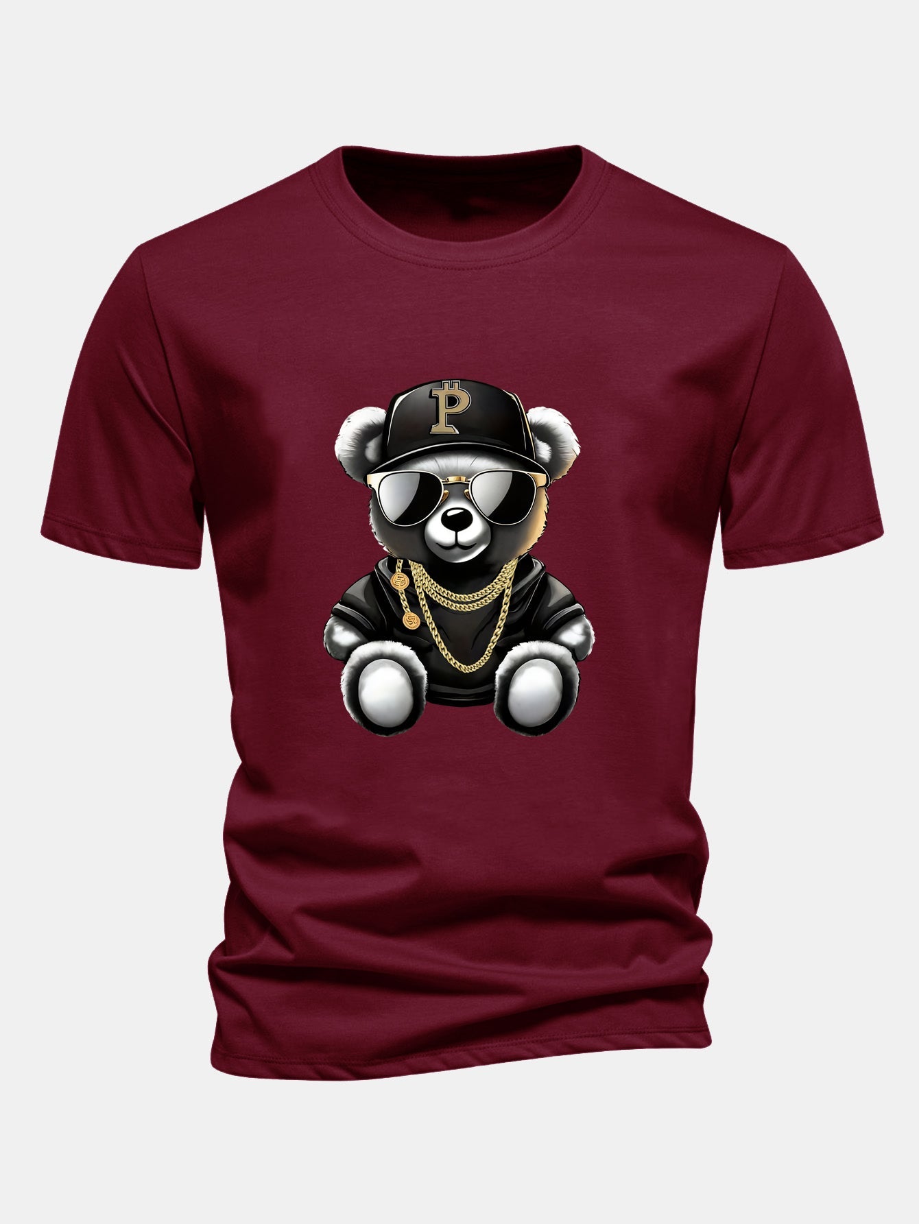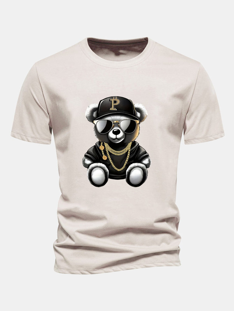 Regular Fit Hip Hop Bear Print Cotton T-Shirt