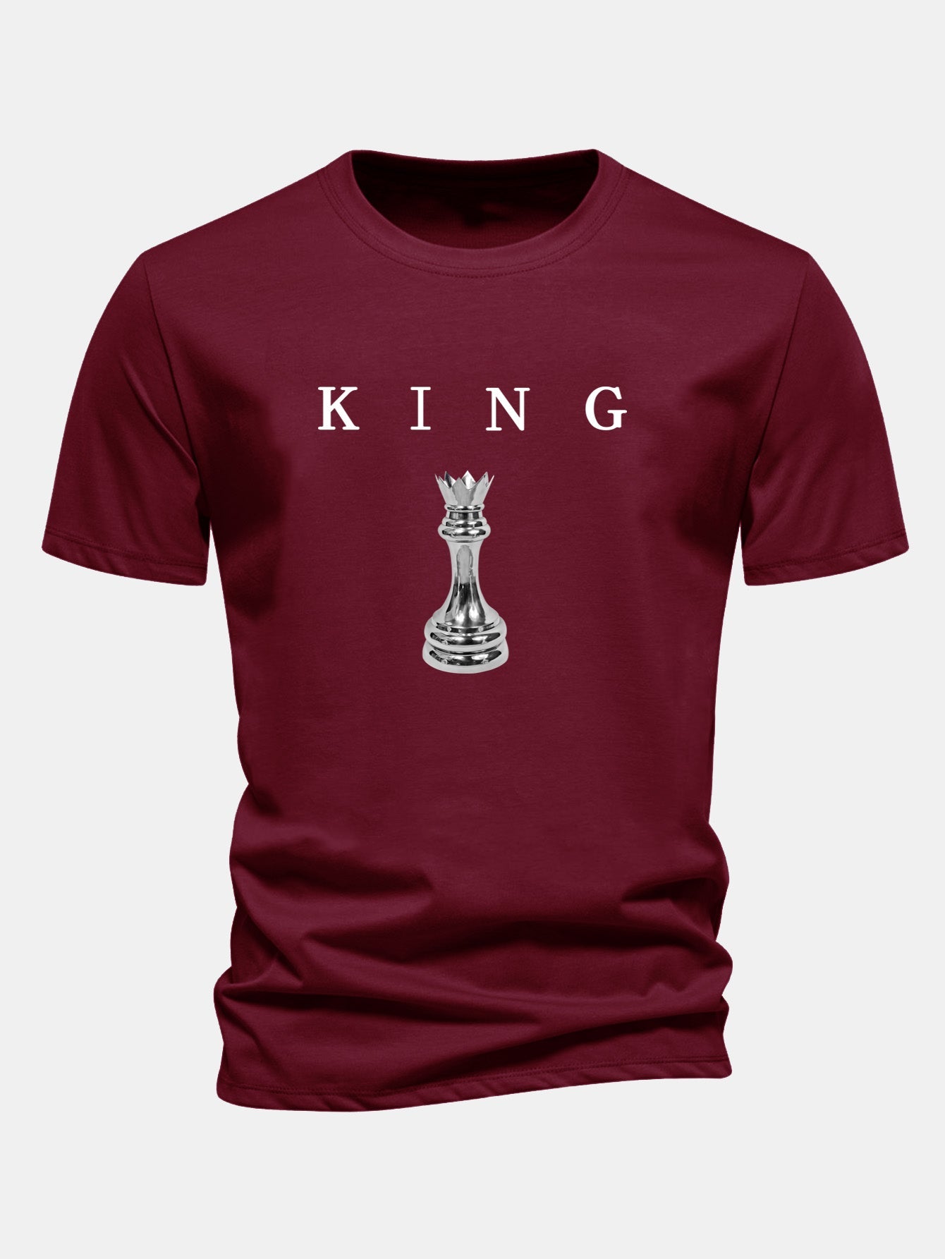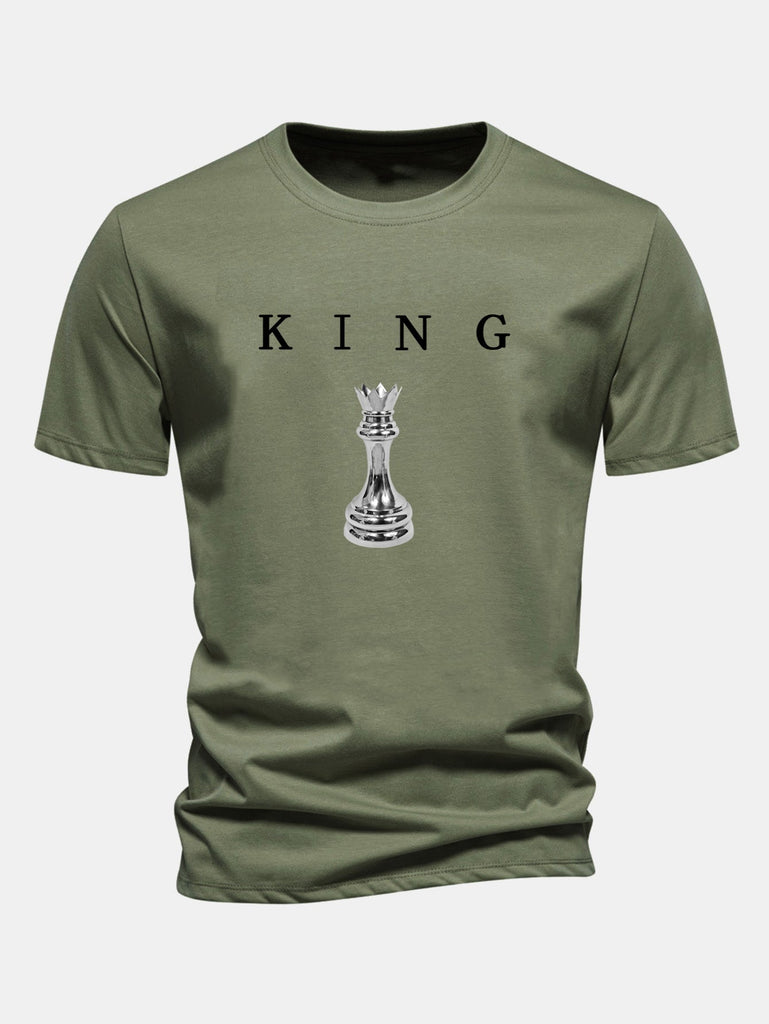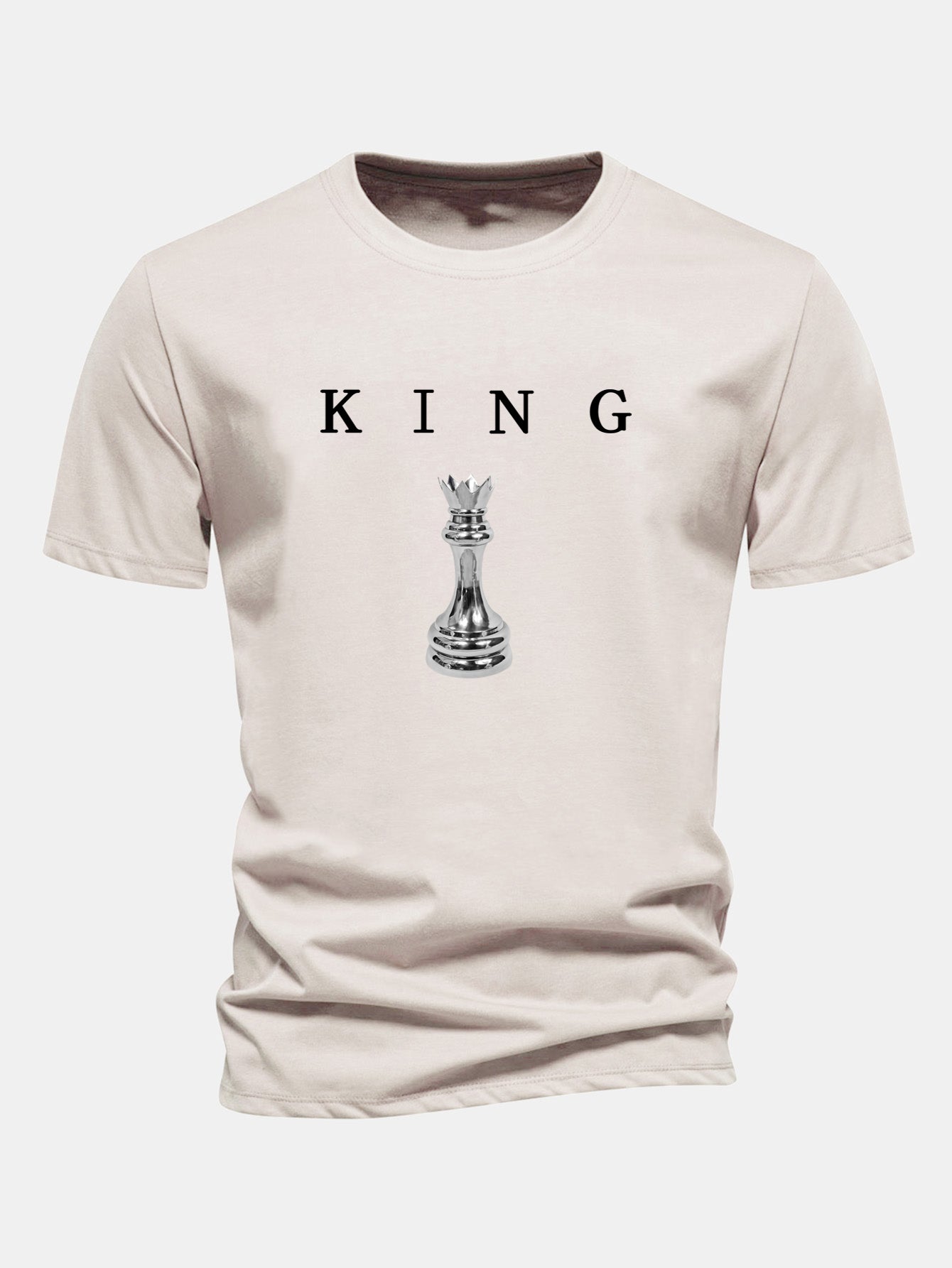 Featuring a bold king chess piece graphic, this tee brings smart, subtle power to your everyday look. Crafted from soft, breathable 100% cotton, it offers a comfortable regular fit that's easy to wear and even easier to style. Whether you're into strategy, symbolism, or just clean, impactful design ¡ª this tee plays to win.