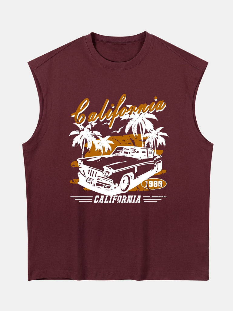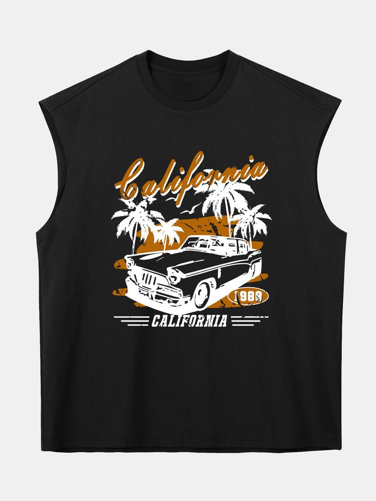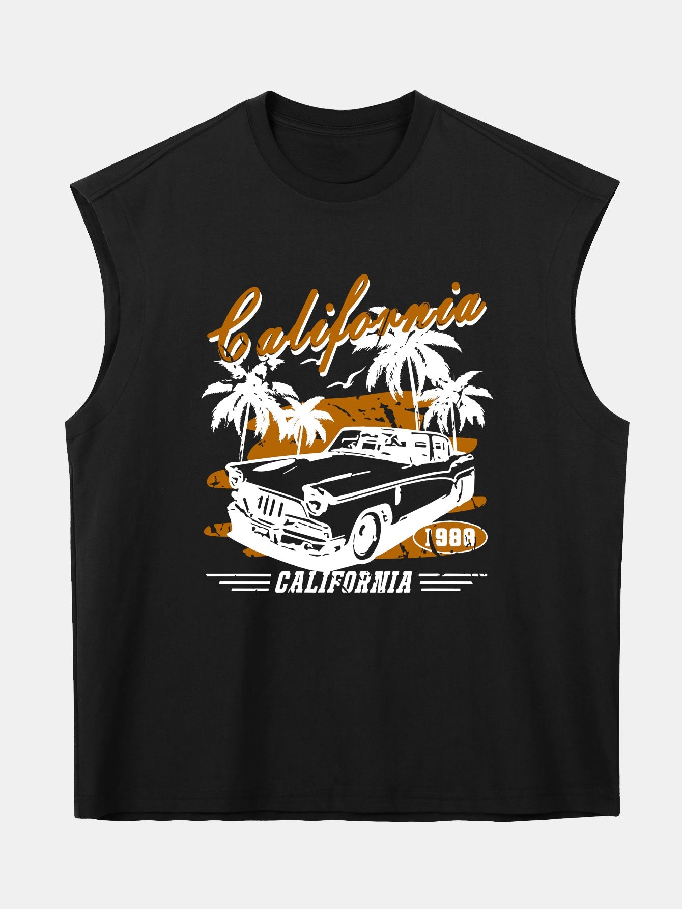 Relax Fit California Car Print Cotton Drop Shoulder Sleeveless T-Shirt