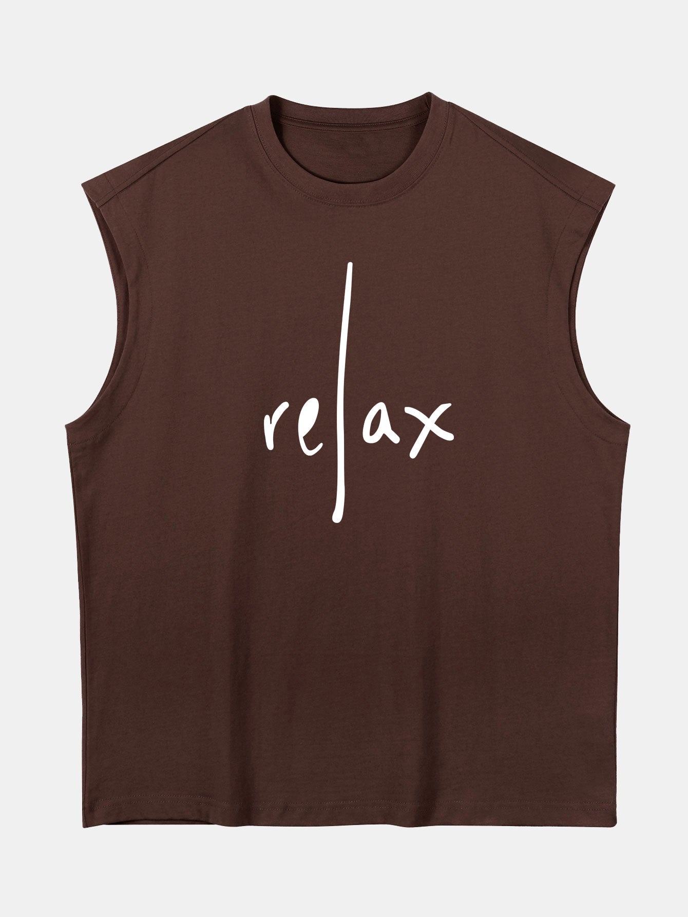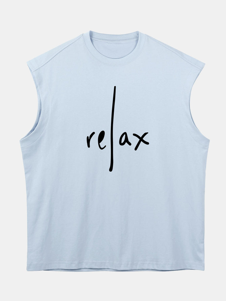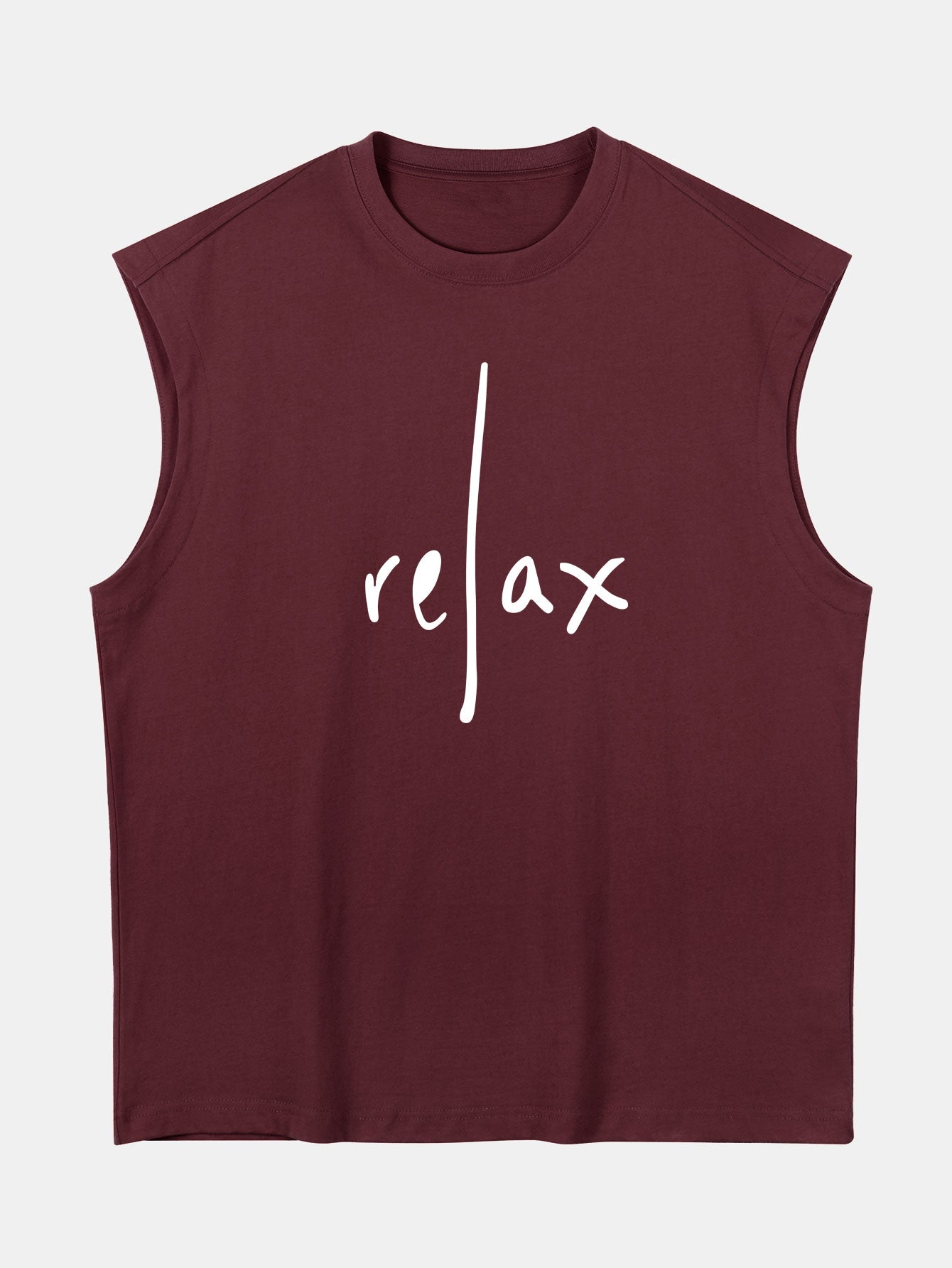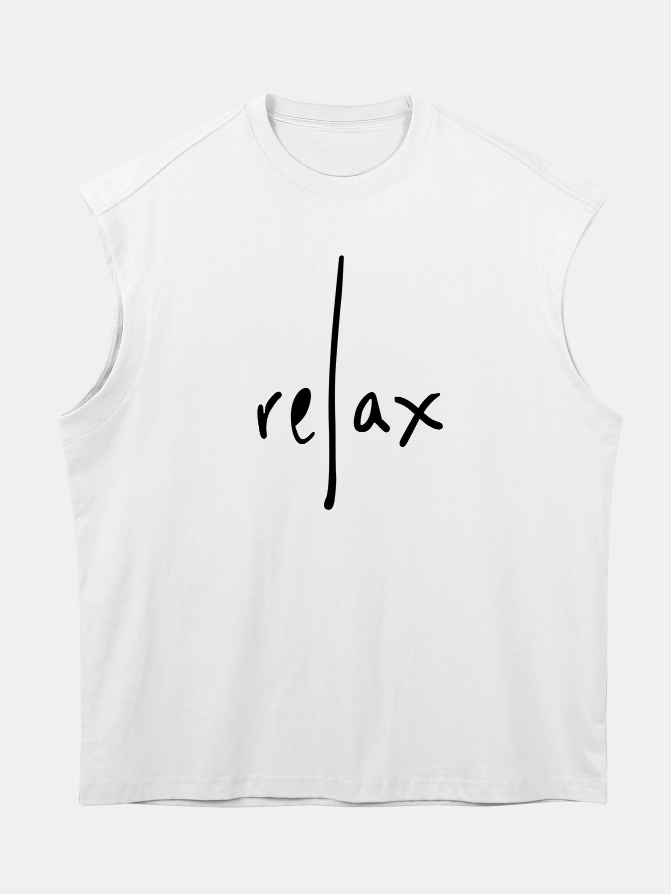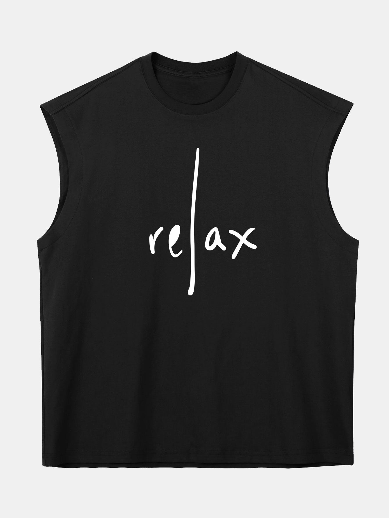 Laid-back style starts here. This relaxed-fit sleeveless T-shirt is crafted from soft, breathable cotton for all-day comfort. Featuring a minimalist ¡°Relax¡± slogan print, drop shoulders, and an oversized silhouette, it¡¯s perfect for effortless, off-duty looks with a chill attitude.