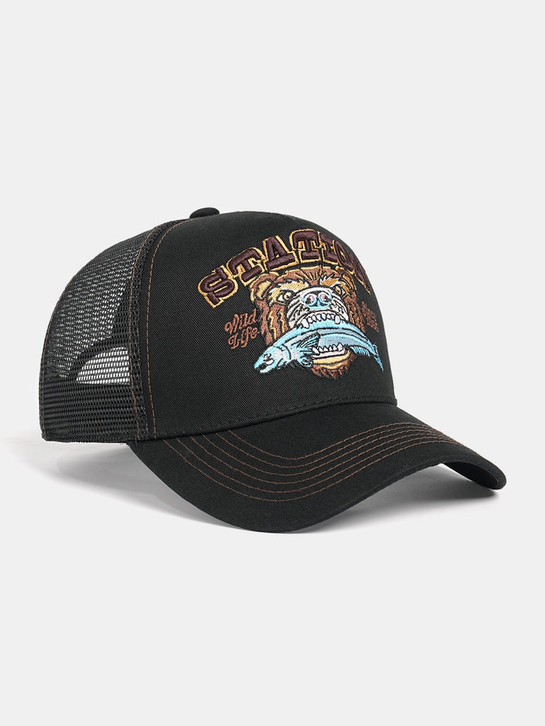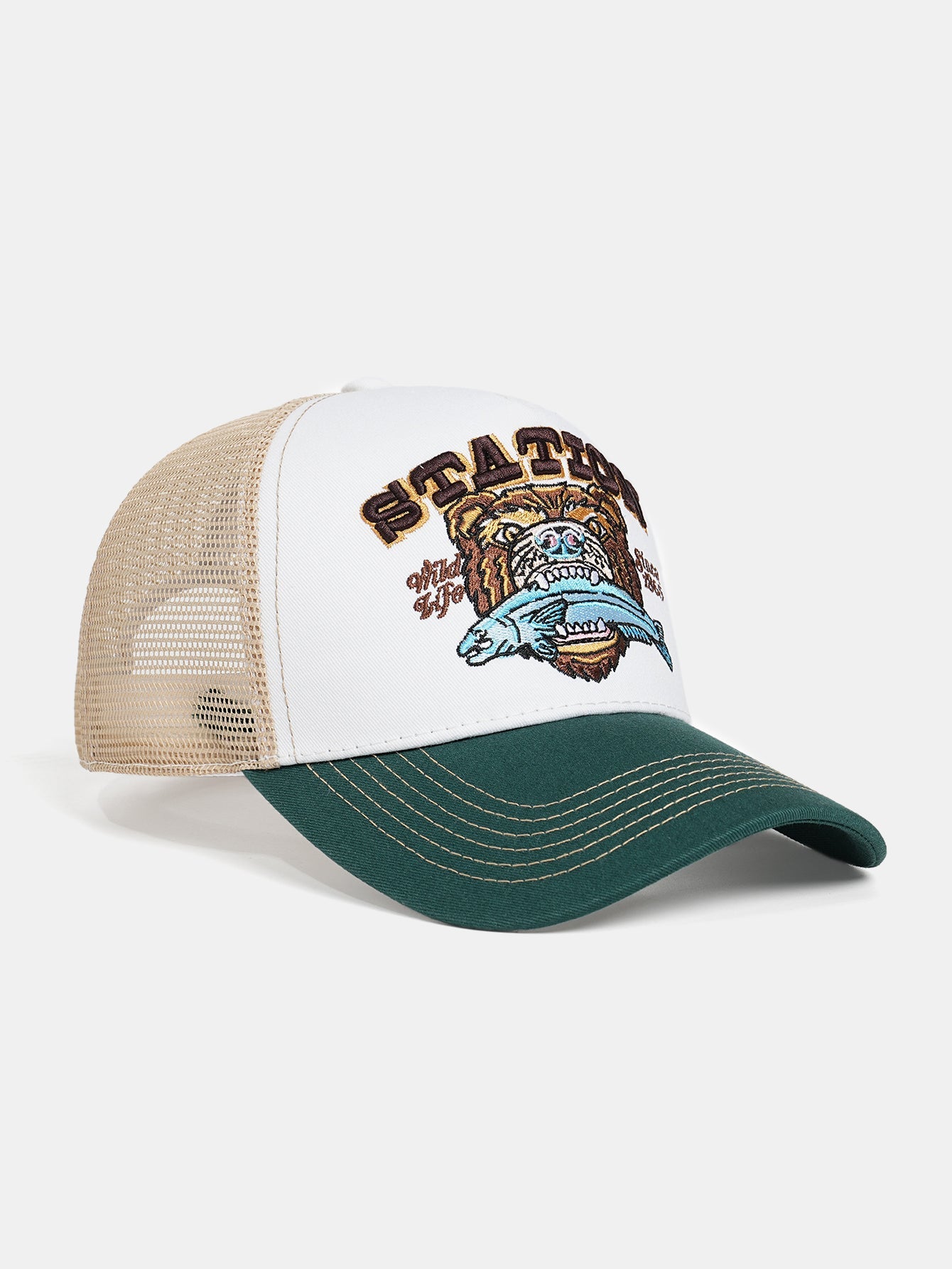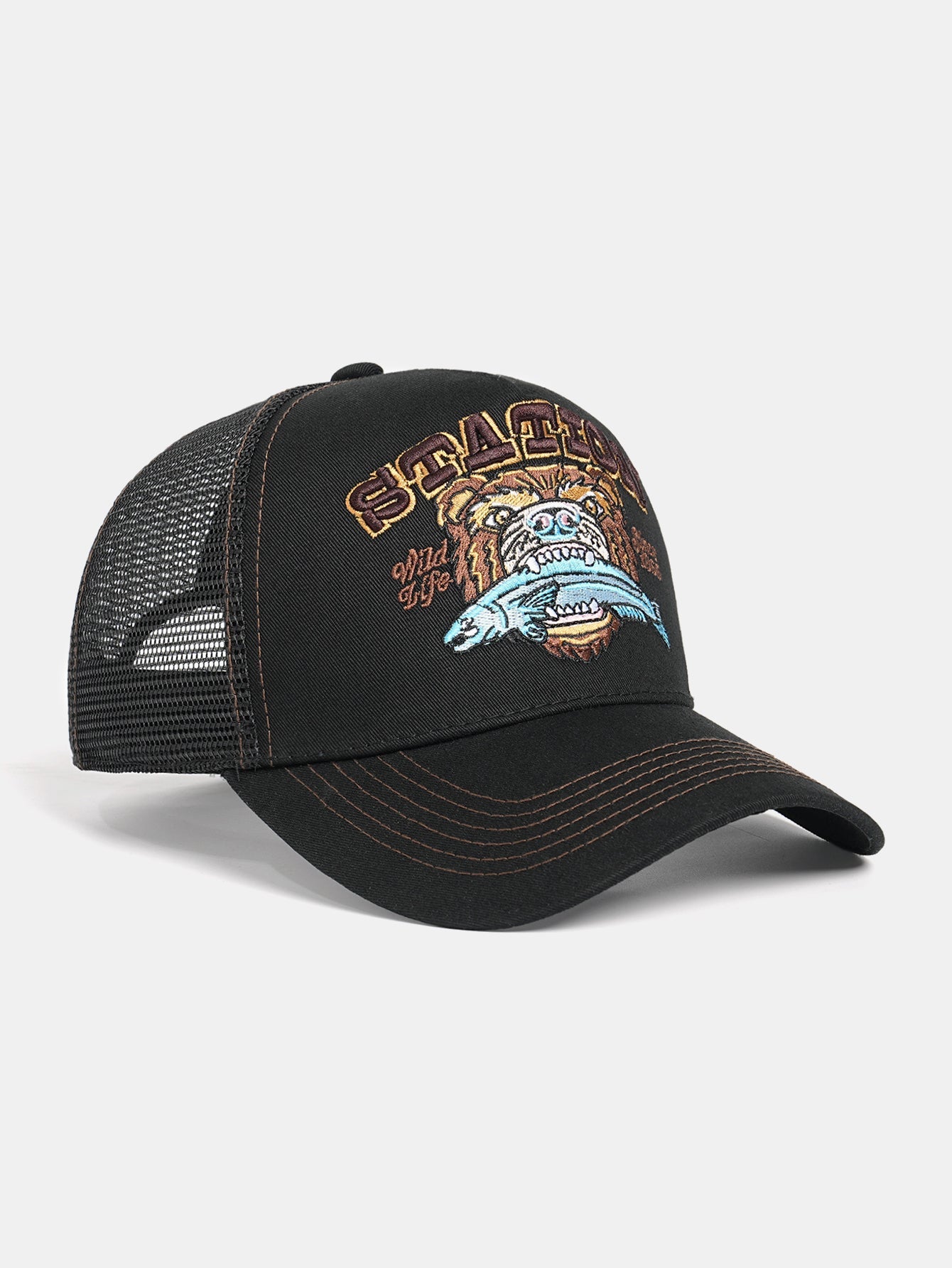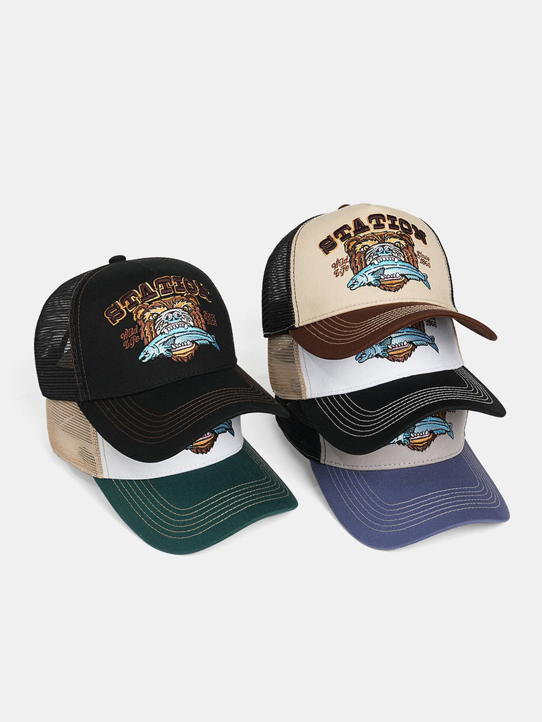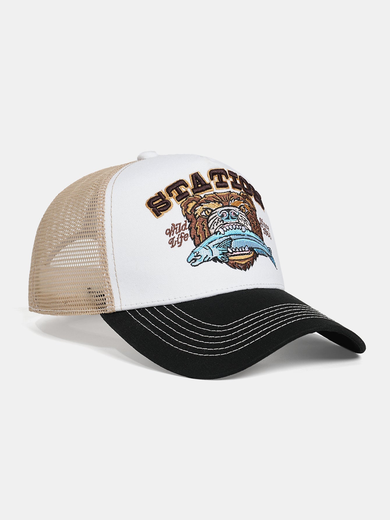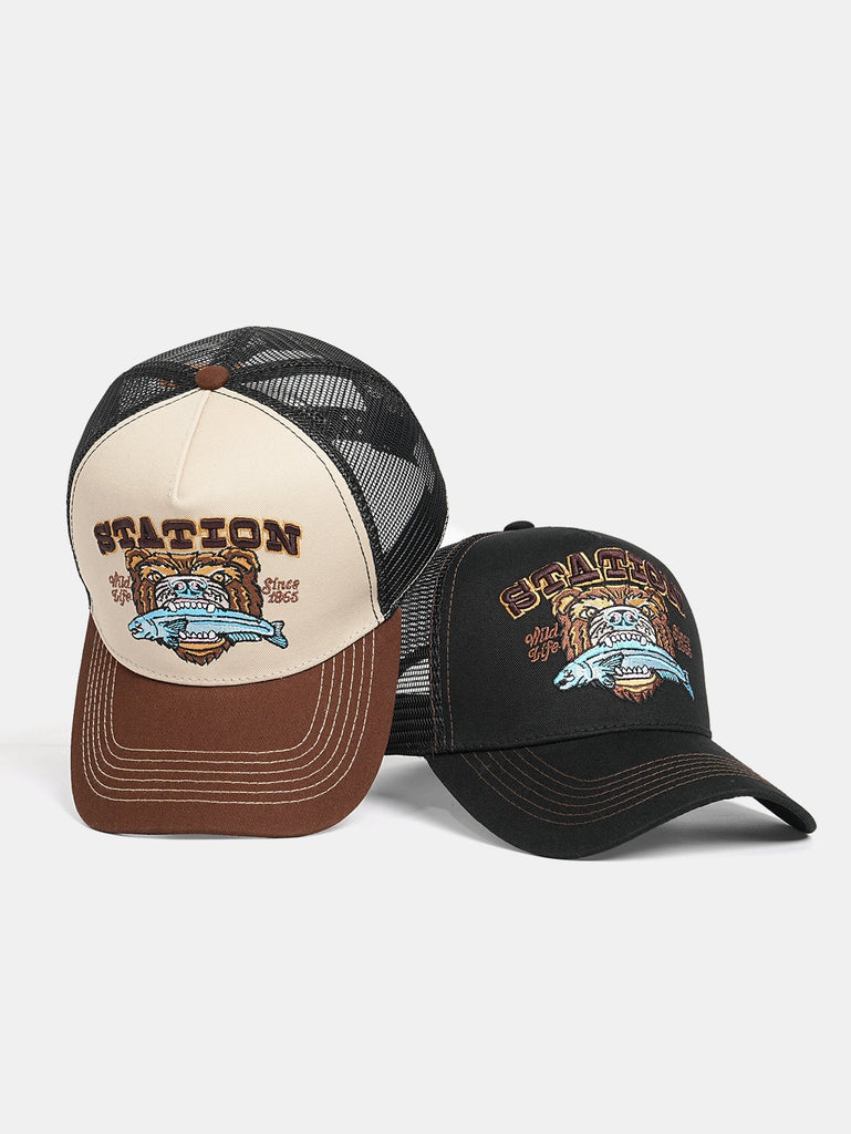 Bring a playful yet nostalgic touch to your outfit with our retro bear embroidered trucker baseball cap. Featuring a charming retro-style bear embroidery, this cap blends classic trucker design with fun vintage detail.