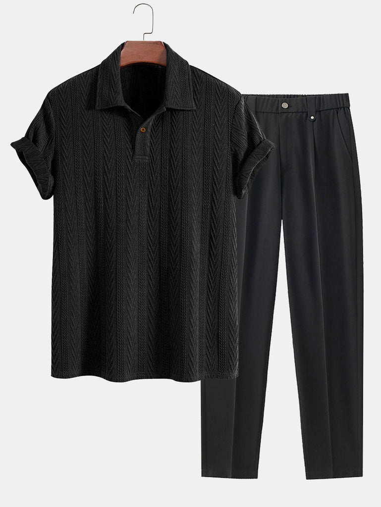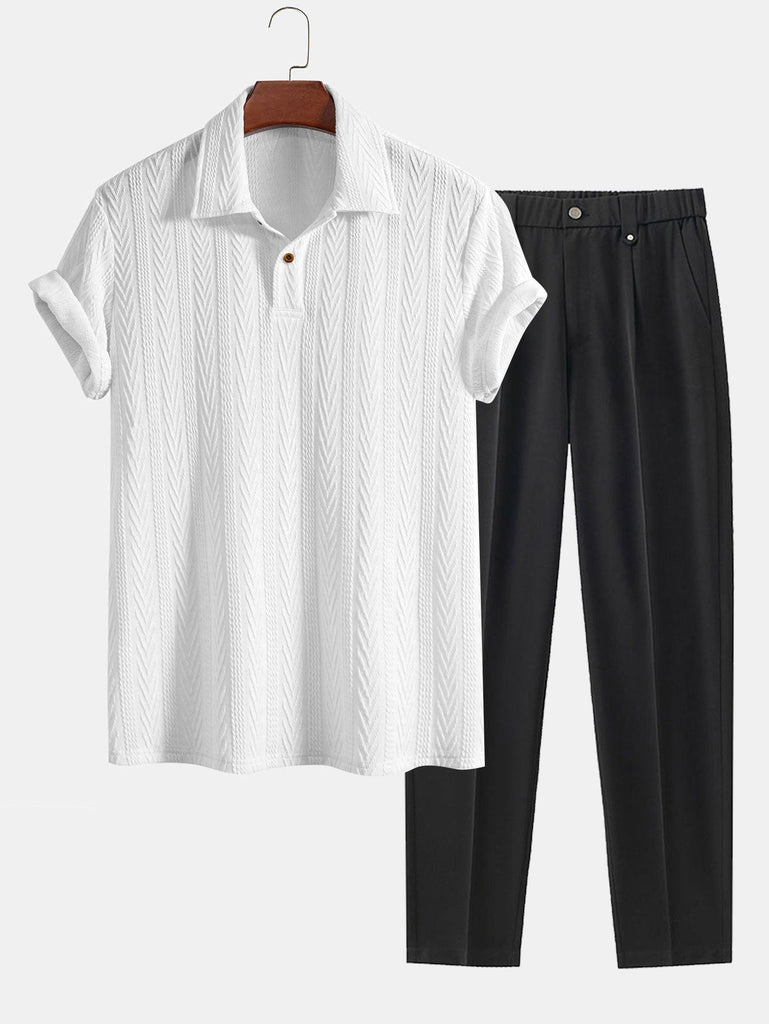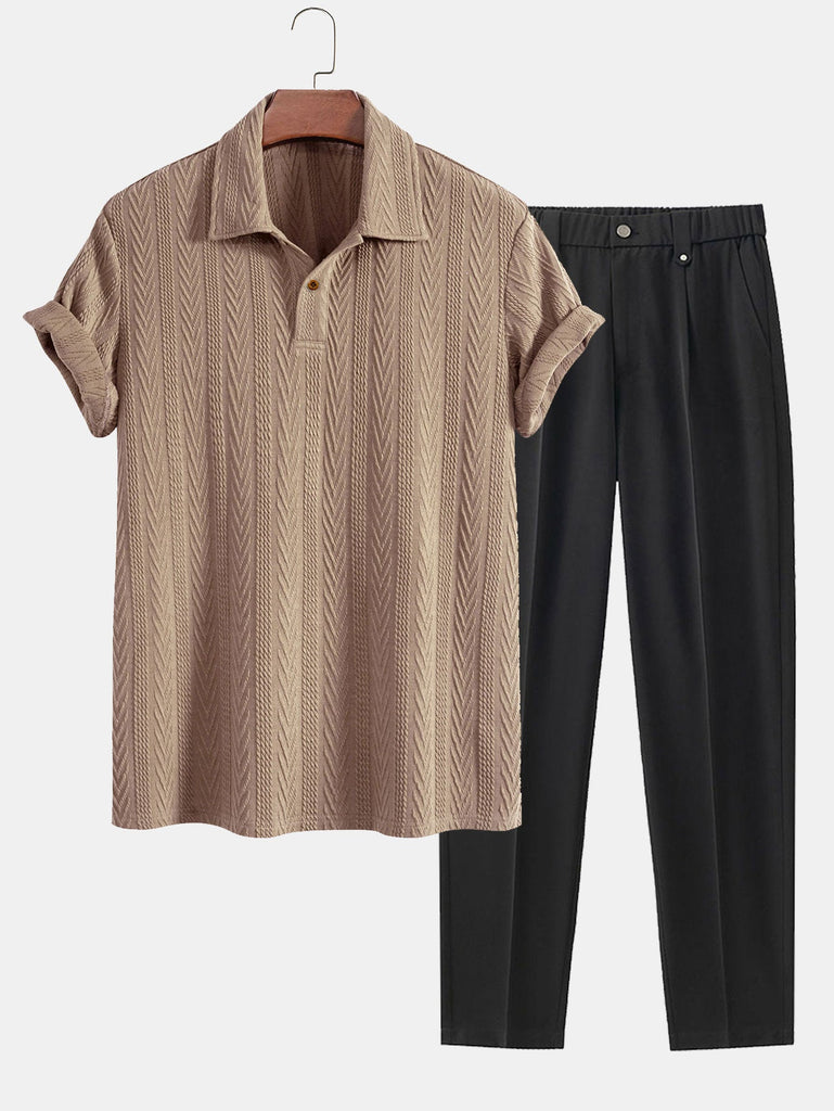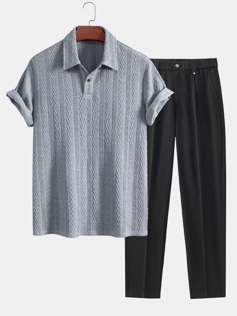 Short Sleeve Jacquard Polo & Slim Fit Cropped Tapered Pants