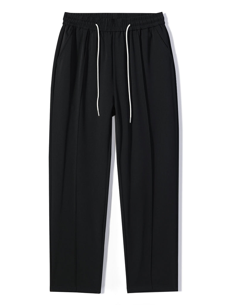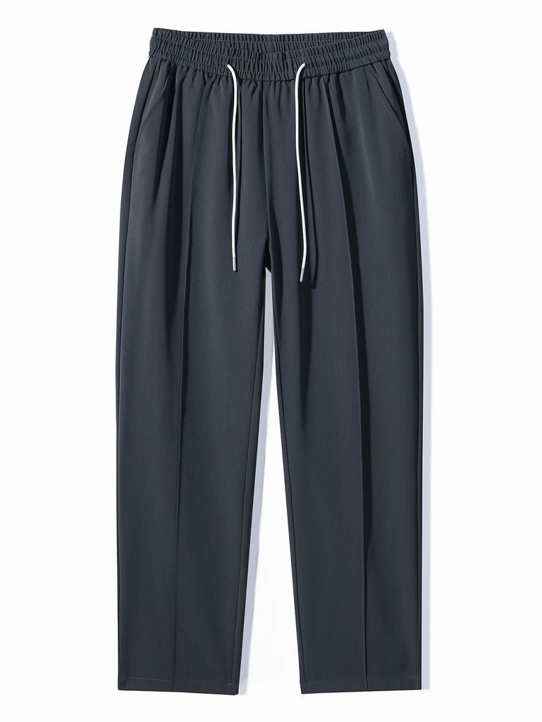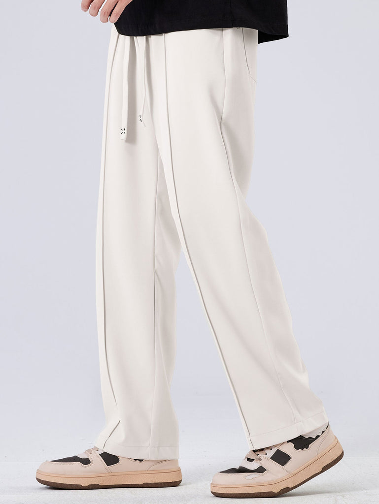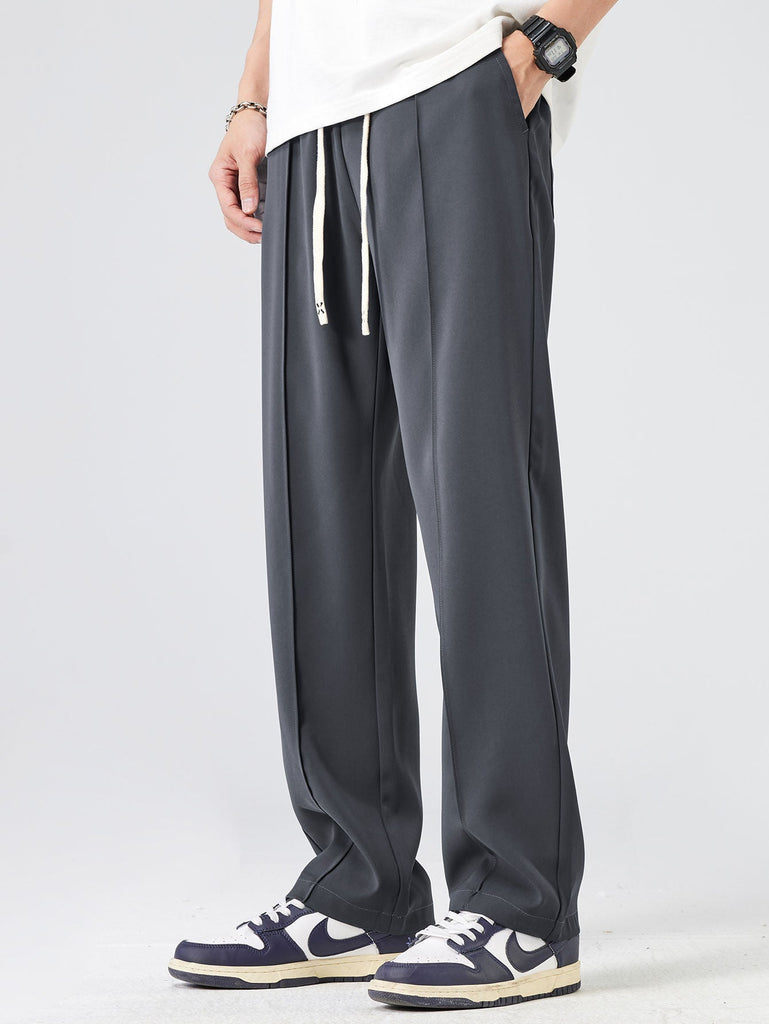 Single Pleat Drawstring Straight Leg Pants