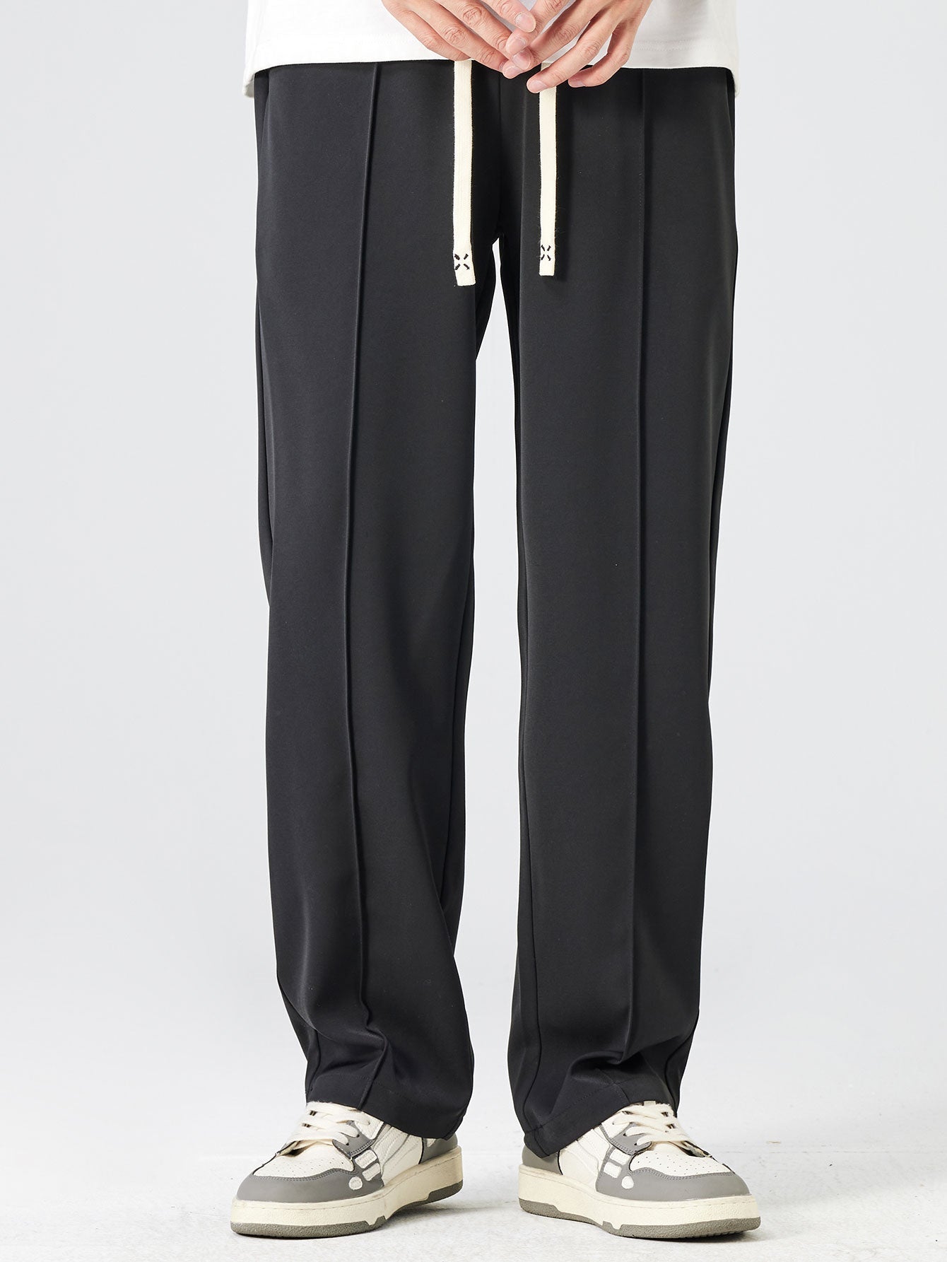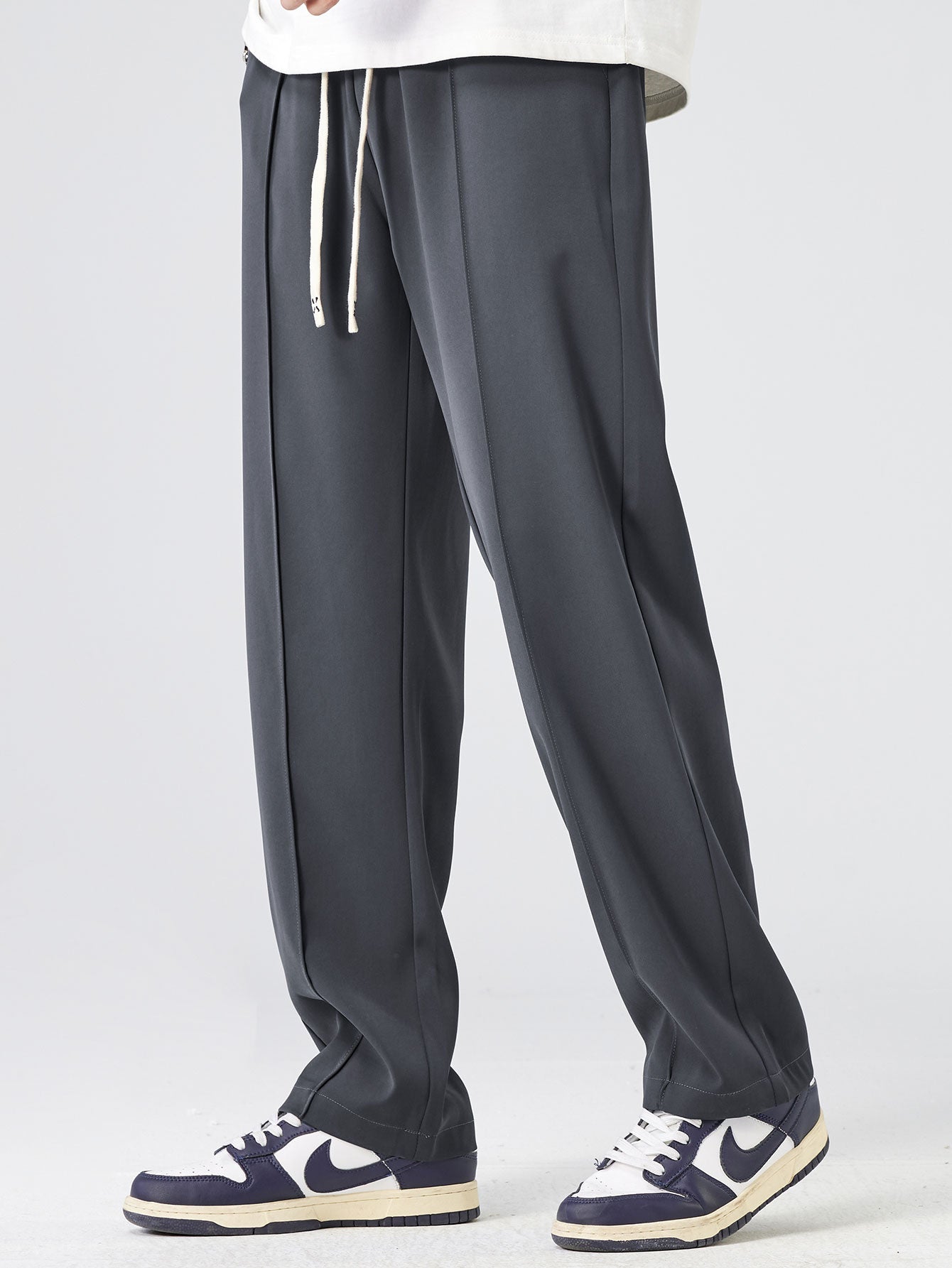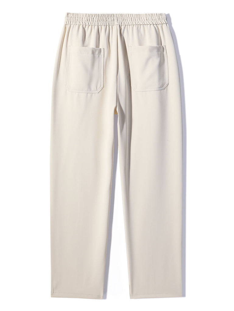 Single Pleat Drawstring Straight Leg Pants
