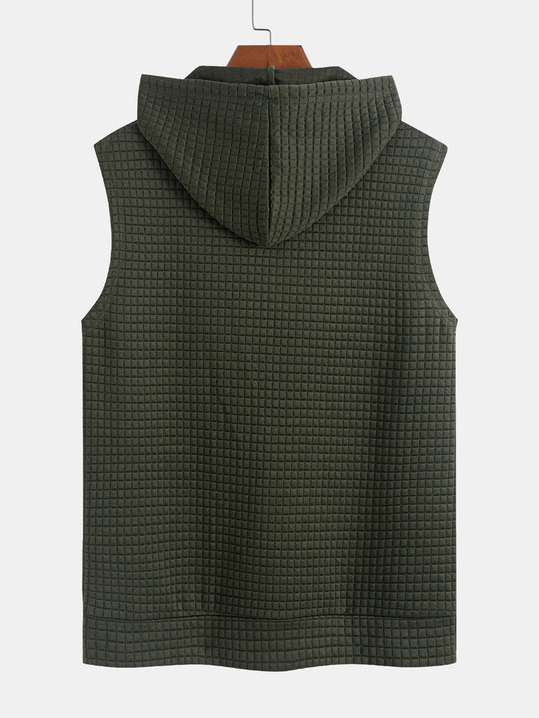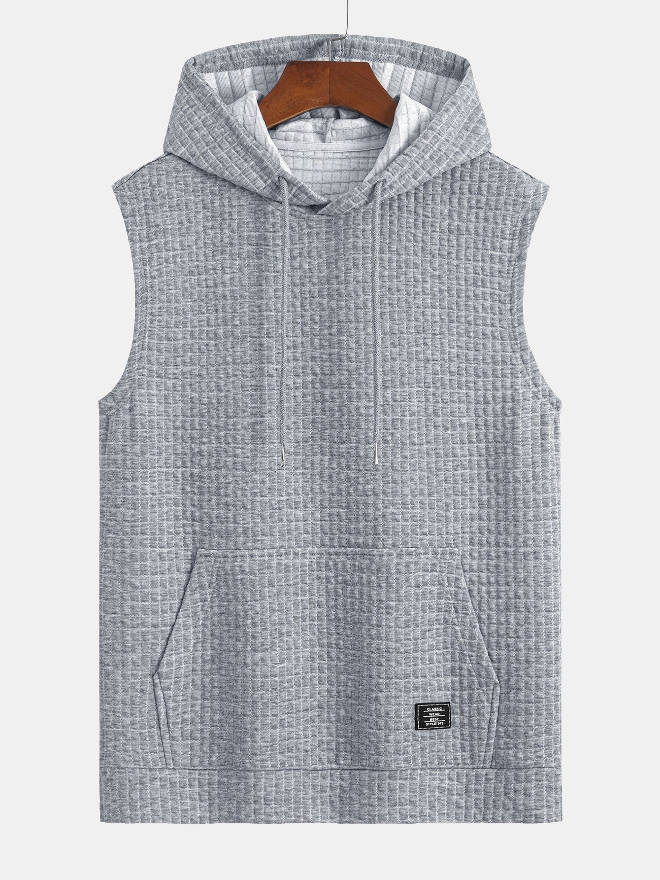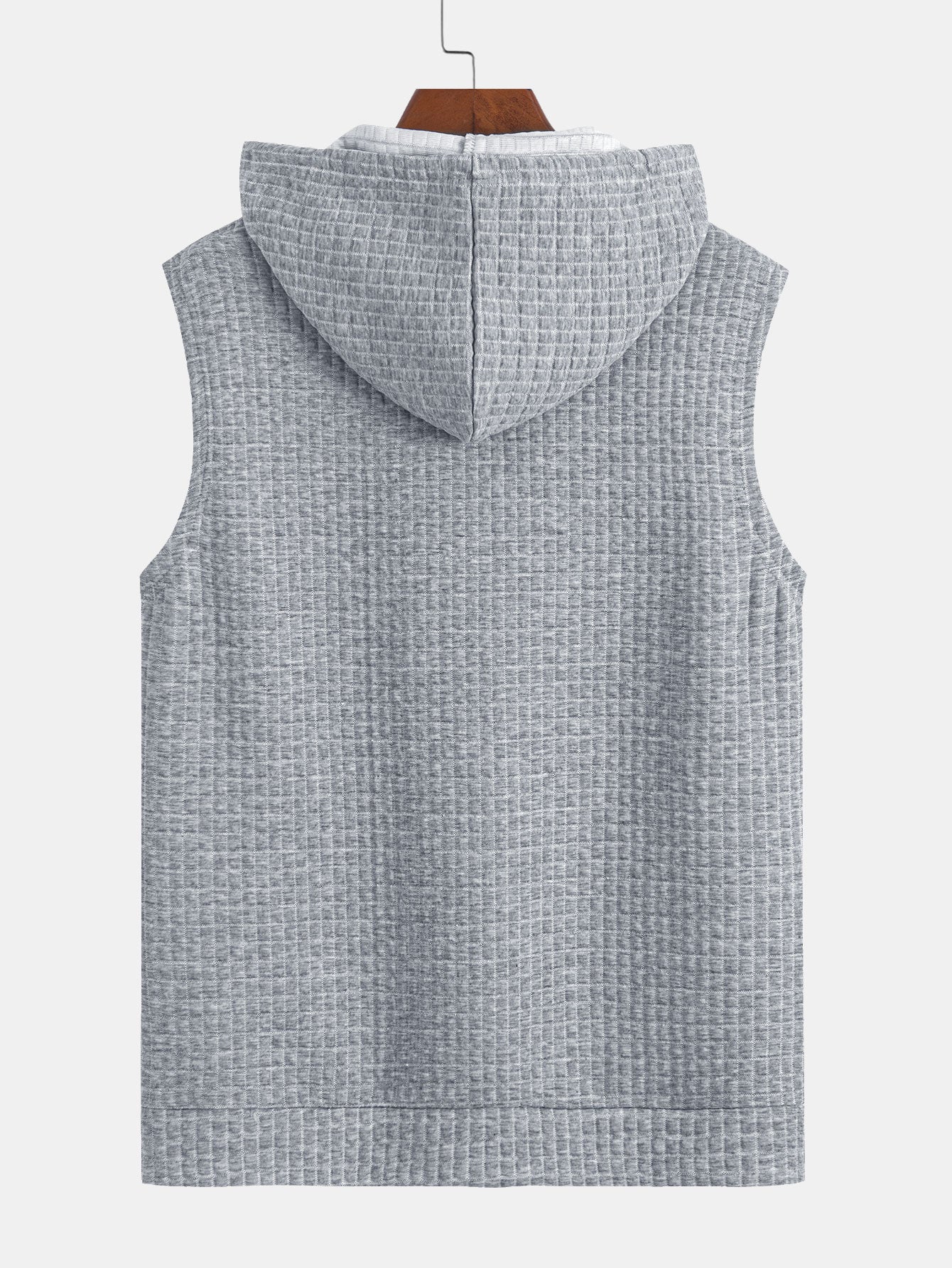 Sleeveless Waffle Hoodie With Kangaroo Pocket