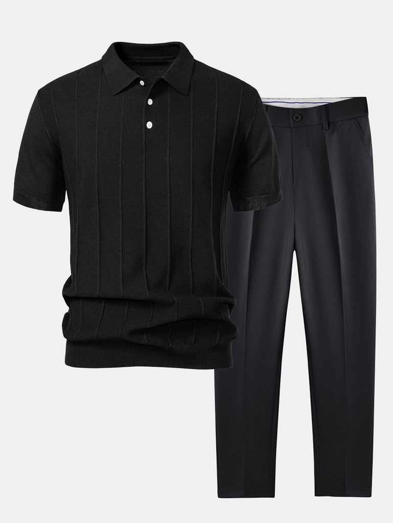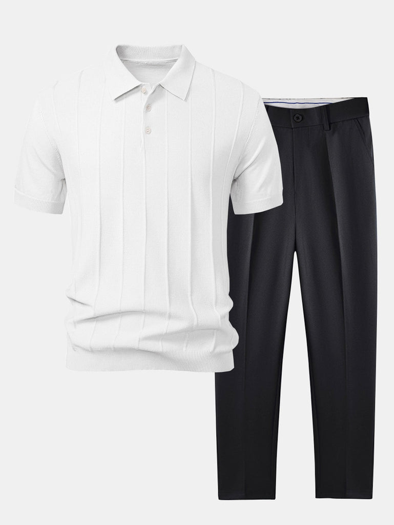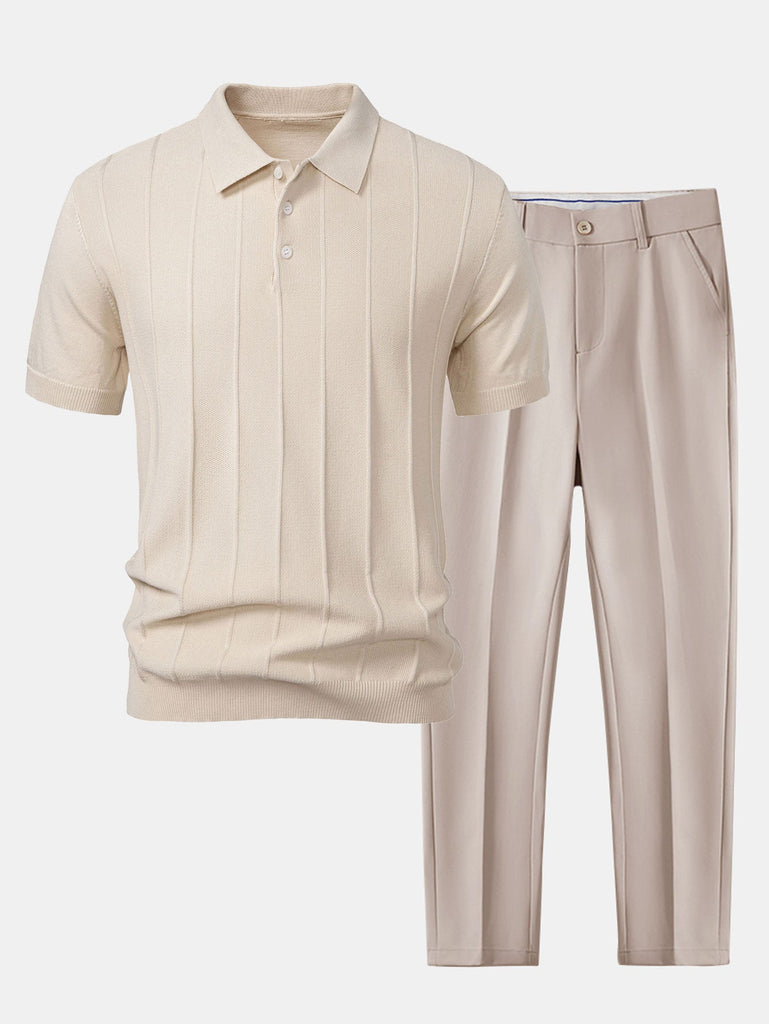 Stripe Jacquard Knit Polo Shirt & Slim Fit Tapered Trousers