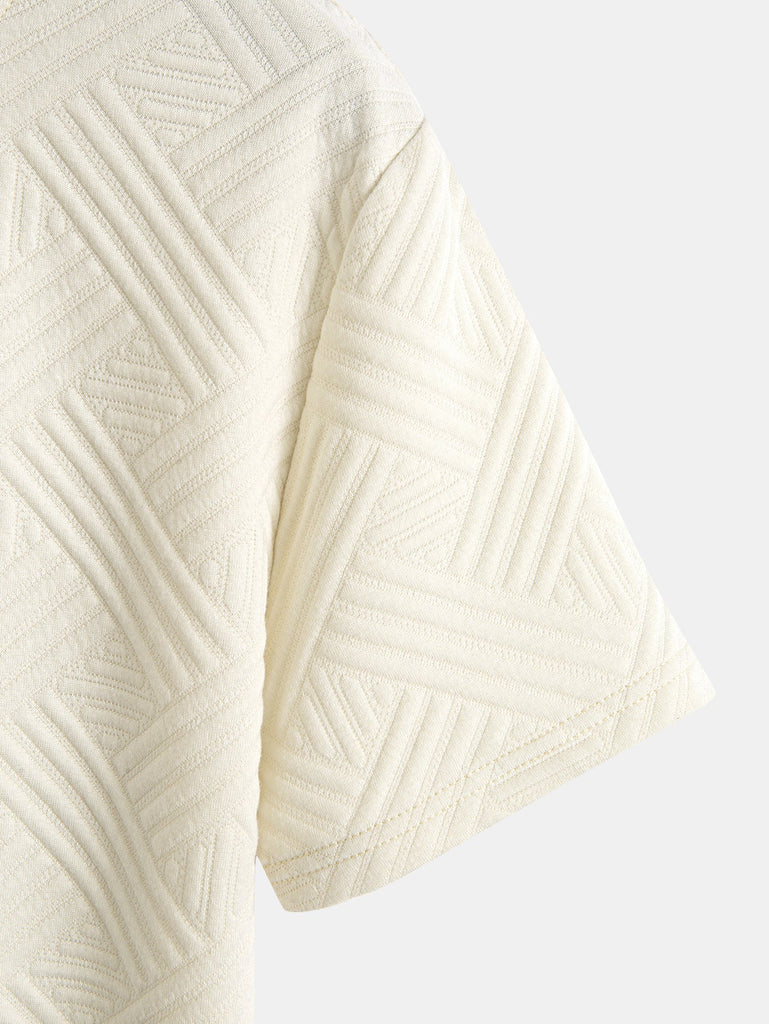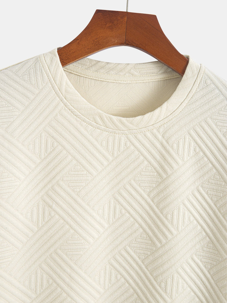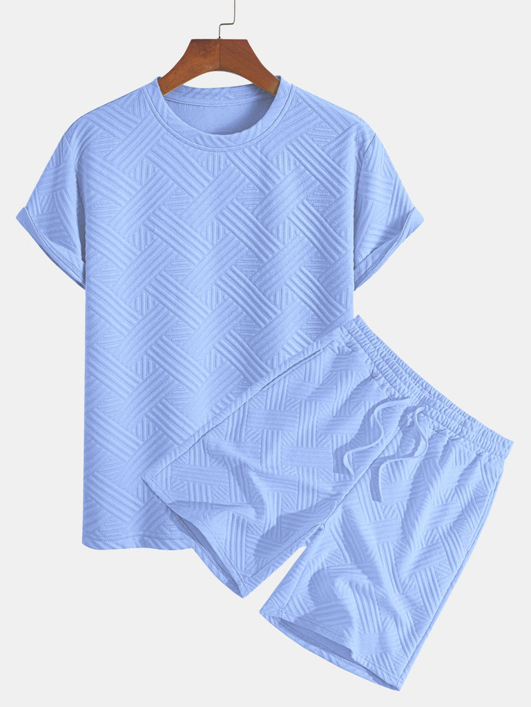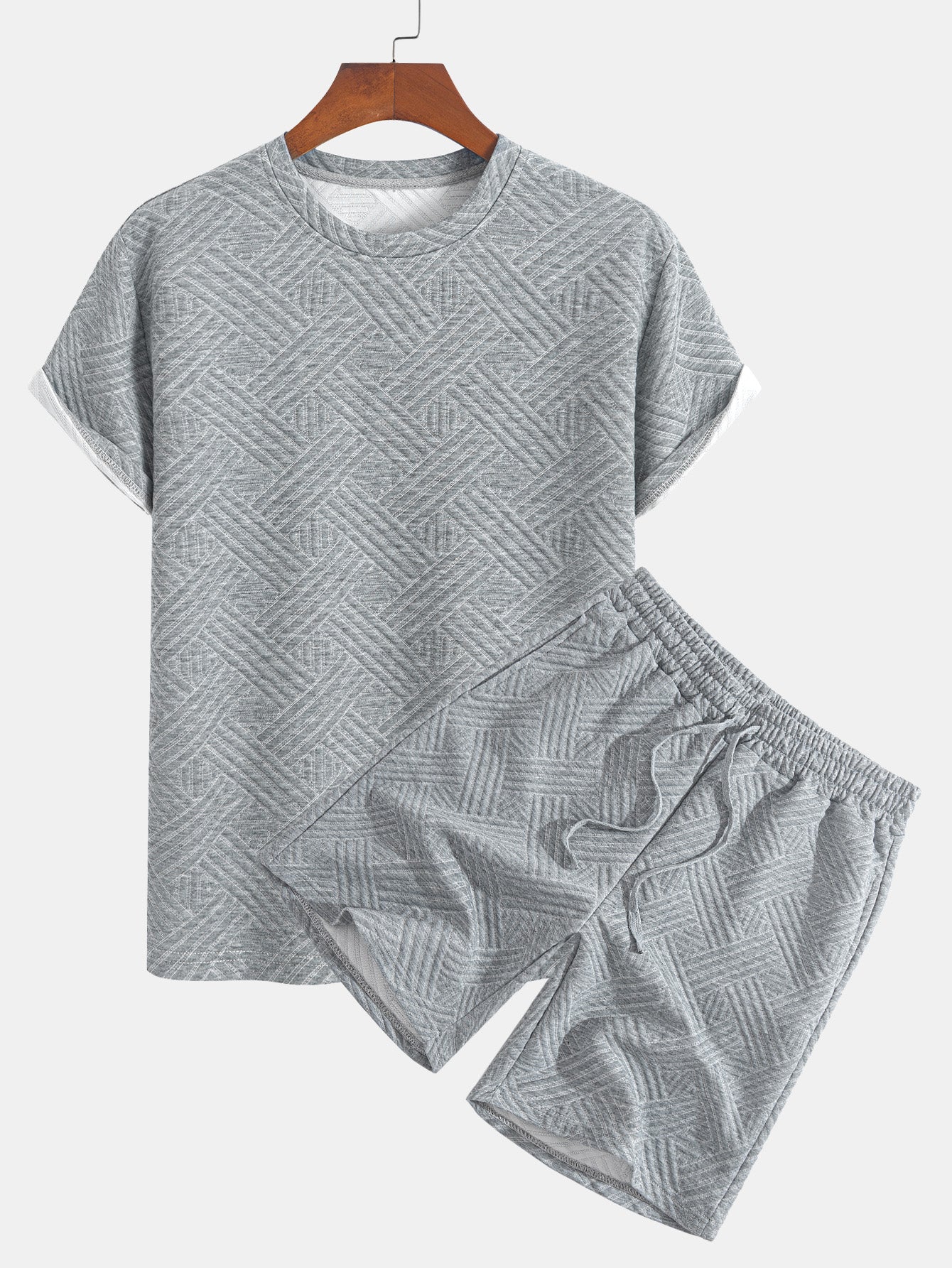 Elevate your casual wardrobe with this stylish striped jacquard set. Designed with textured vertical stripes woven into the fabric, the set includes a comfortable short-sleeve T-shirt and matching drawstring shorts. Soft, breathable, and fashion-forward, it¡¯s ideal for relaxed weekends, summer days, or effortless everyday wear.