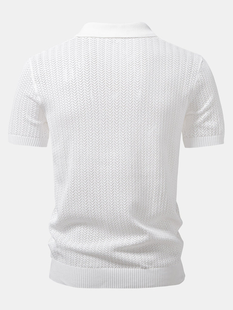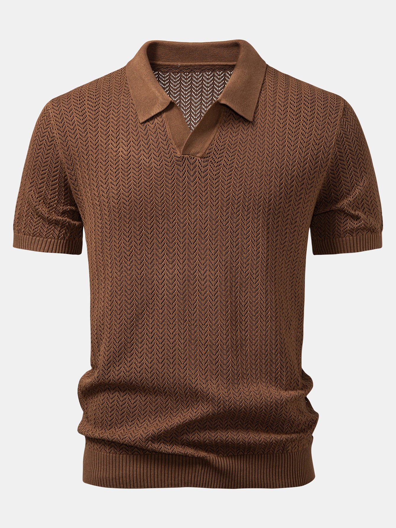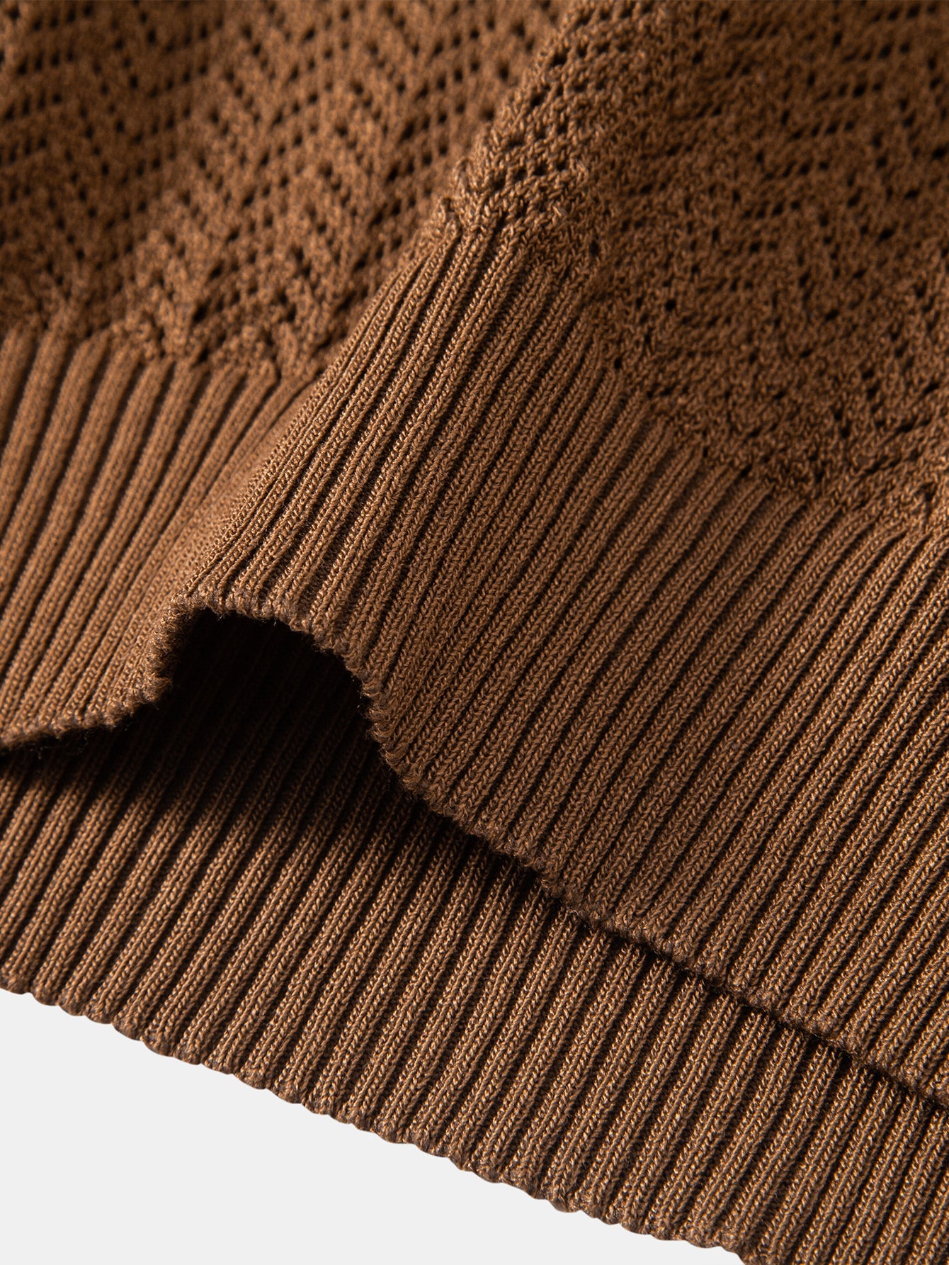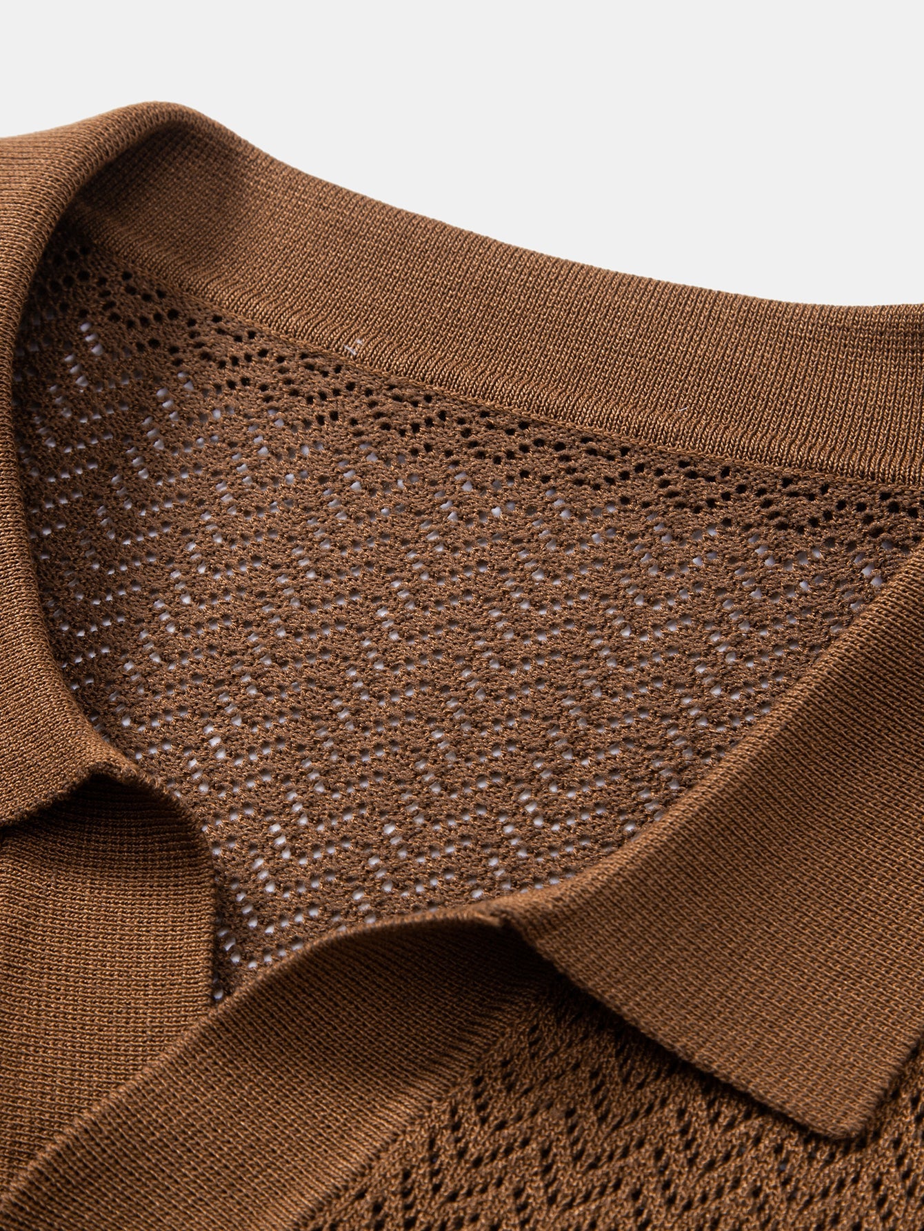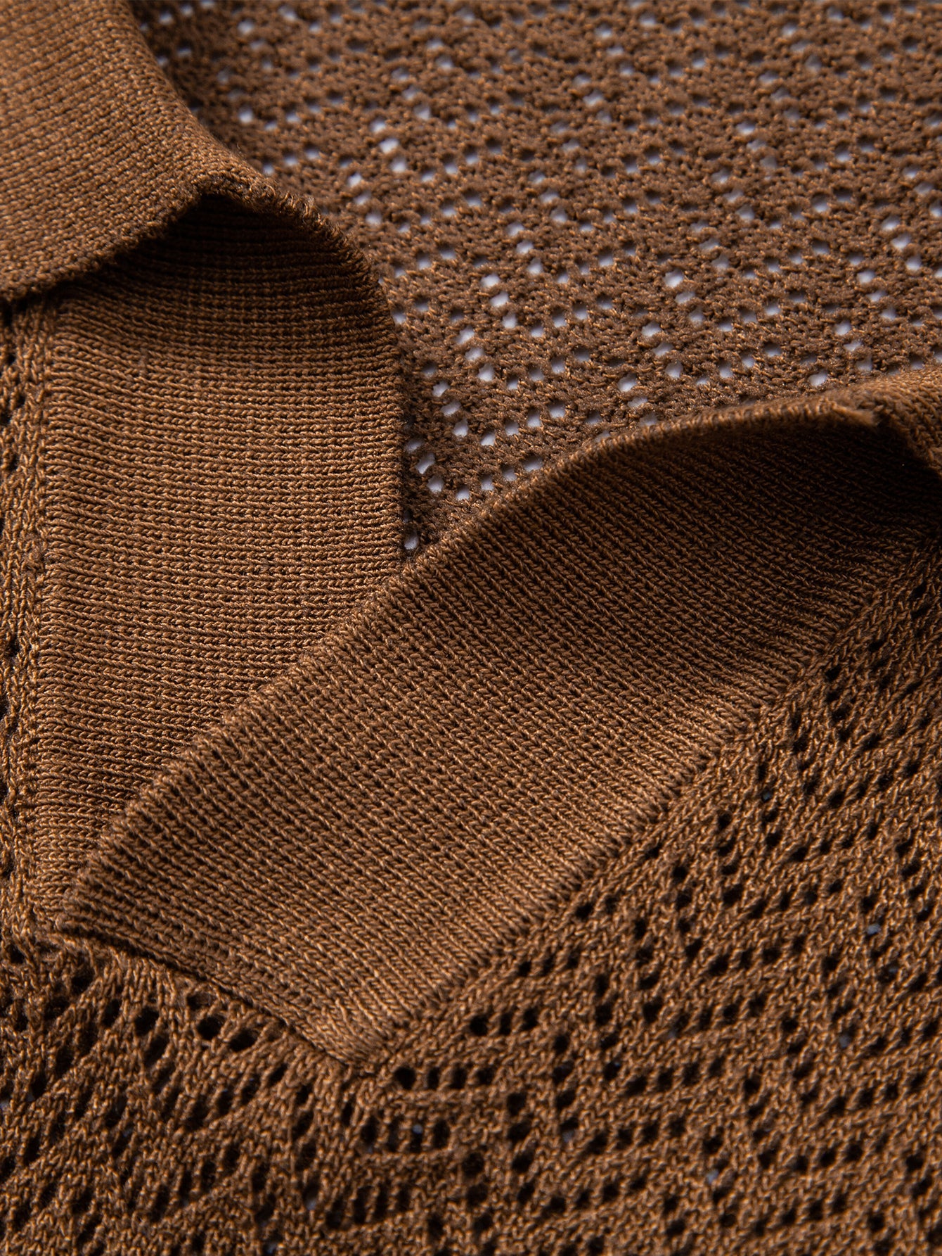 Inspired by retro patterns and modern tailoring, this shirt features a bold jacquard weave that creates a striking geometric texture. The soft V-neckline offers a relaxed yet polished feel, making it suitable for both off-duty days and smart-casual events.