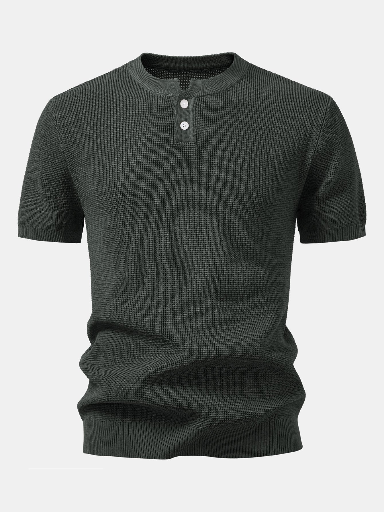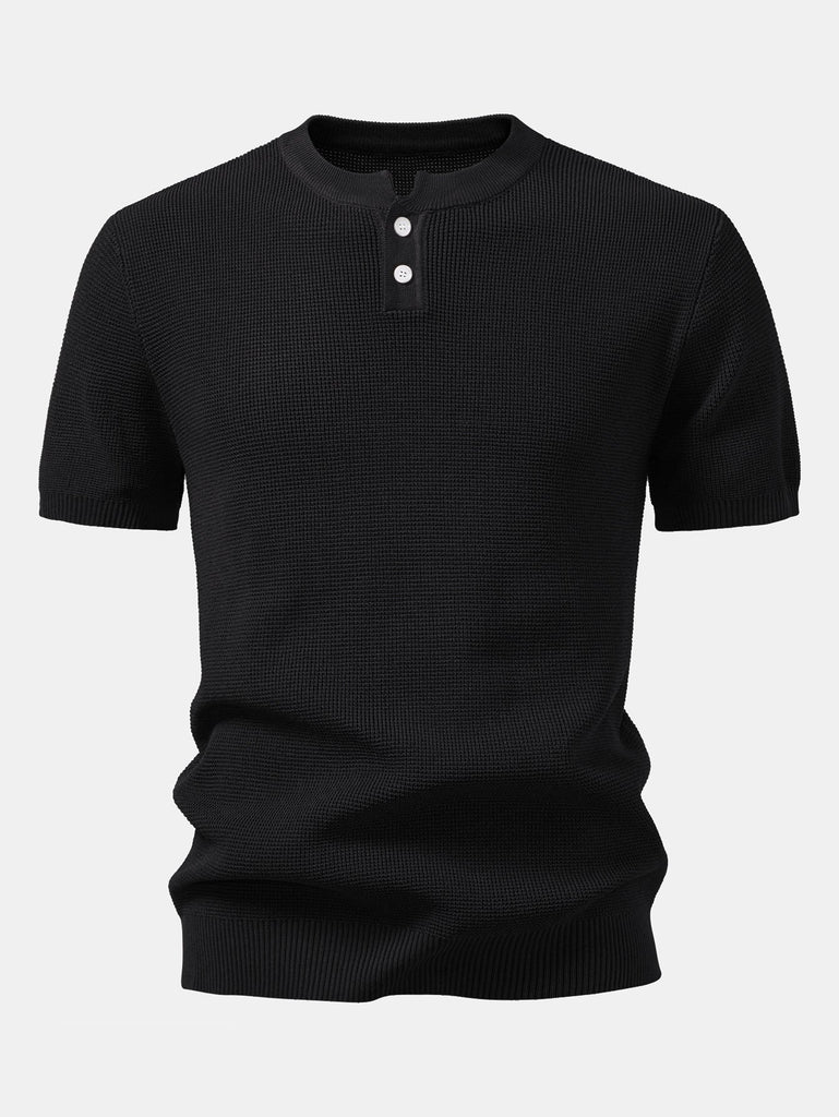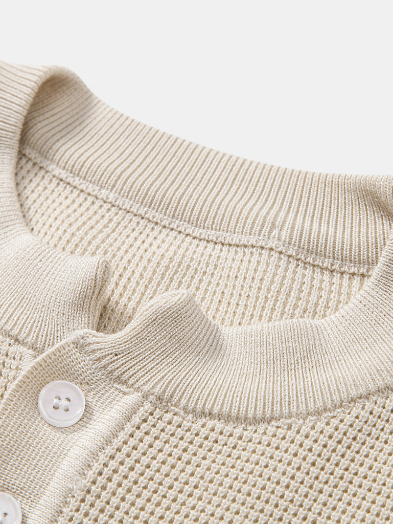 Waffle Textured Knitted Henley Shirt