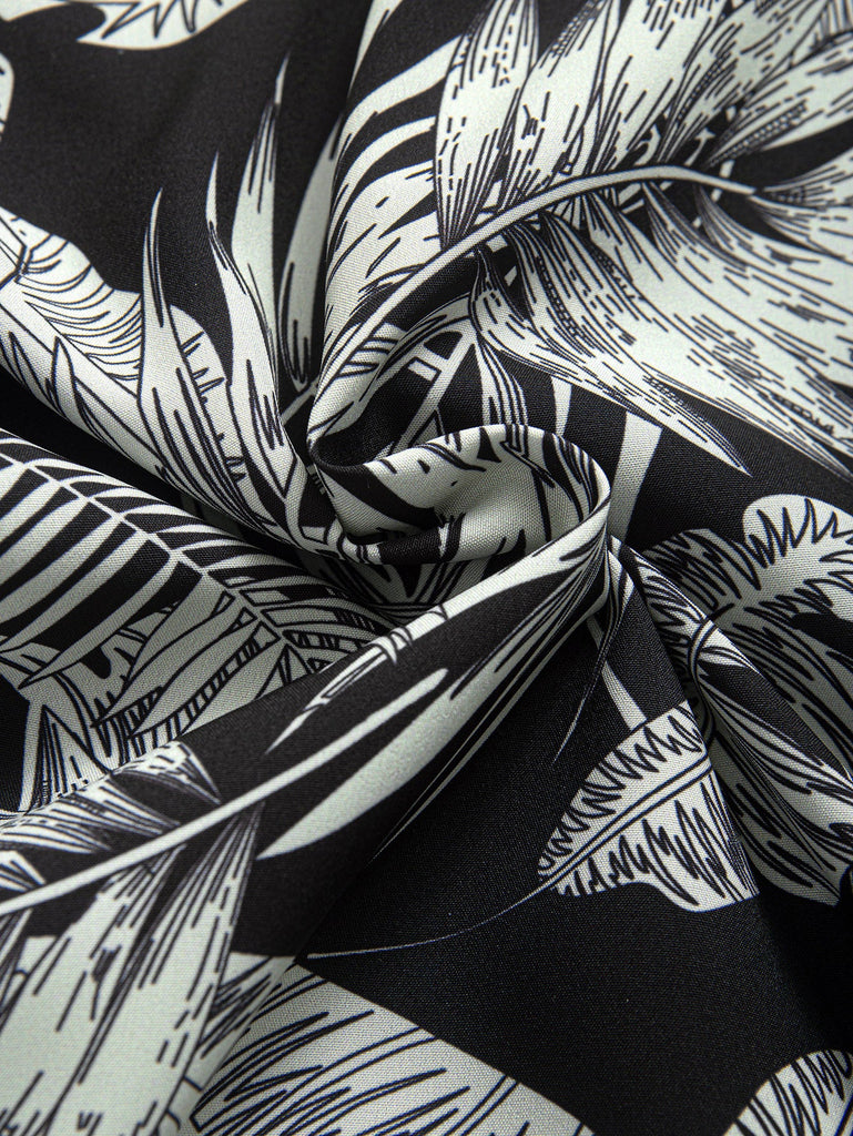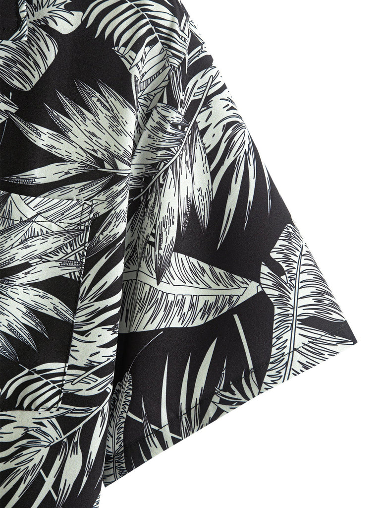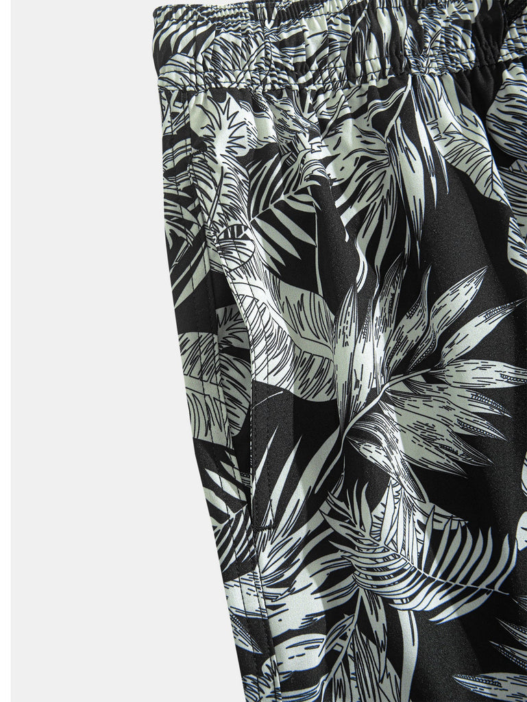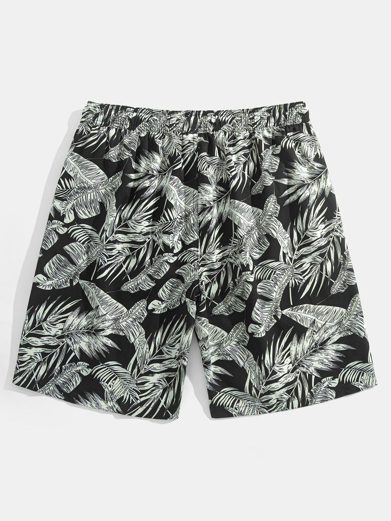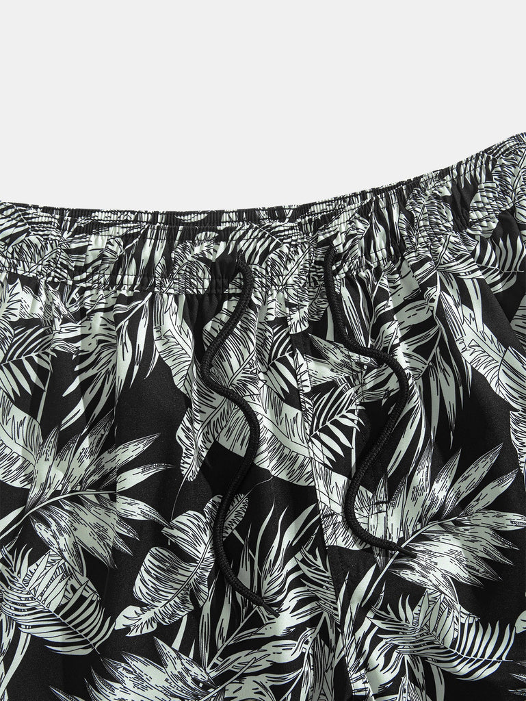 Tropical Plants Print Button Up Shirt & Drawstring Swim Shorts