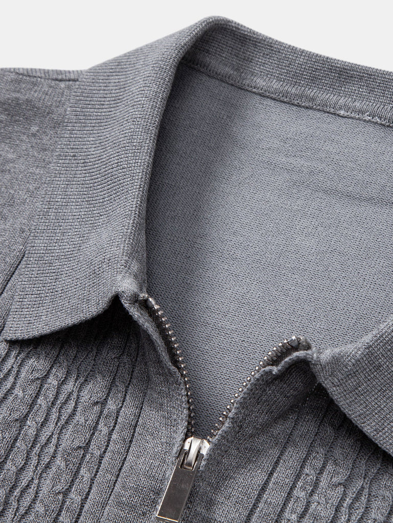 Twist Jacquard Knitted Zipper Polo Shirt